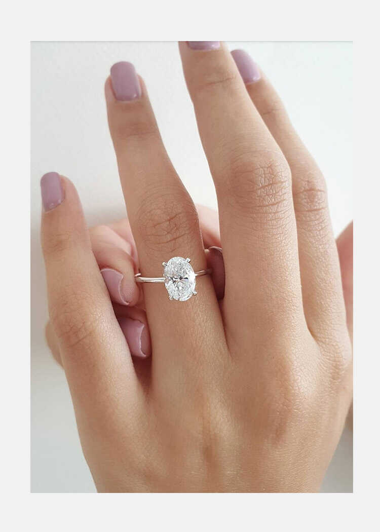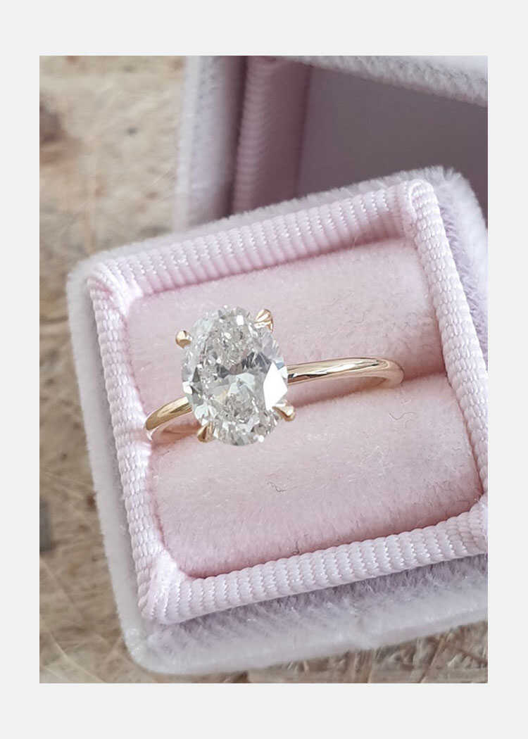 Yara: The diamond speaks for itself. A breathtaking 1.5 carat oval center stone set in our signature ultra thin solitaire setting. This ring is delicate and full of elegant simplicity.