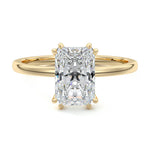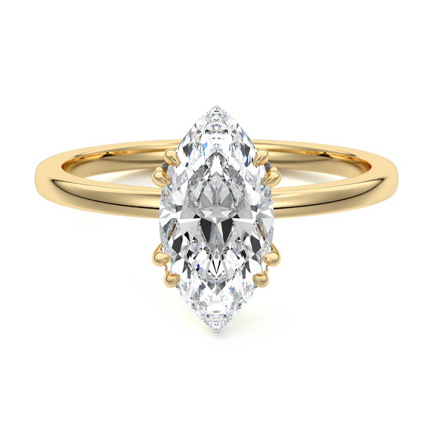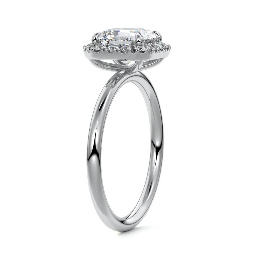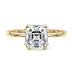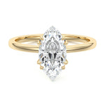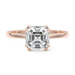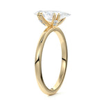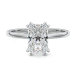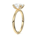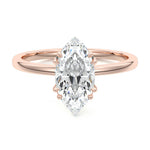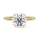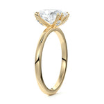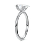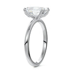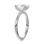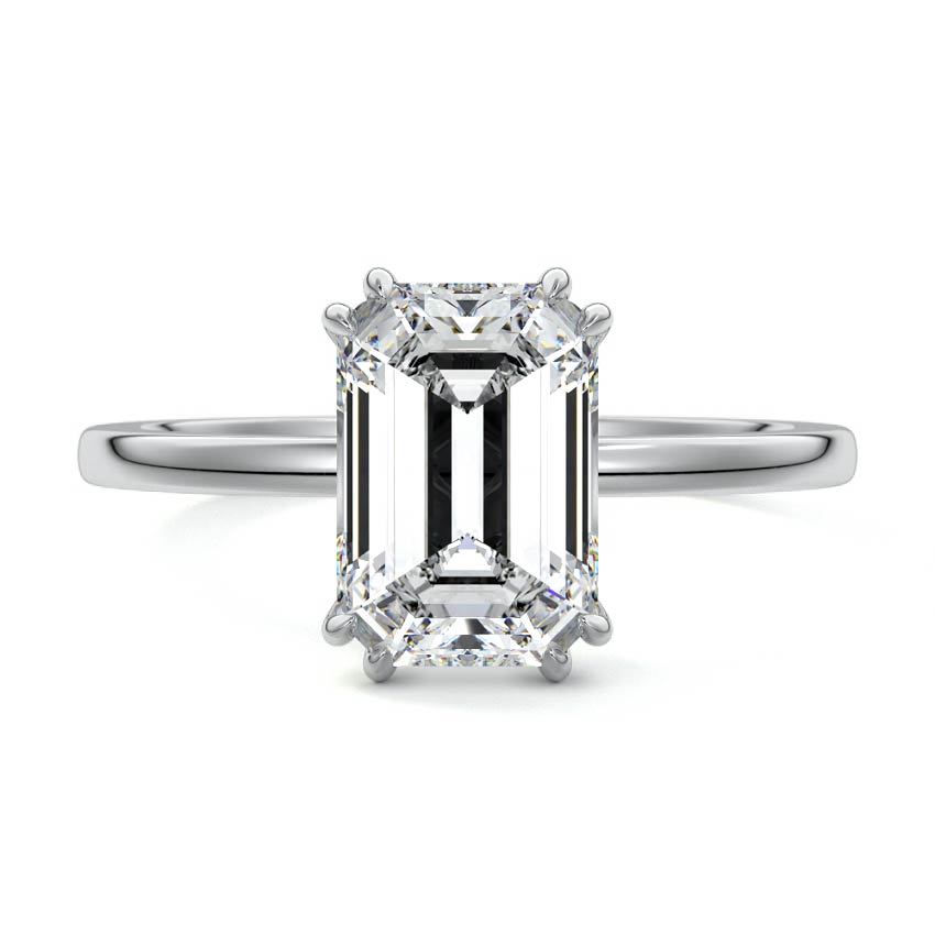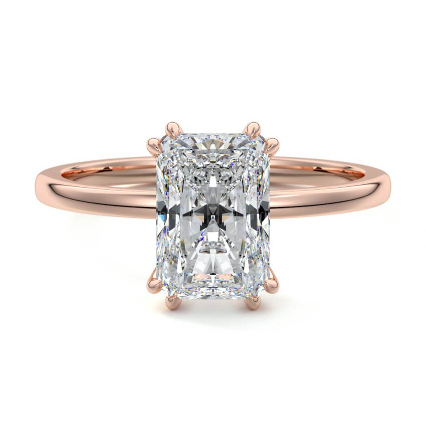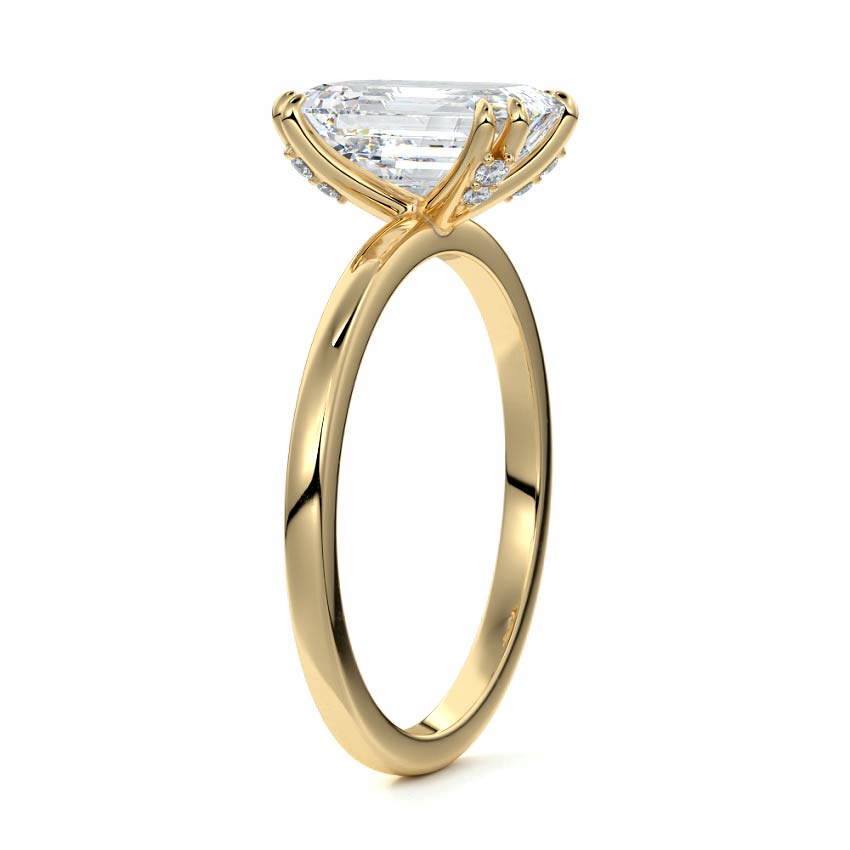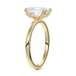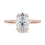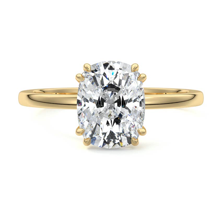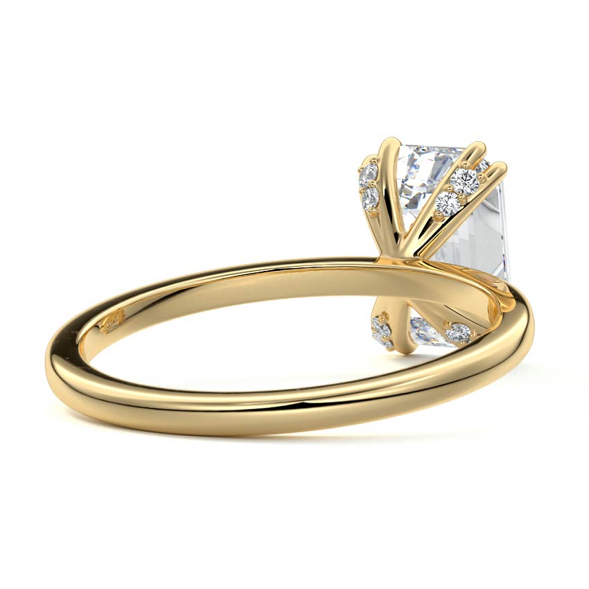 The solitaire setting boasts a semi-rounded mount adorned with a diamond-accented double prong arrangement, adding a contemporary touch of grace that distinguishes it from the conventional double prong solitaire design.