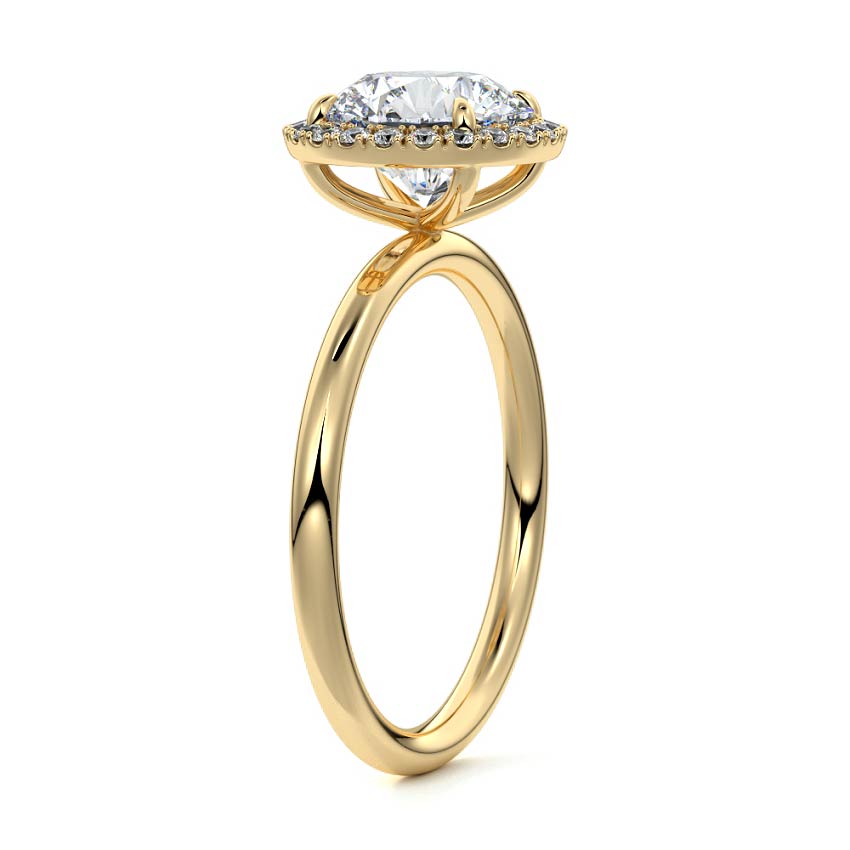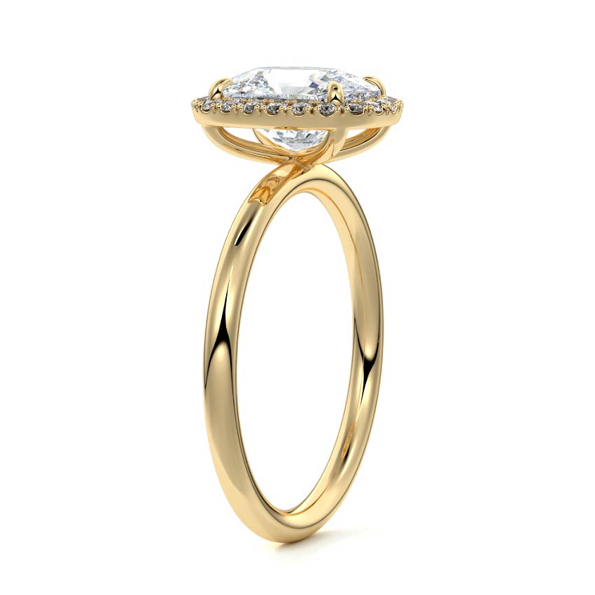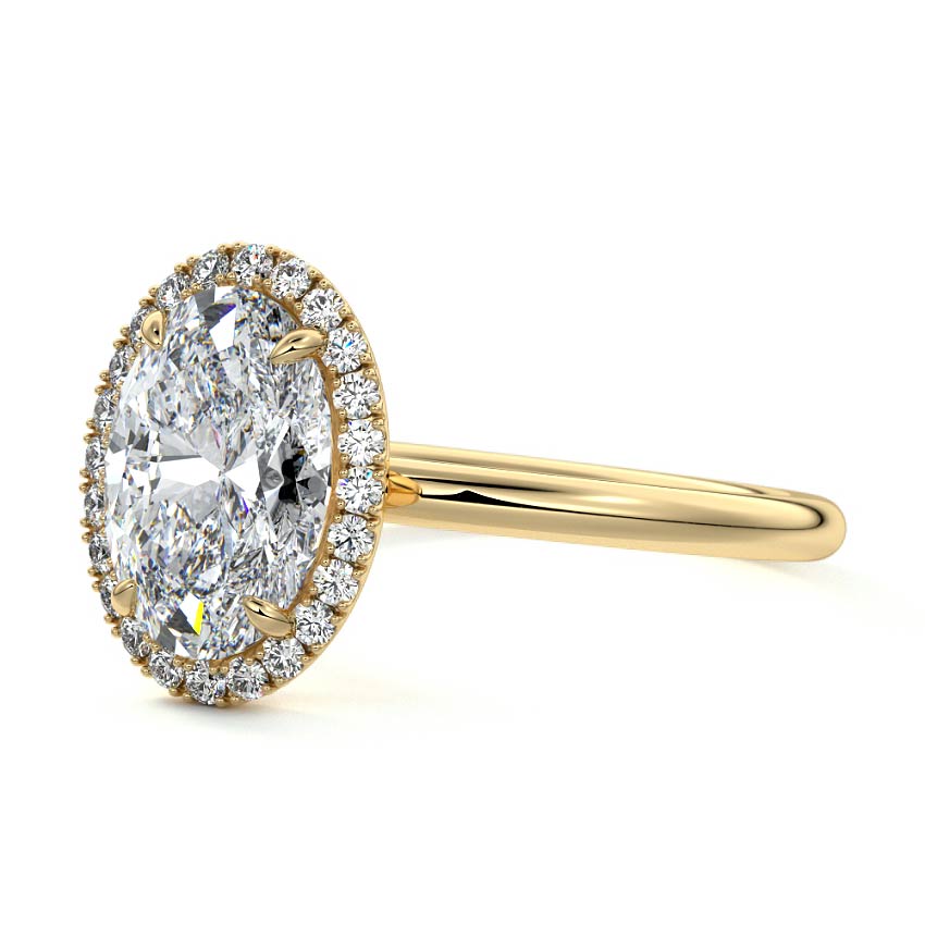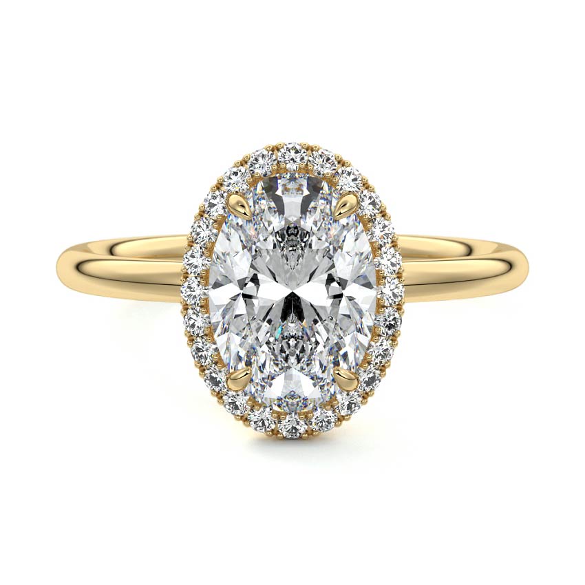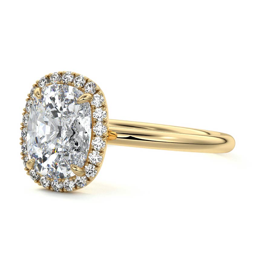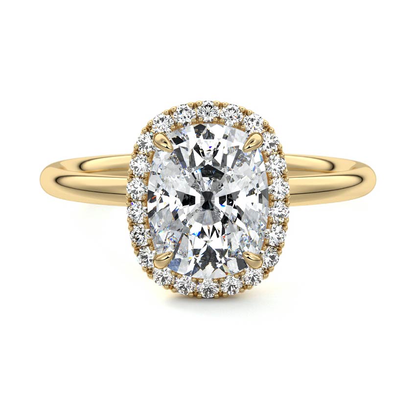What sets our signature halo apart is the exquisite halo of smaller diamonds that gracefully encircle the center stone, enhancing its brilliance and creating an enchanting frame. This halo adds an extra layer of sparkle and radiance to the ring, elevating its beauty and making it truly unforgettable.