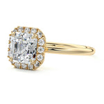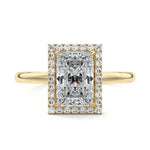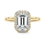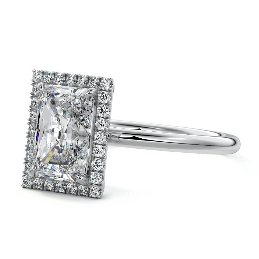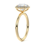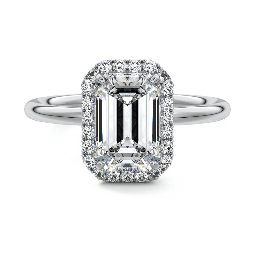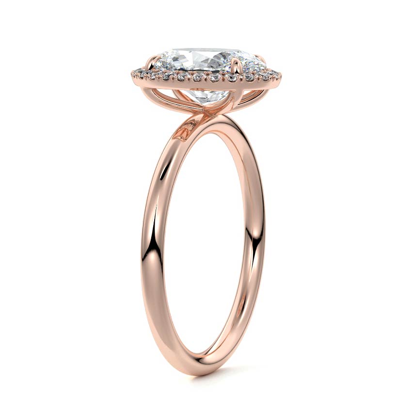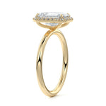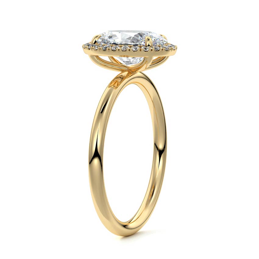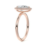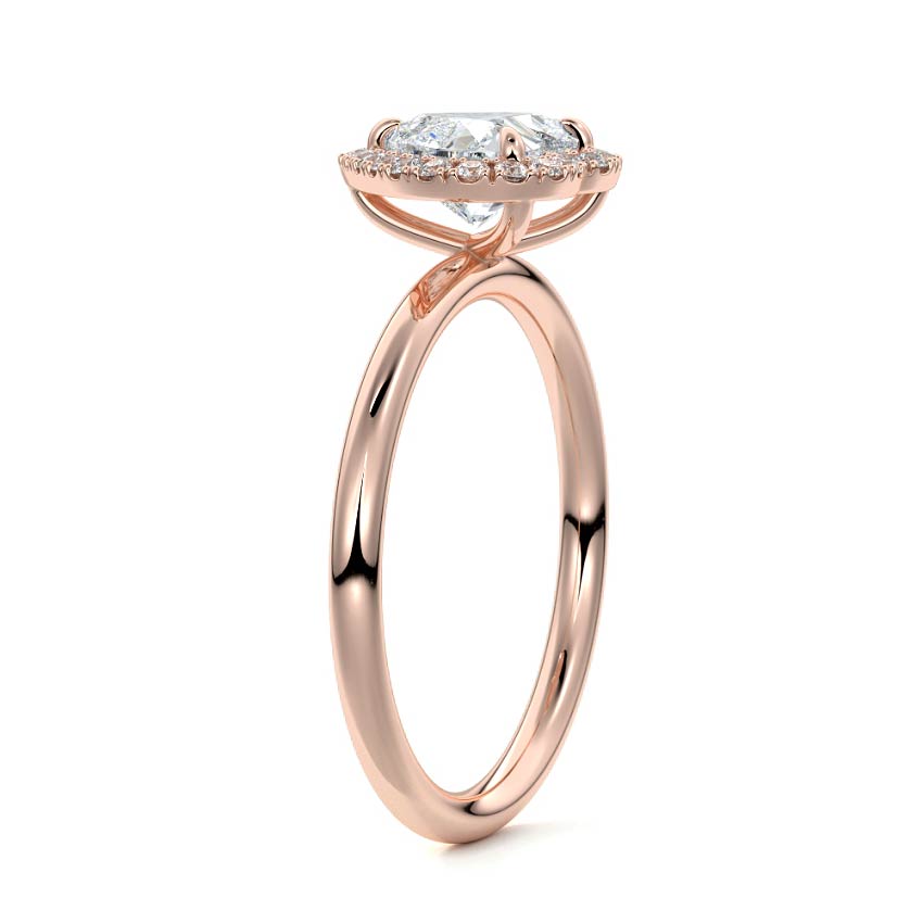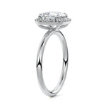 What sets our signature halo apart is the exquisite halo of smaller diamonds that gracefully encircle the center stone, enhancing its brilliance and creating an enchanting frame. This halo adds an extra layer of sparkle and radiance to the ring, elevating its beauty and making it truly unforgettable.