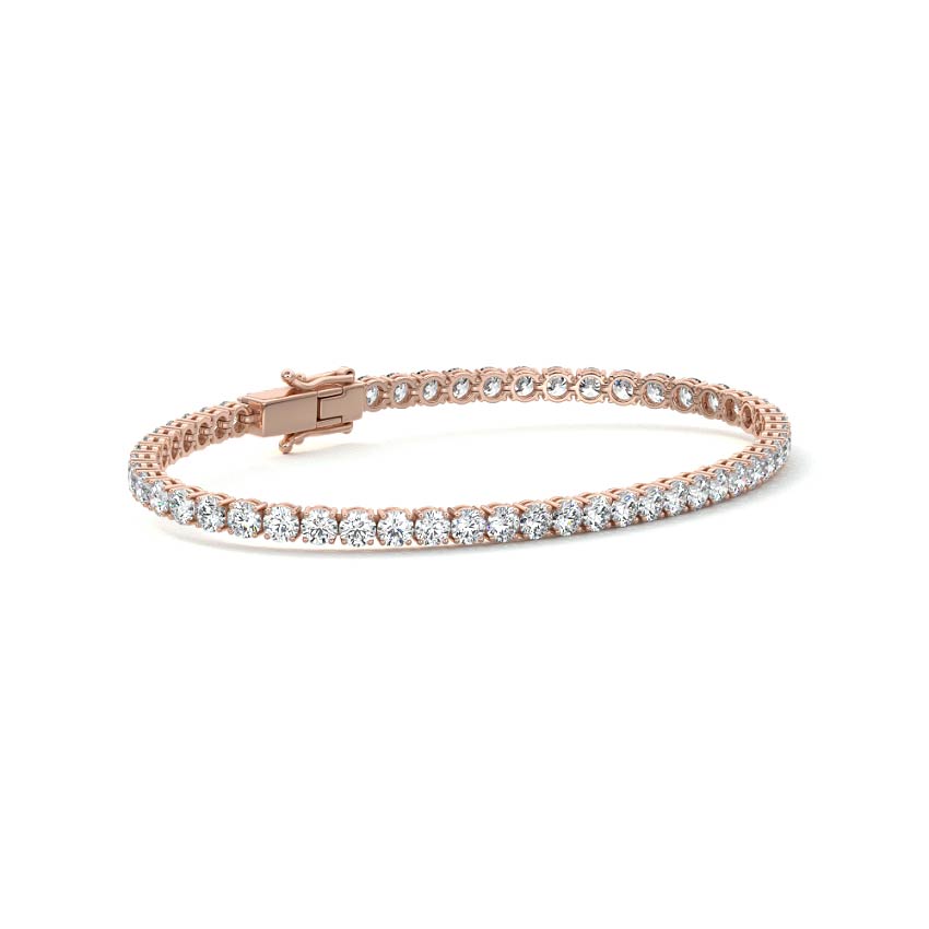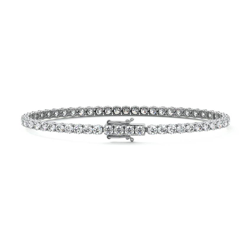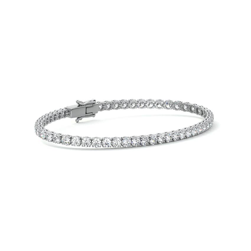 Four Prong Tennis Bracelet: This four-prong diamond tennis bracelet exudes timeless elegance and effortless sophistication. Each diamond is carefully set in a secure four-prong setting, allowing the stones to sparkle brilliantly while maintaining a classic, refined look. The diamonds are evenly spaced along the bracelet, creating a continuous flow of dazzling light that catches every angle. Crafted with precision and the highest quality materials, this bracelet offers both durability and lasting beauty. Perfect for special occasions or adding a touch of luxury to everyday wear, the four-prong diamond tennis bracelet is a versatile and elegant accessory that will remain a cherished part of your jewelry collection for years to come.