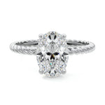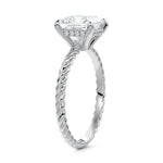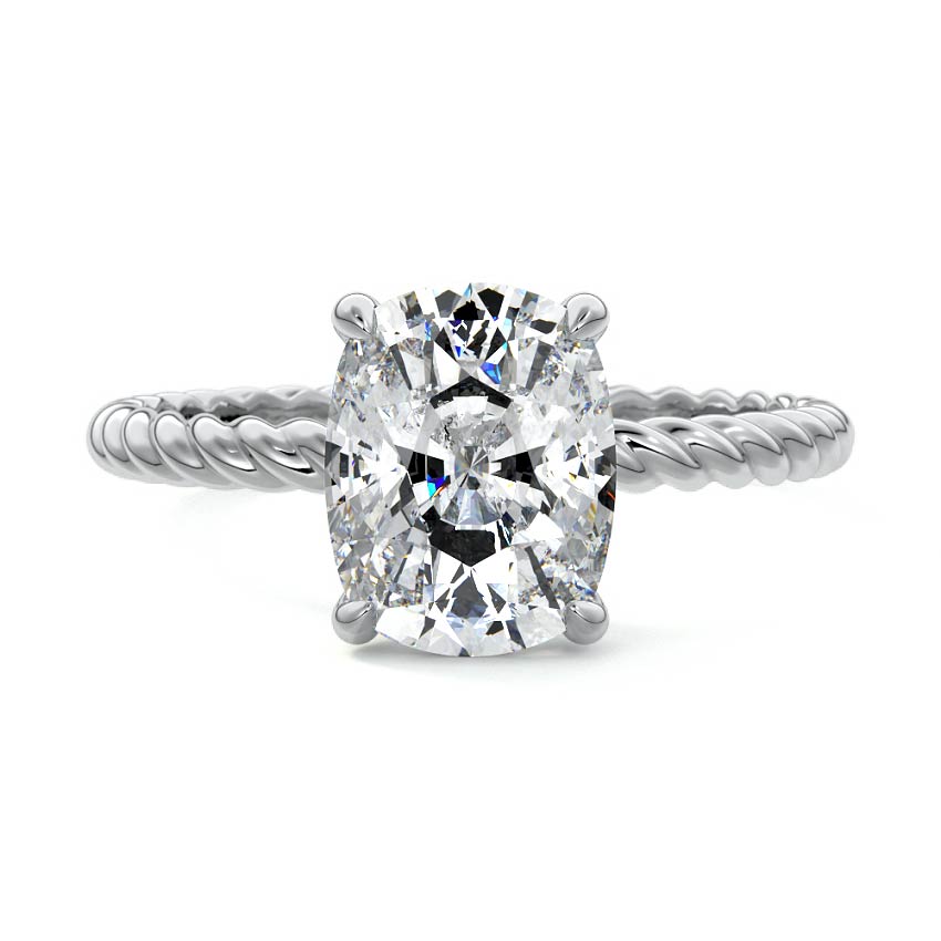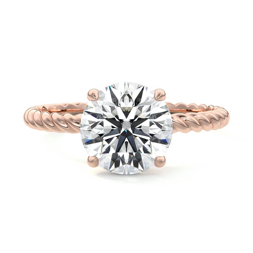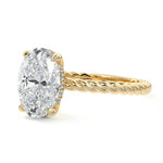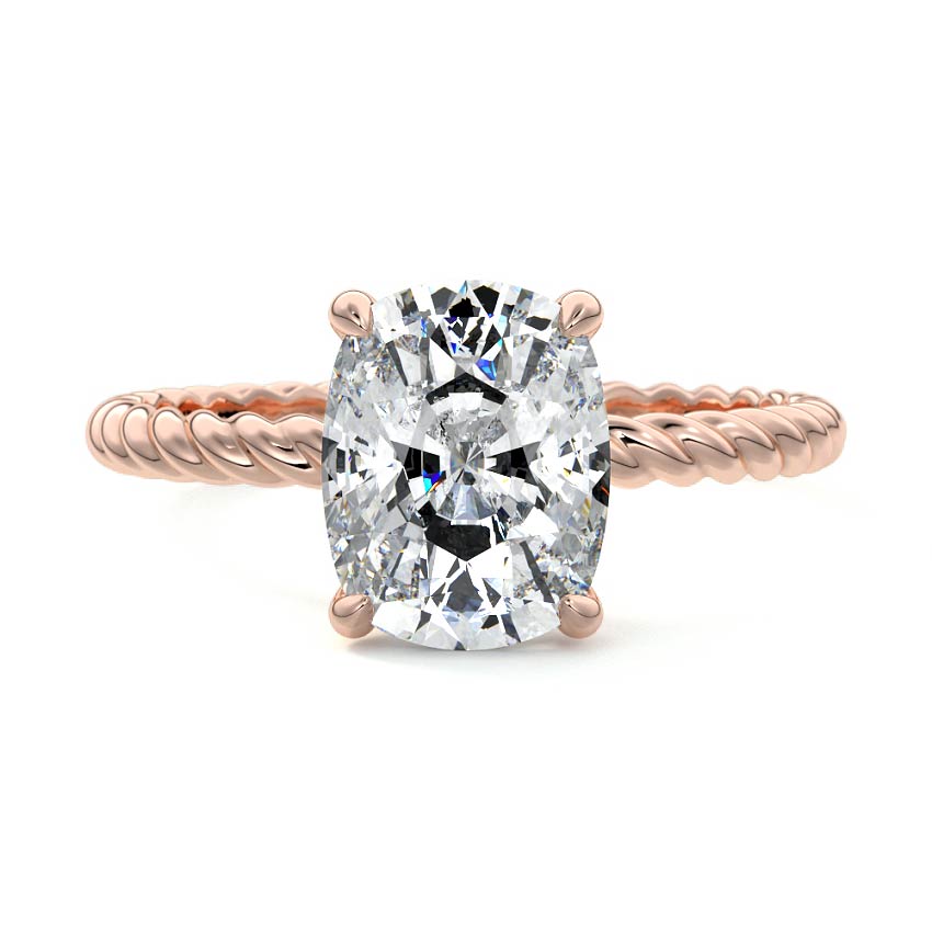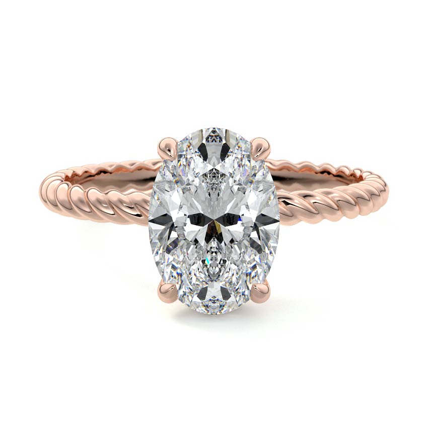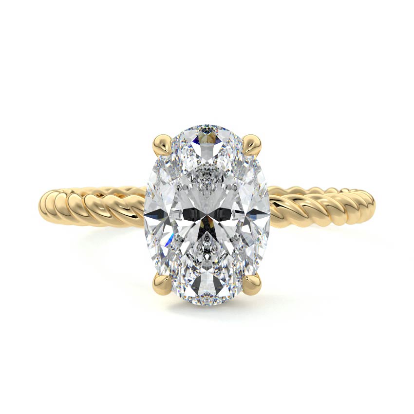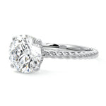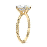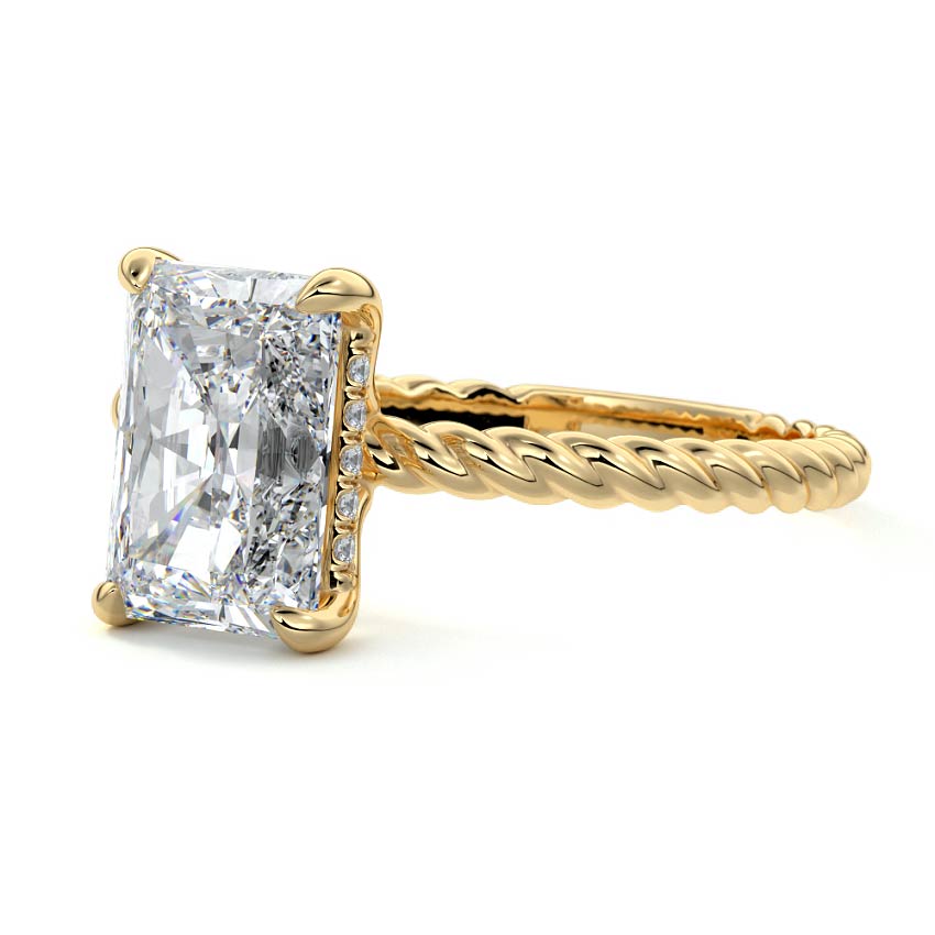 A striking and distinctive ring for those who appreciate unconventional designs. It combines the elegance of a hidden halo with the artistic charm of a twisted band, resulting in a unforgettable piece of jewelry.