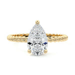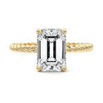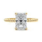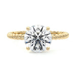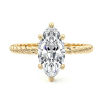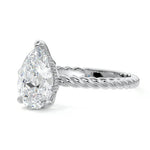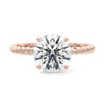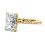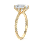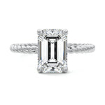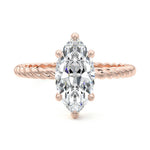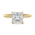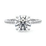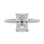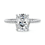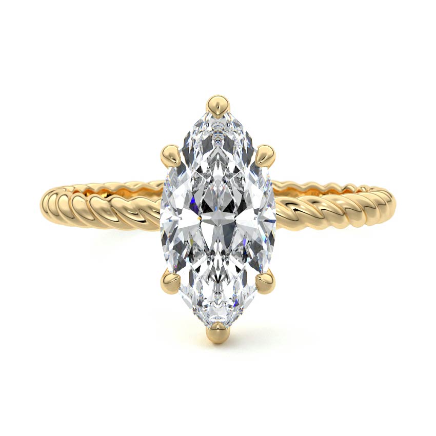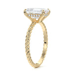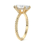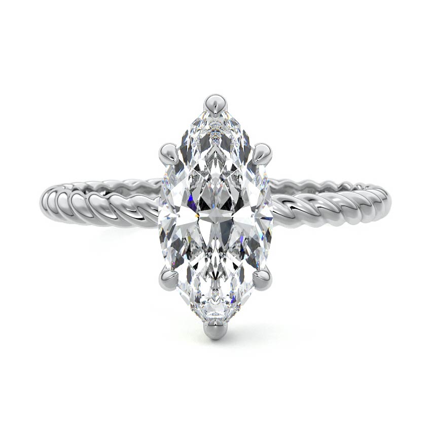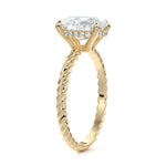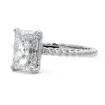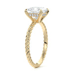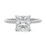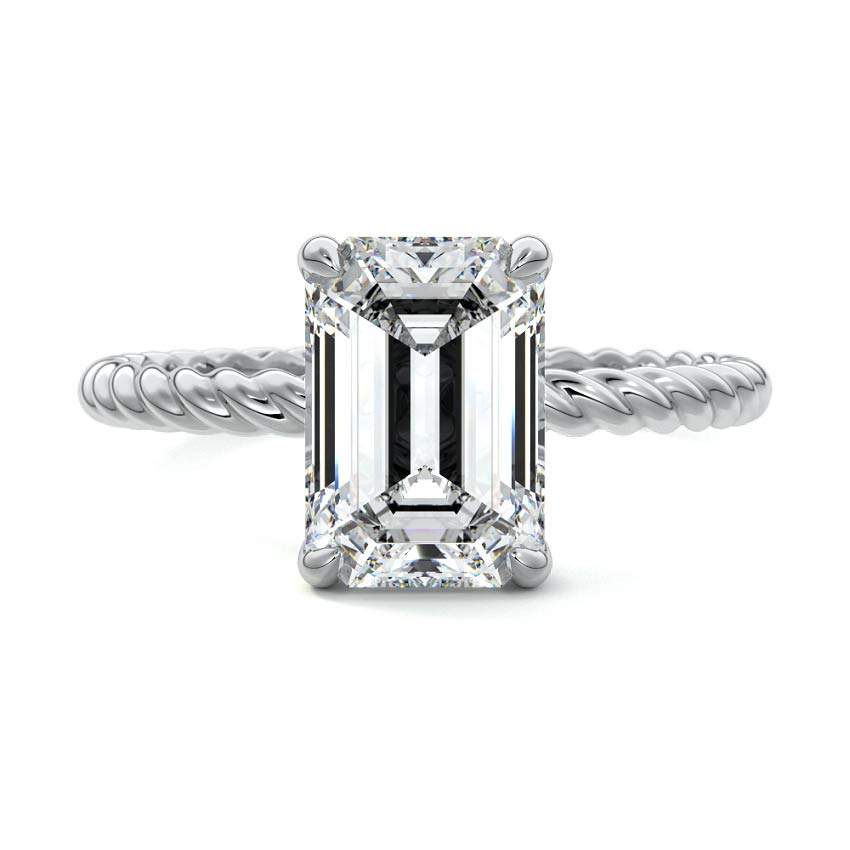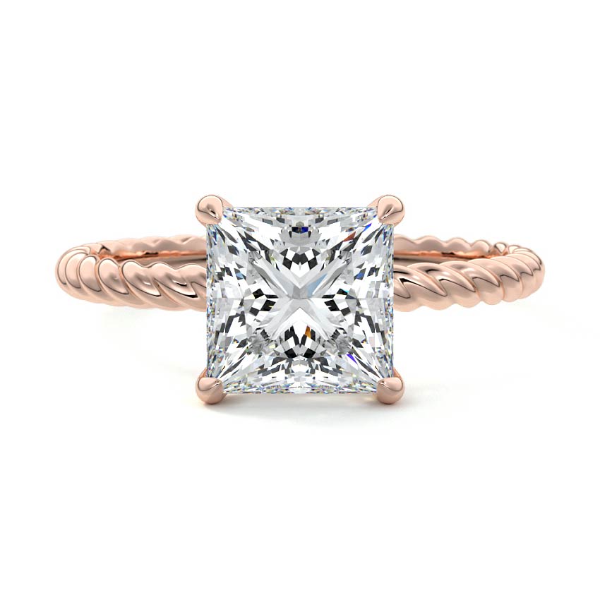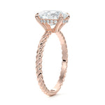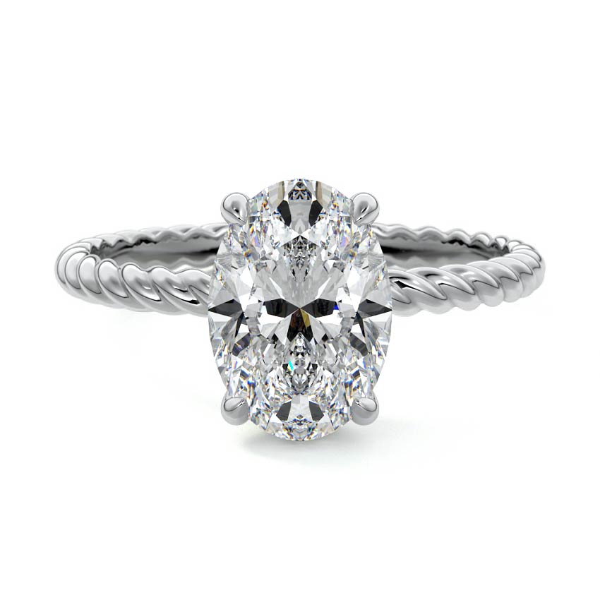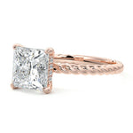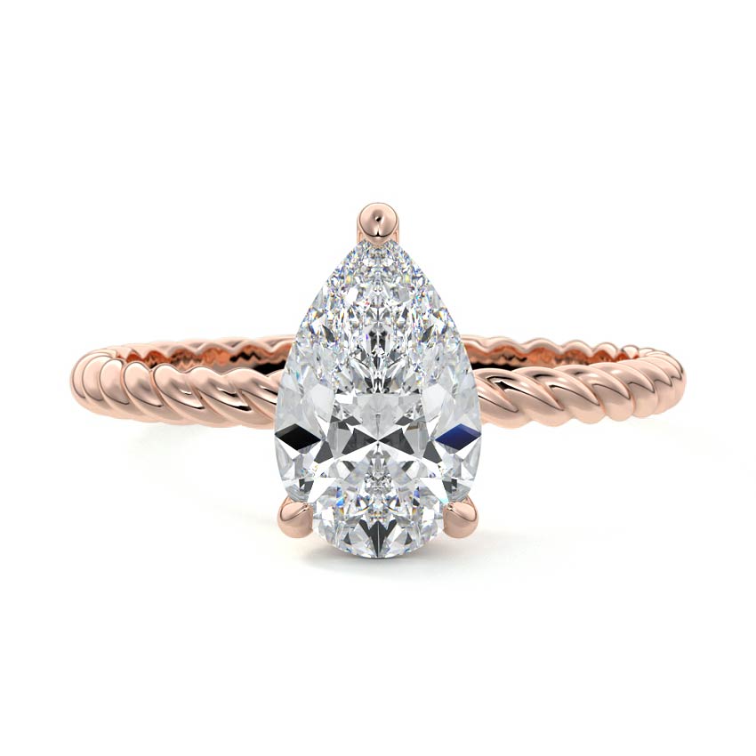 A striking and distinctive ring for those who appreciate unconventional designs. It combines the elegance of a hidden halo with the artistic charm of a twisted band, resulting in a unforgettable piece of jewelry.