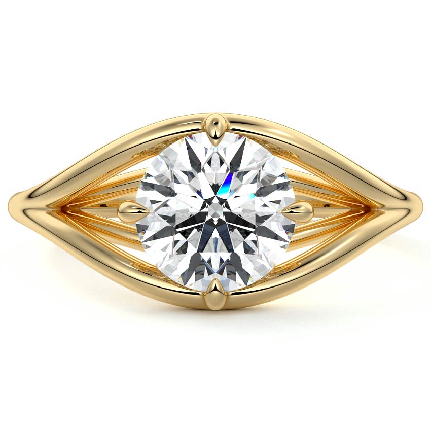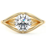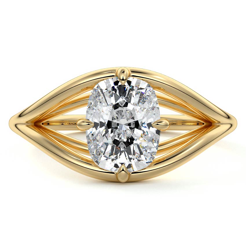 This split shank gold setting offers a super unique design that beautifully enhances the center stone, giving it a warm, inviting glow. The split band creates a striking visual effect while providing a comfortable fit, making it an exceptional choice for those seeking a ring that stands out. The combination of gold and the captivating center stone creates a harmonious blend of elegance and individuality, perfect for celebrating love.
