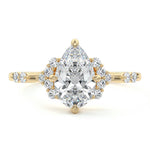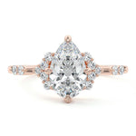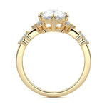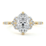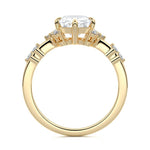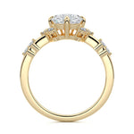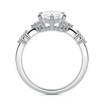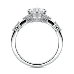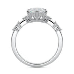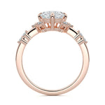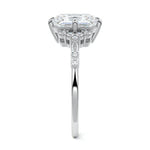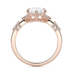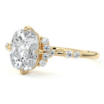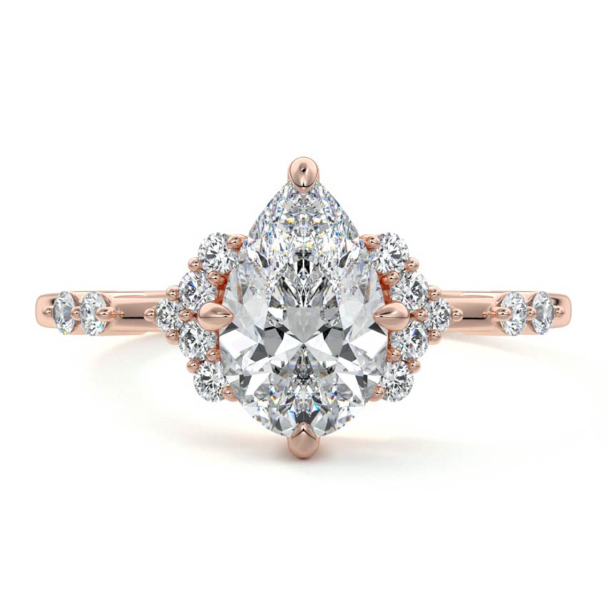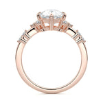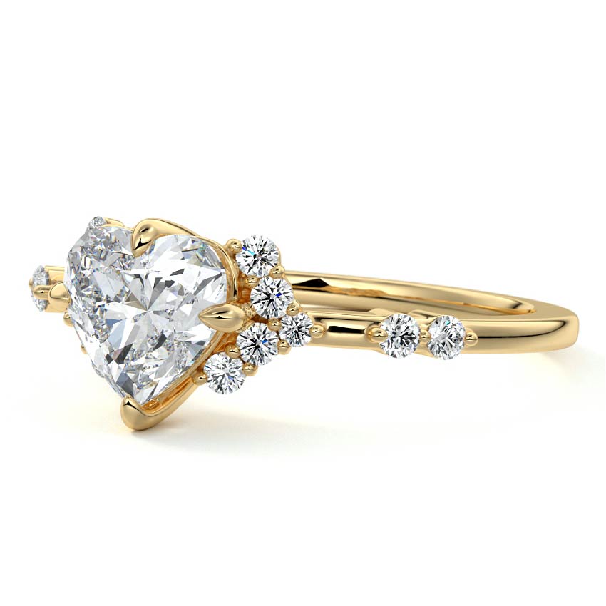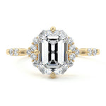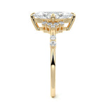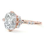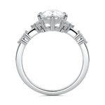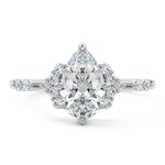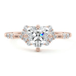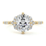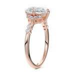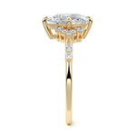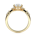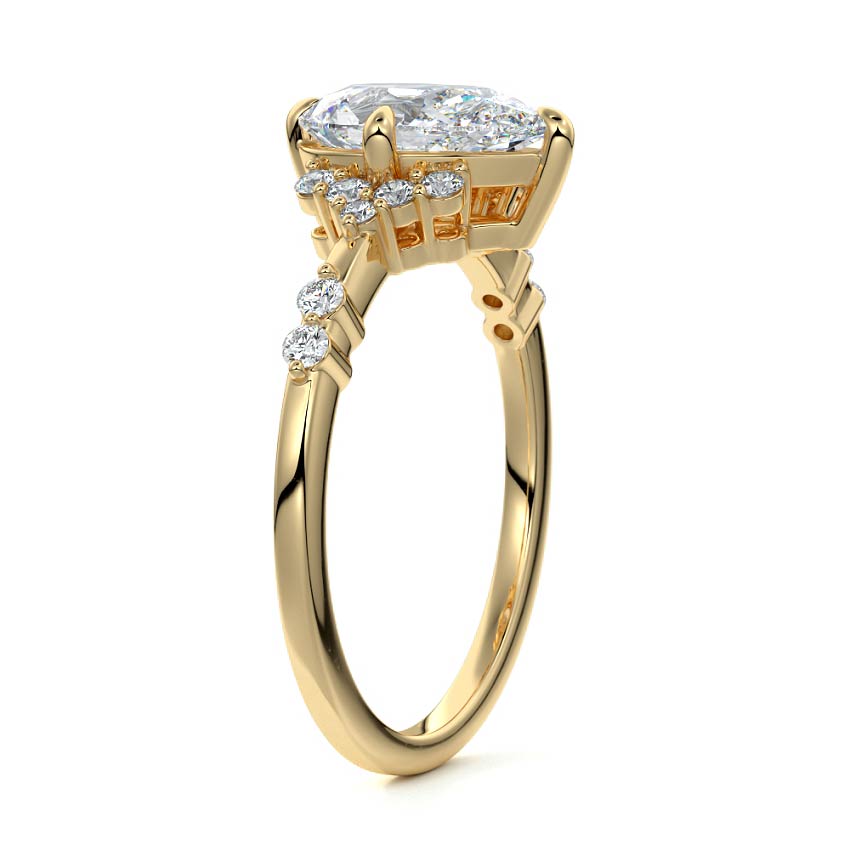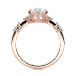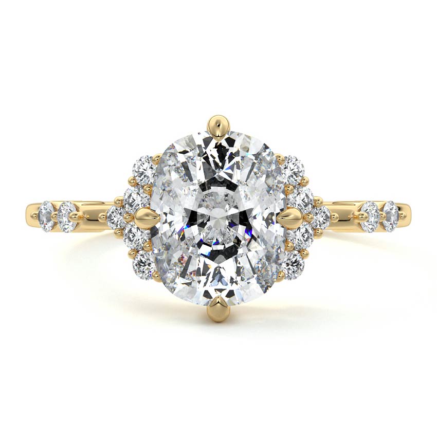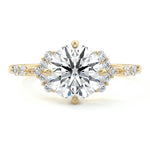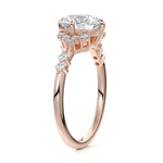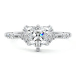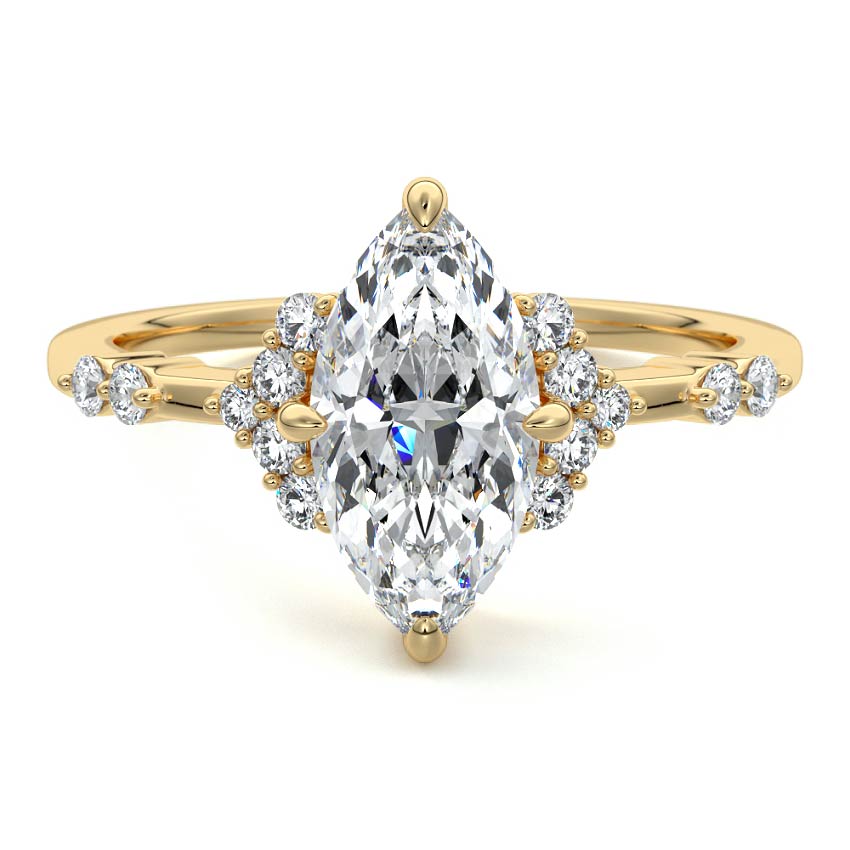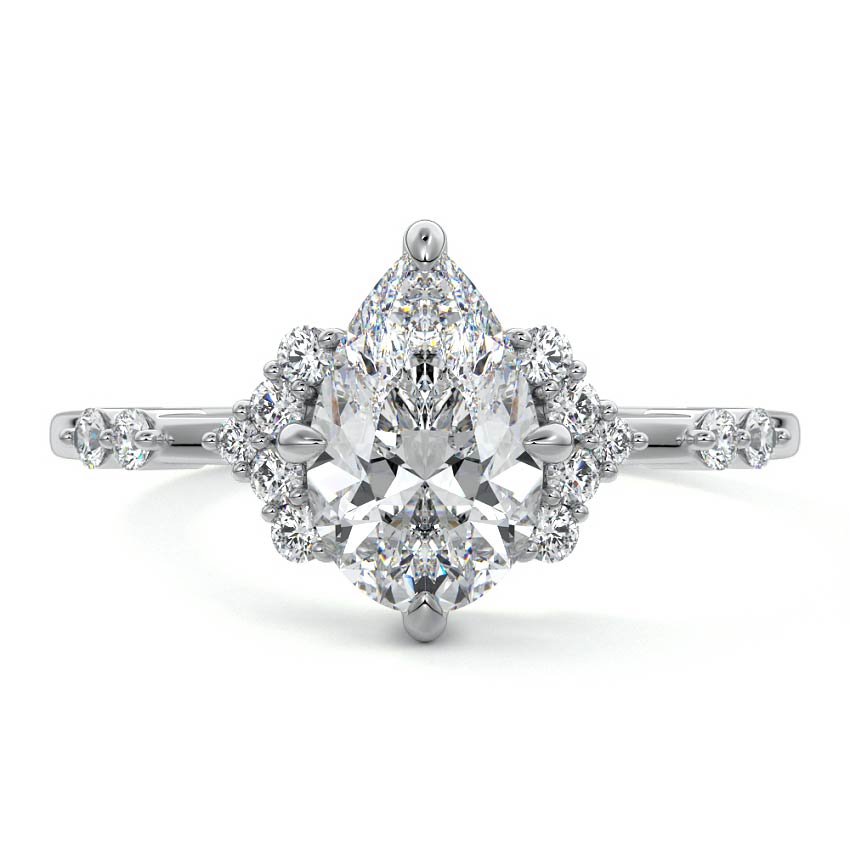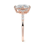 In this ornate ring setting, you'll find an array of diamond accents in various shapes, along with an adorned cluster of diamonds flanking the center stone. These compass-style prongs lend a decorative and ornate quality to the setting.