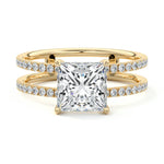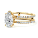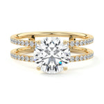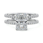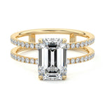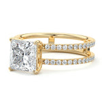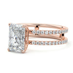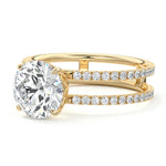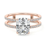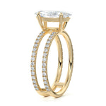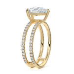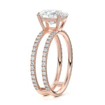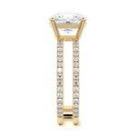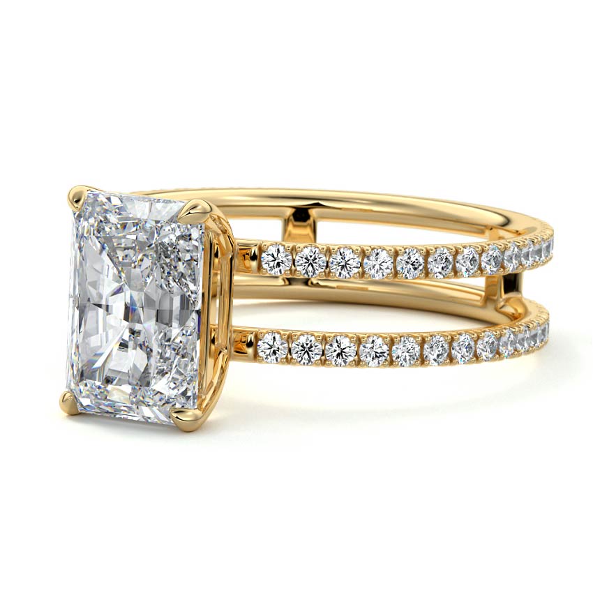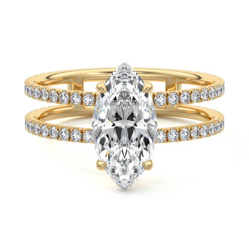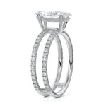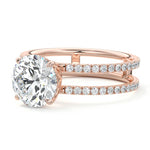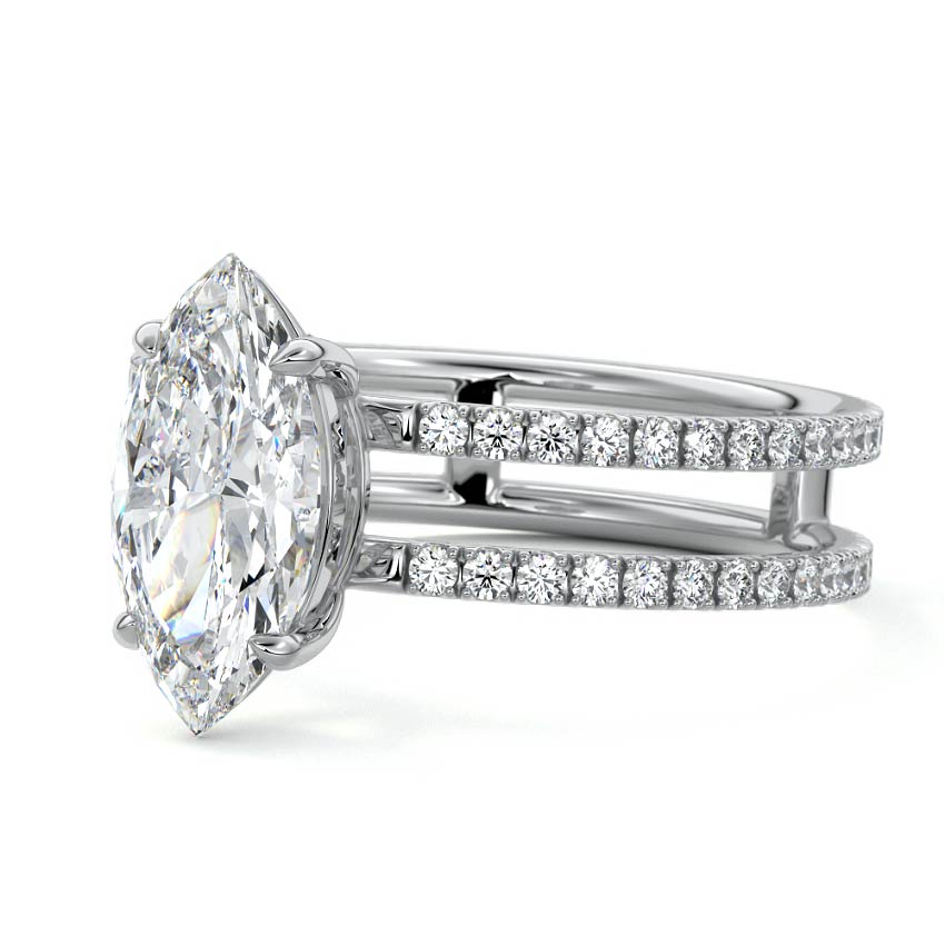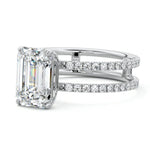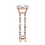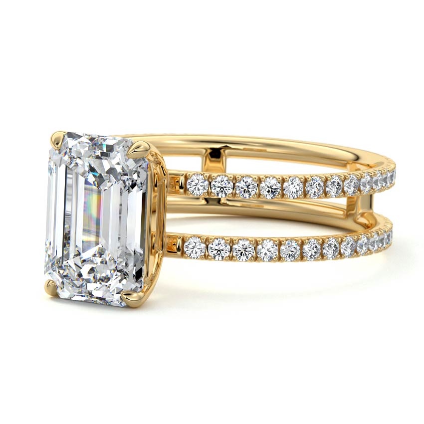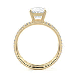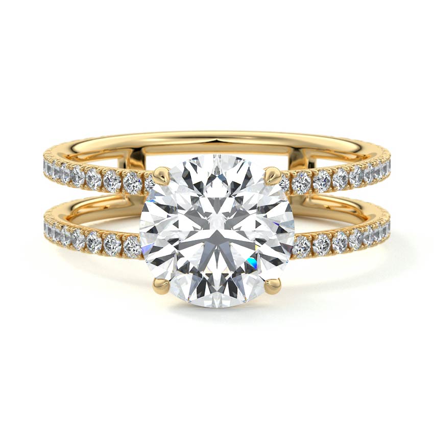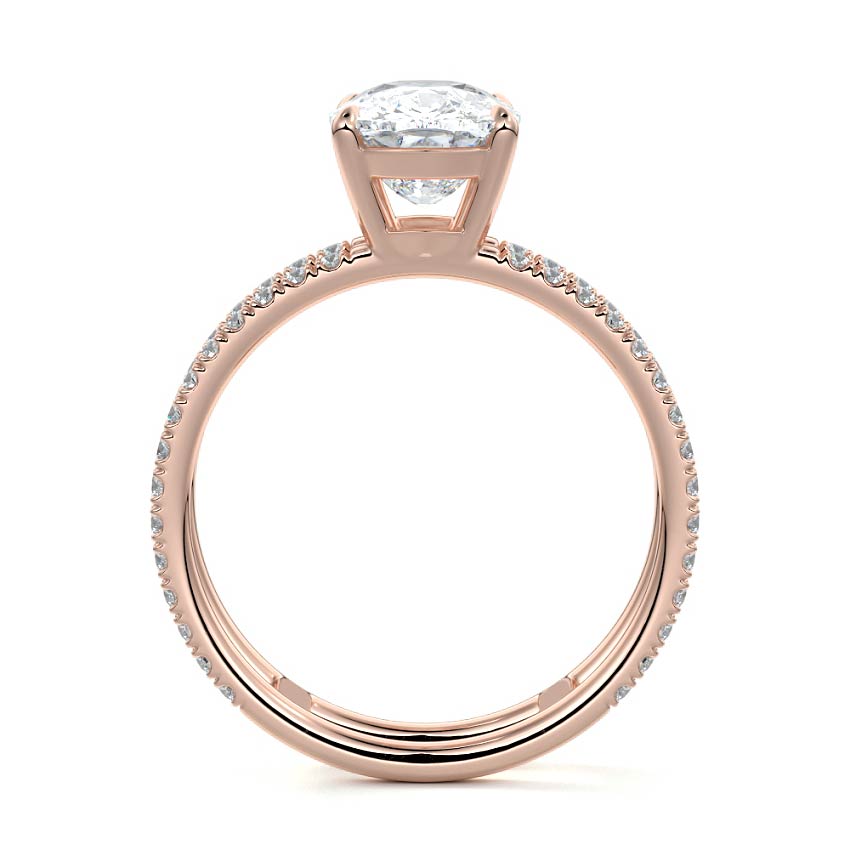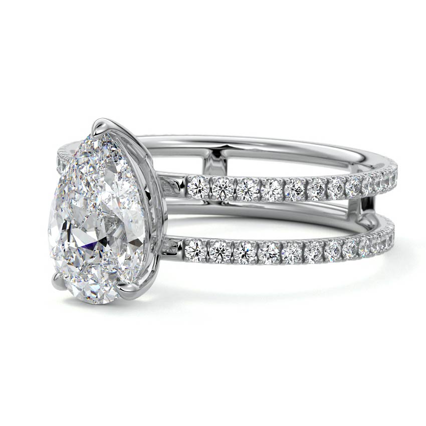 The standout feature of this setting is its double row diamond band. This means that there are two rows of diamonds set along the band of the ring. The double row of diamonds adds extra brilliance, sparkle, and a sense of luxury to the ring.