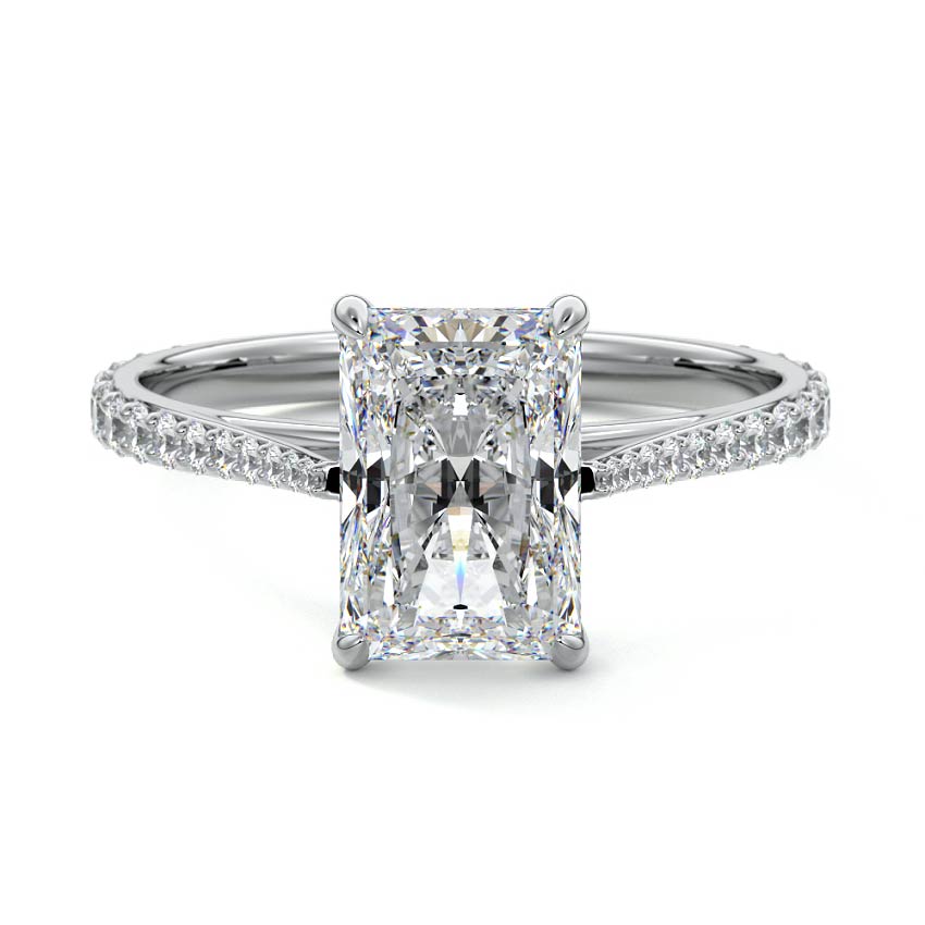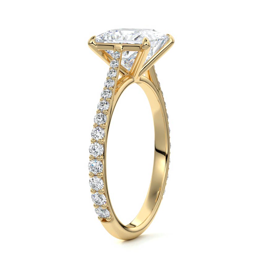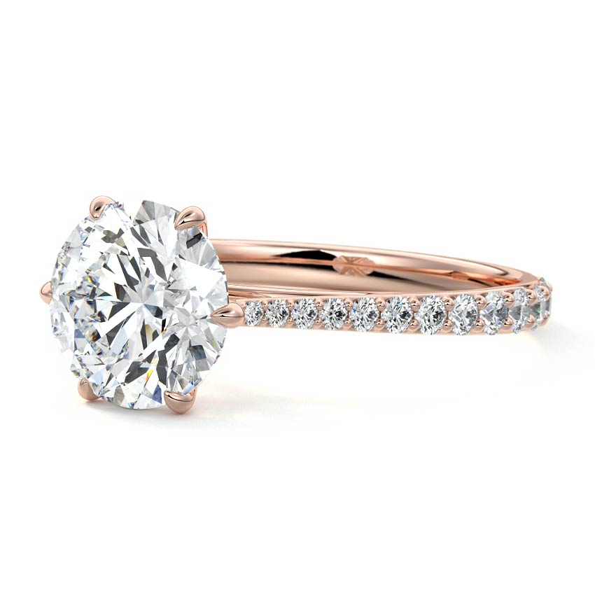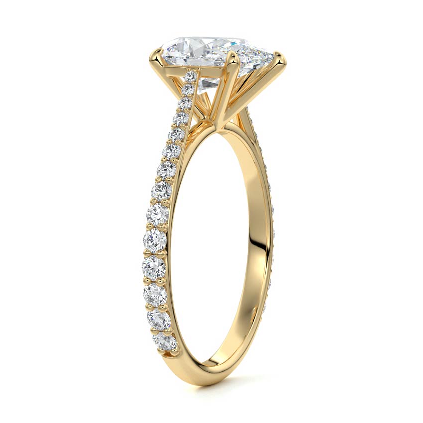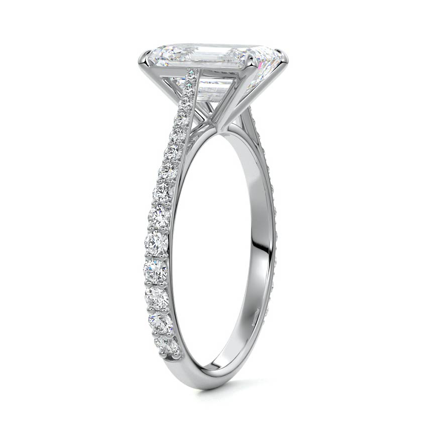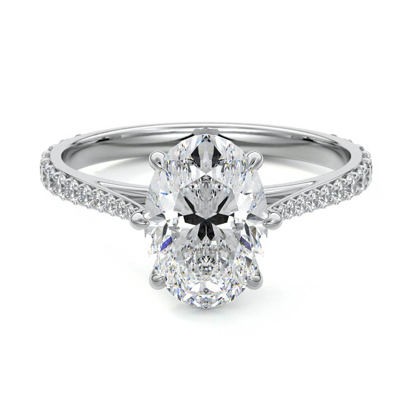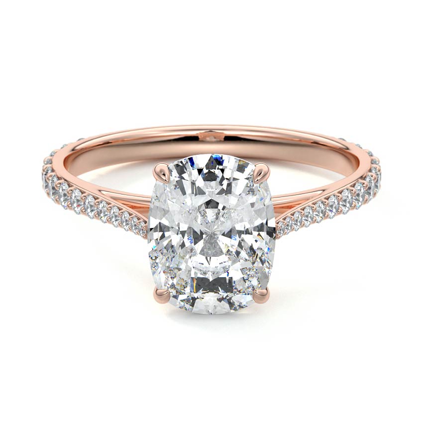 This setting is a striking choice for those who want a balance between a classic solitaire engagement ring and one with added detail and brilliance. The cathedral arches and graduated pave diamonds create a captivating and regal look that is sure to dazzle and delight.