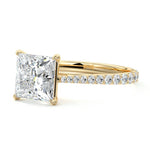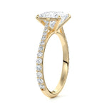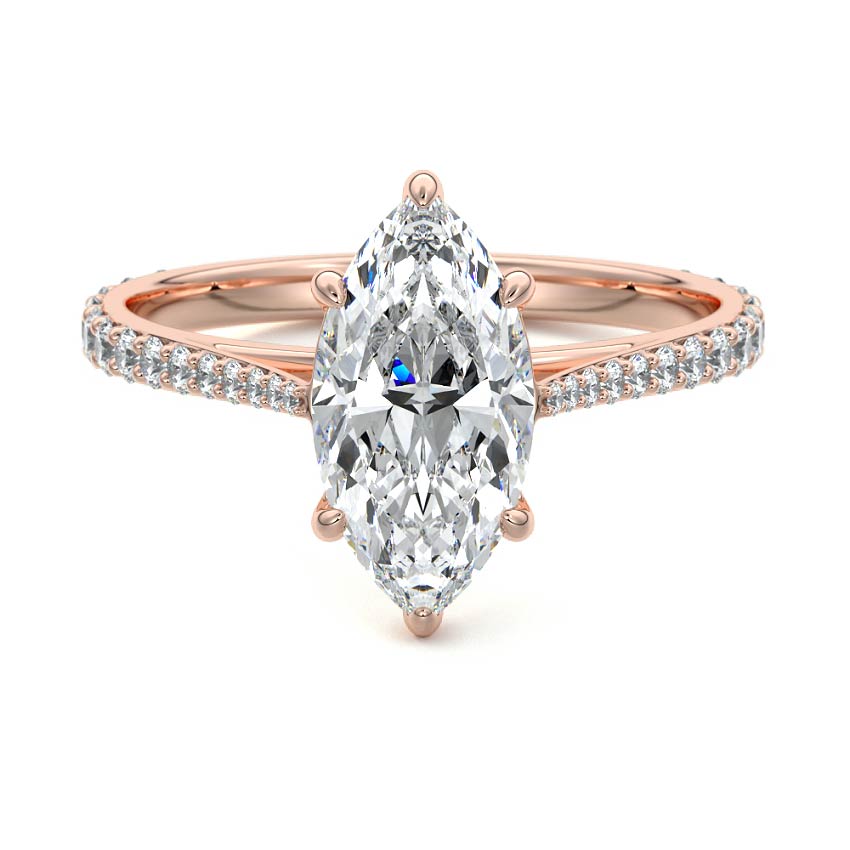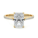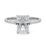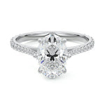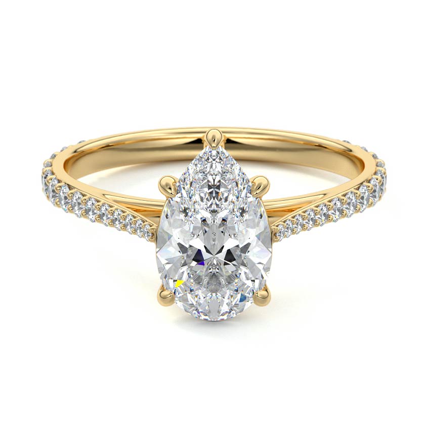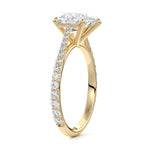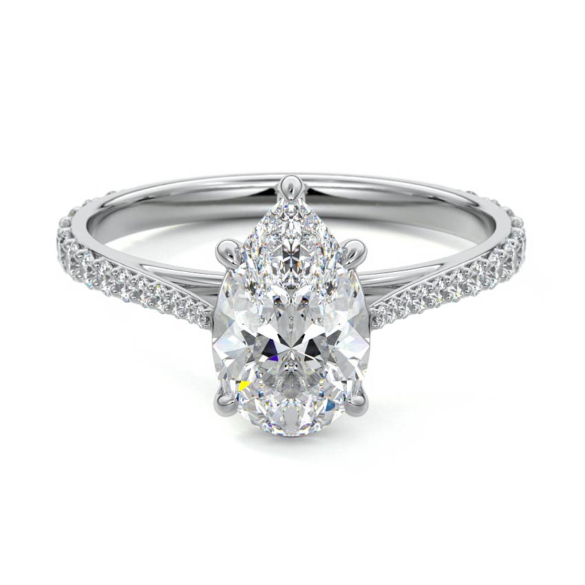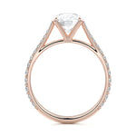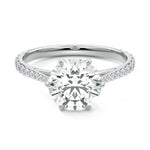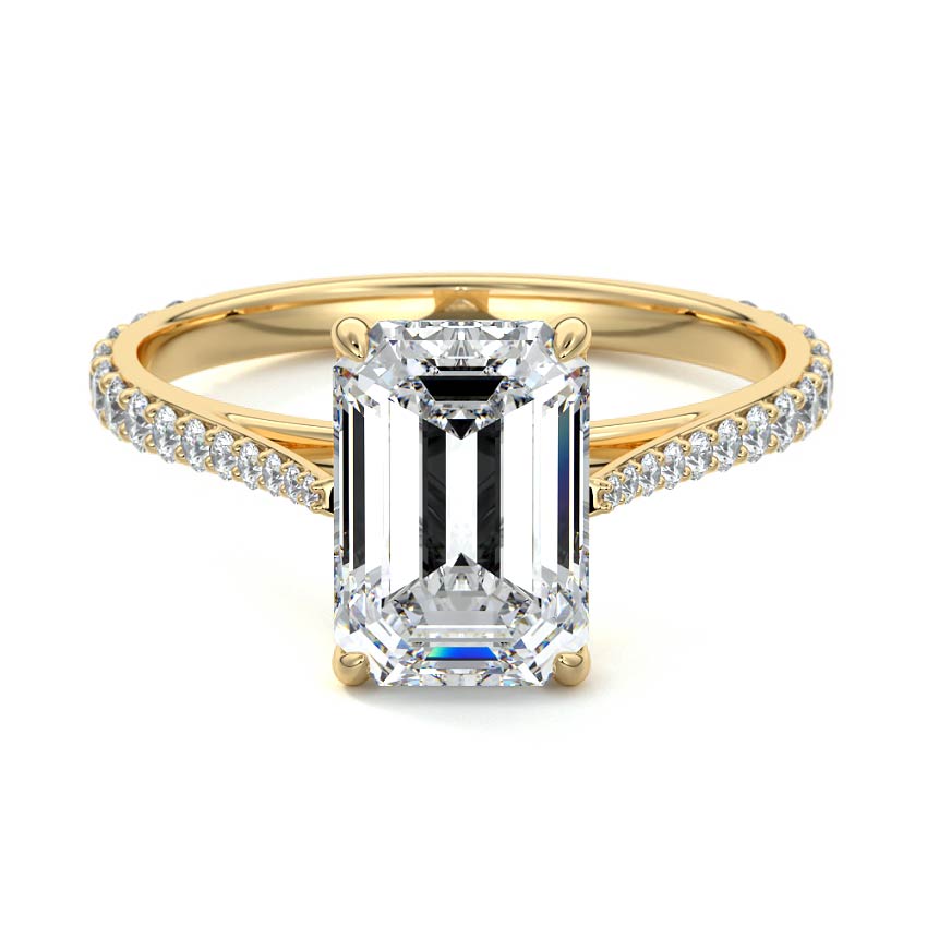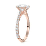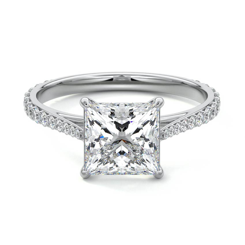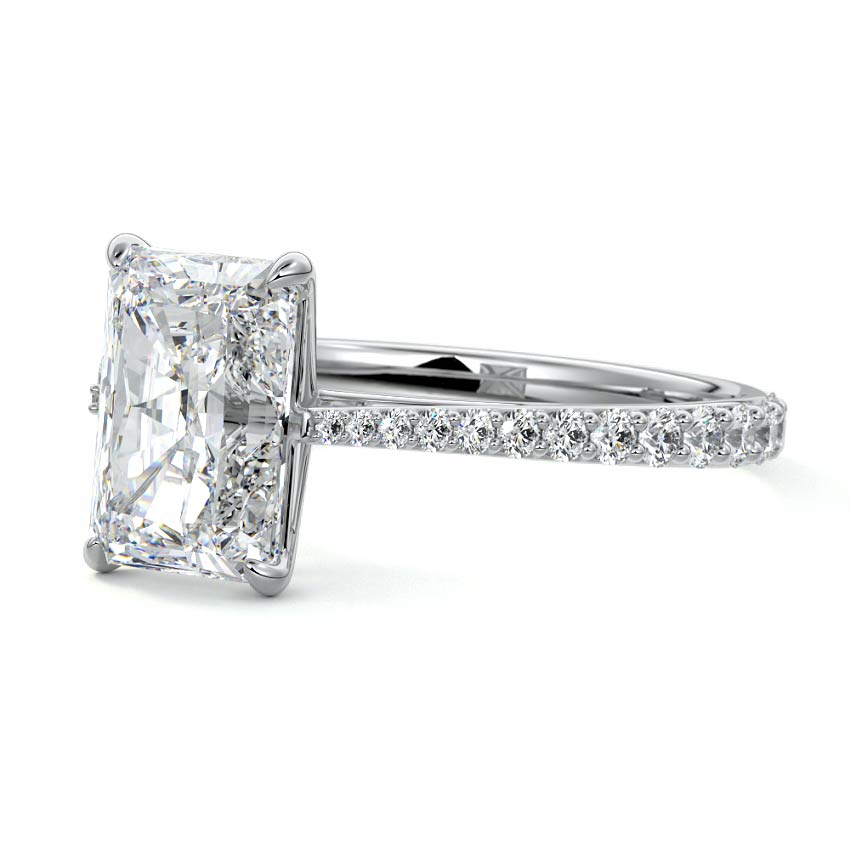 This setting is a striking choice for those who want a balance between a classic solitaire engagement ring and one with added detail and brilliance. The cathedral arches and graduated pave diamonds create a captivating and regal look that is sure to dazzle and delight.