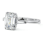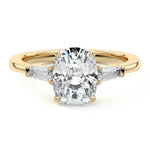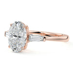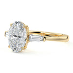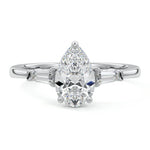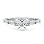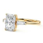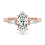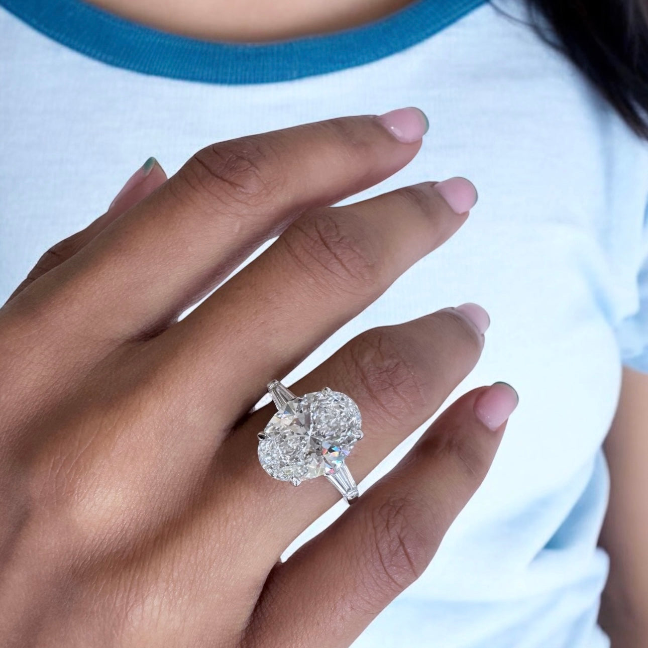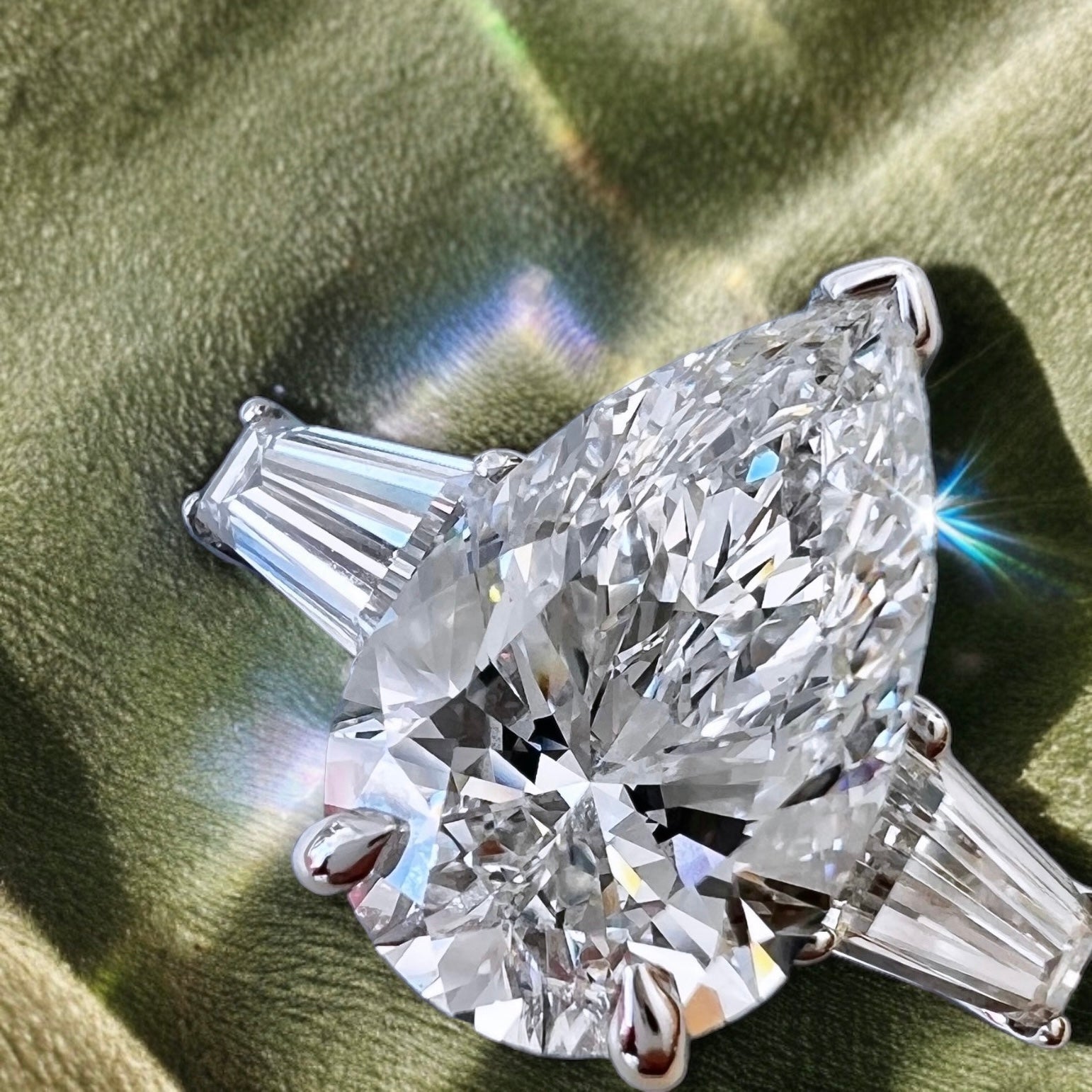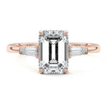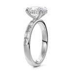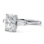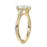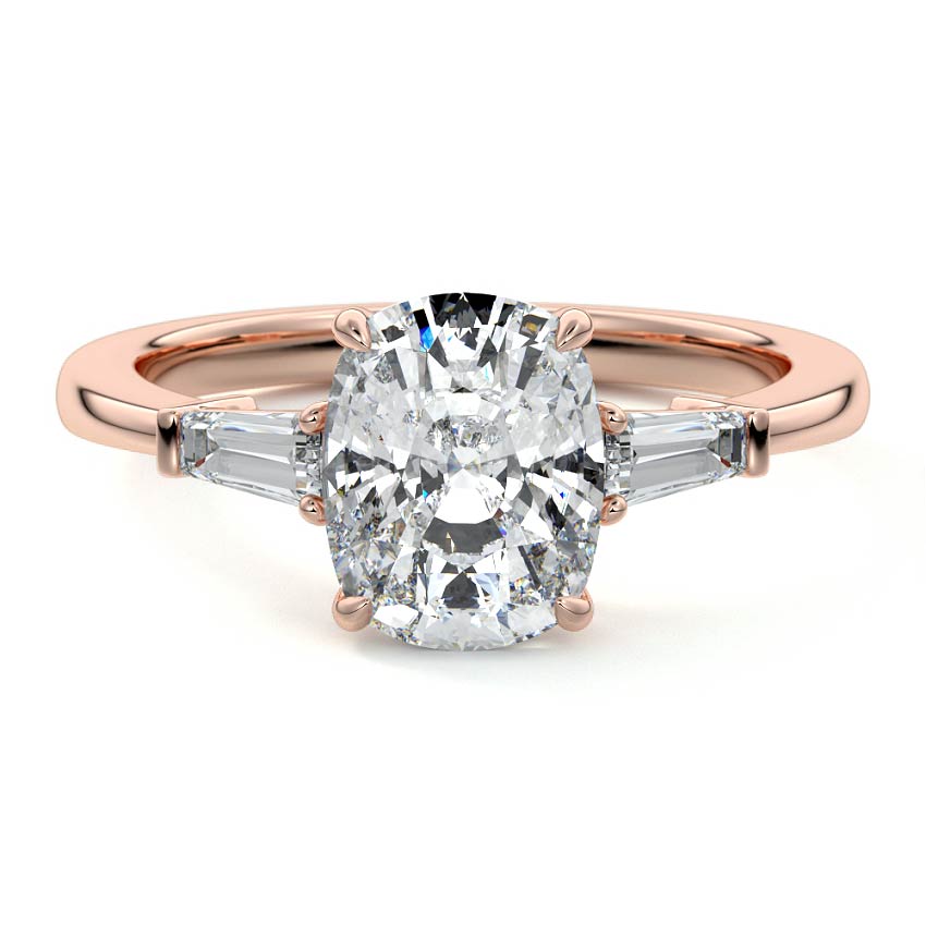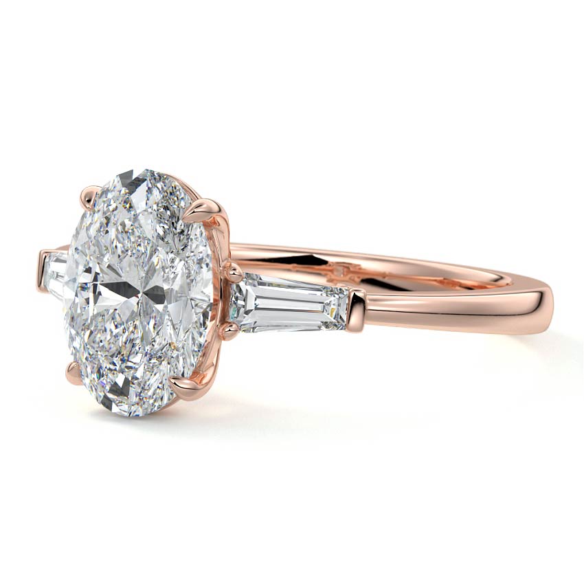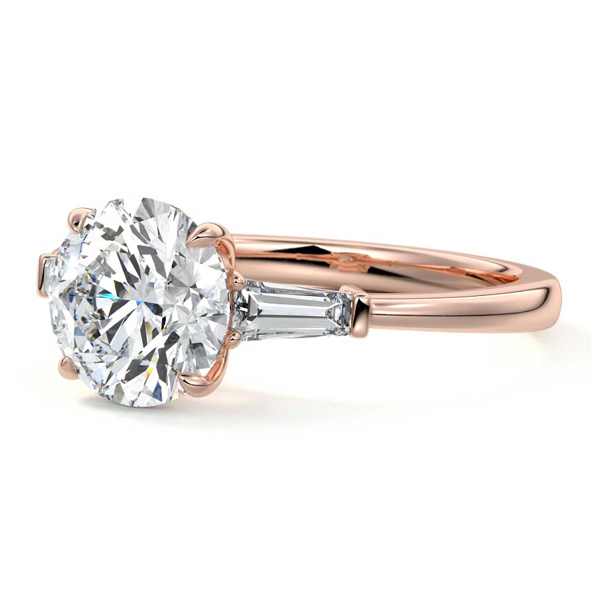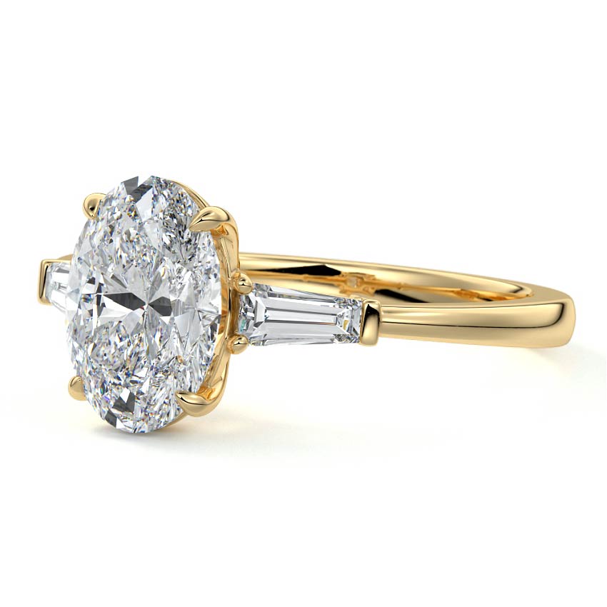 The baguette-cut stones, characterized by their rectangular shape and step-cut facets, offer a sleek and contemporary aesthetic, embodying timeless beauty in a streamlined design.