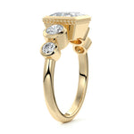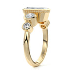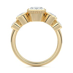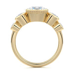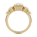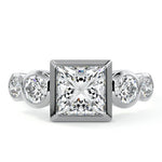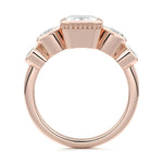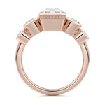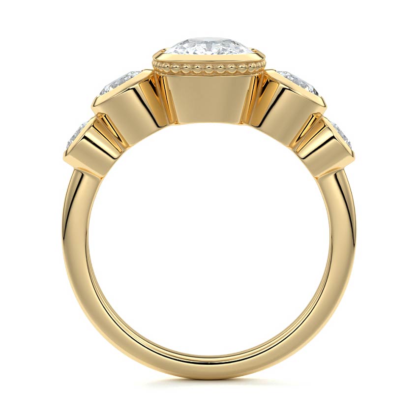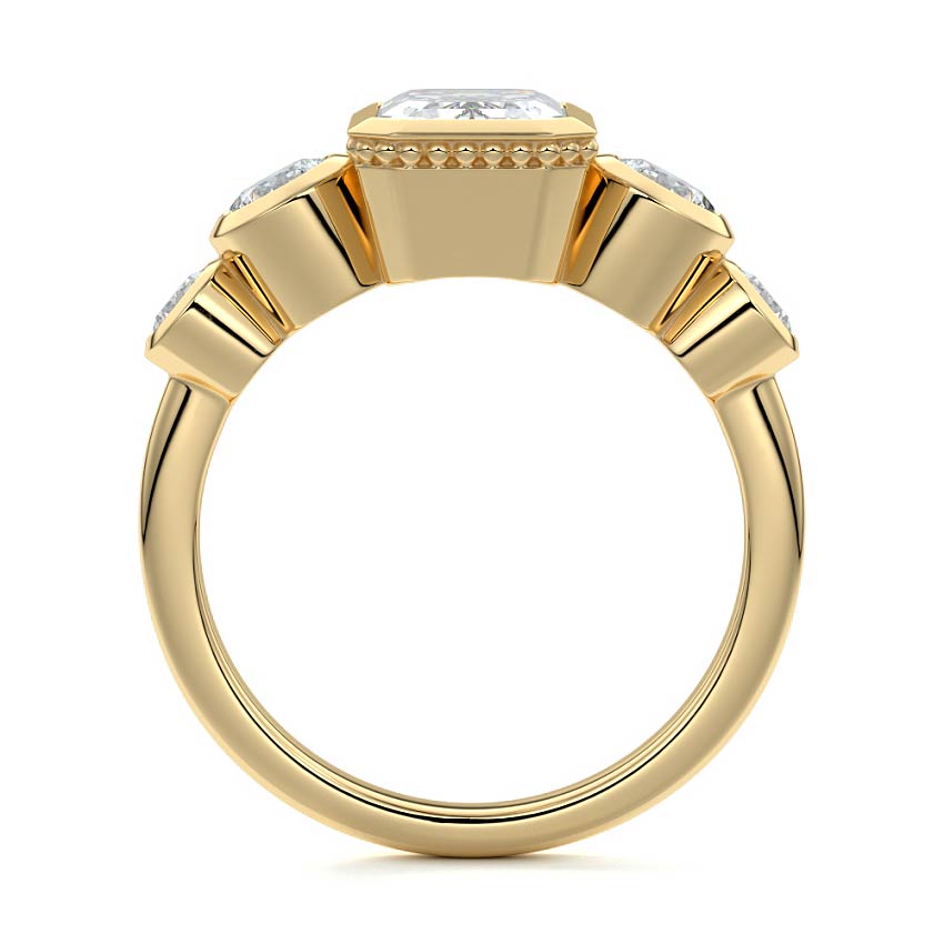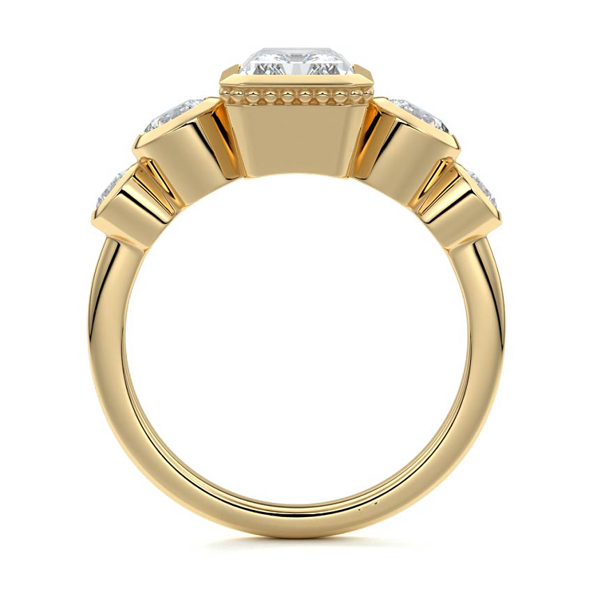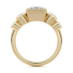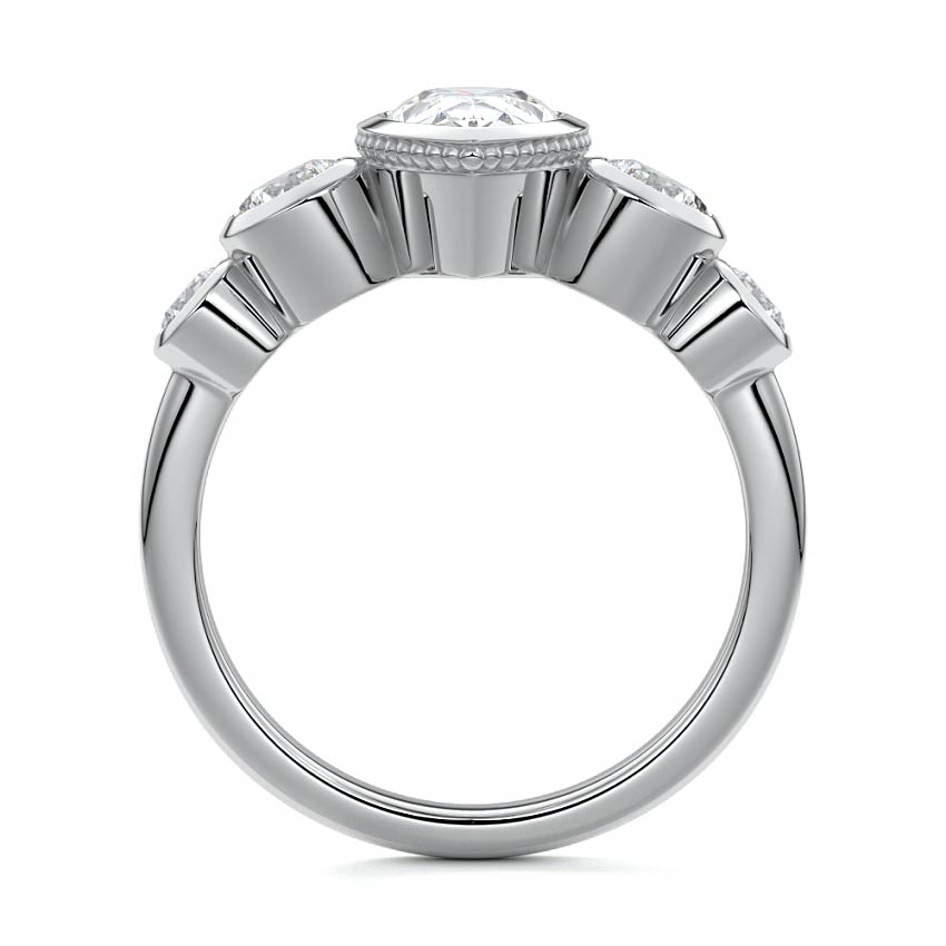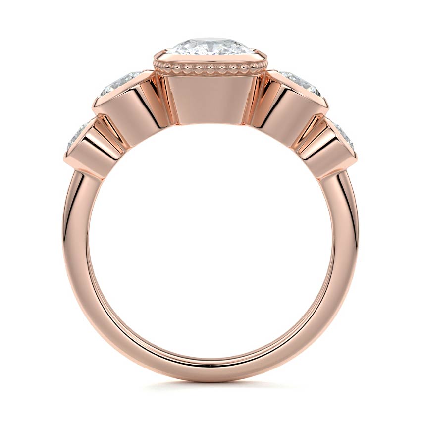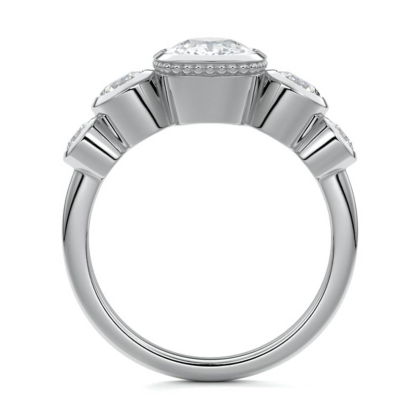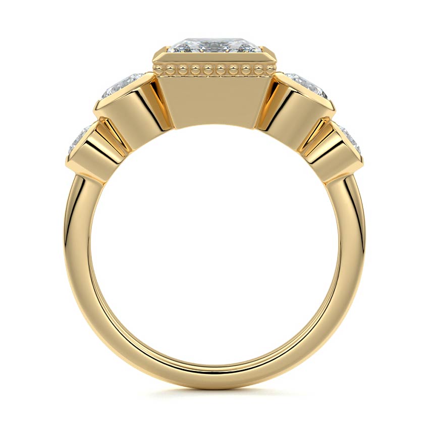 This setting is a sophisticated and refined choice for those who appreciate the combination of classic design elements with intricate detailing. It offers a timeless and elegant look that can hold special meaning with the choice of gemstones and metal, making it a cherished piece of jewelry.