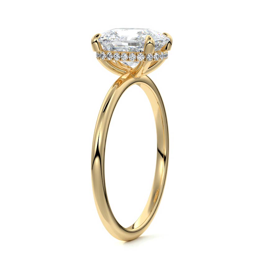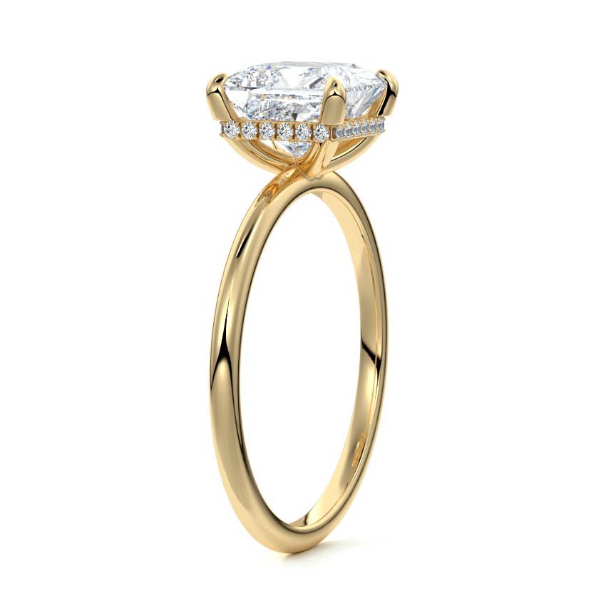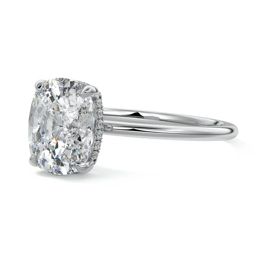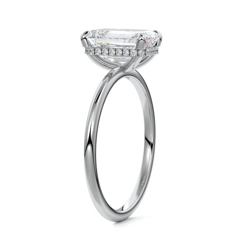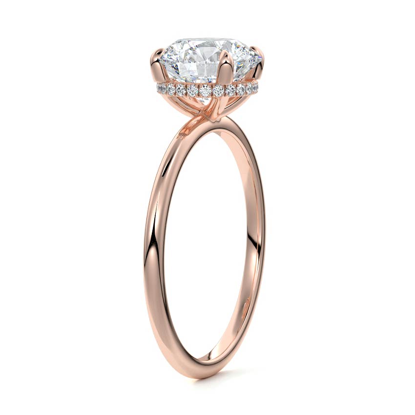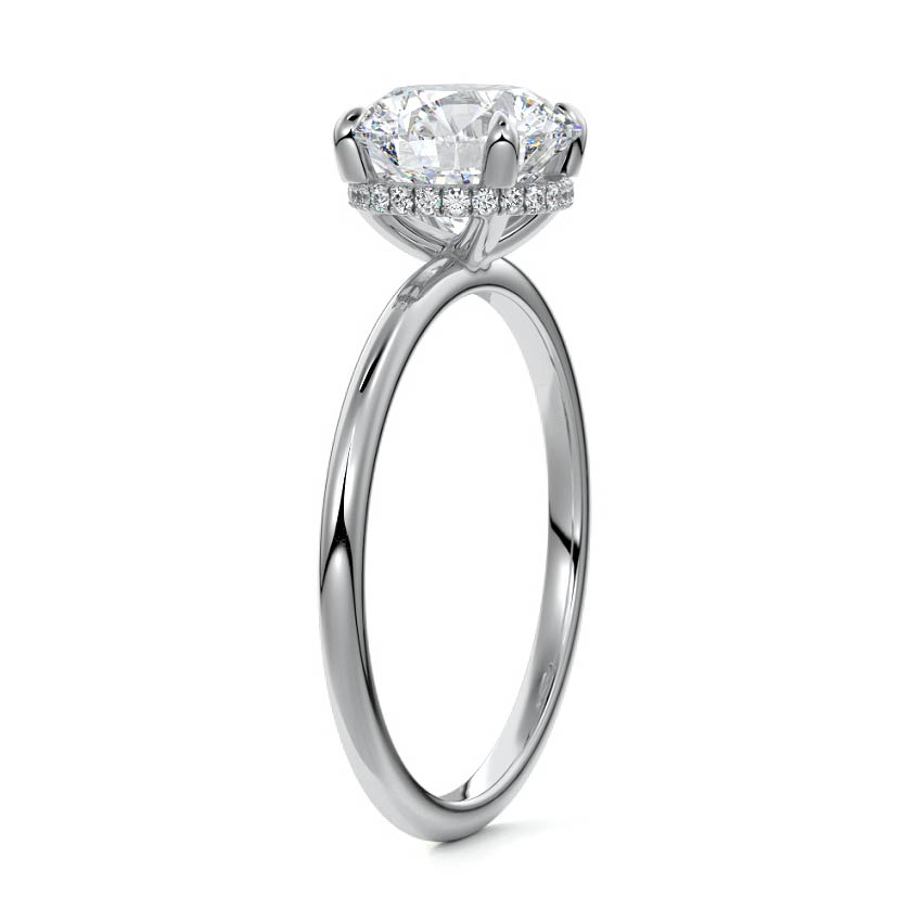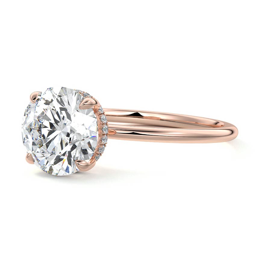 This setting offers a captivating and modern choice. It seamlessly blends the enduring elegance of a solitaire setting with the added allure of a hidden halo that gracefully encircles the prongs on the outside. The result is a truly mesmerizing and unforgettable piece of jewelry.