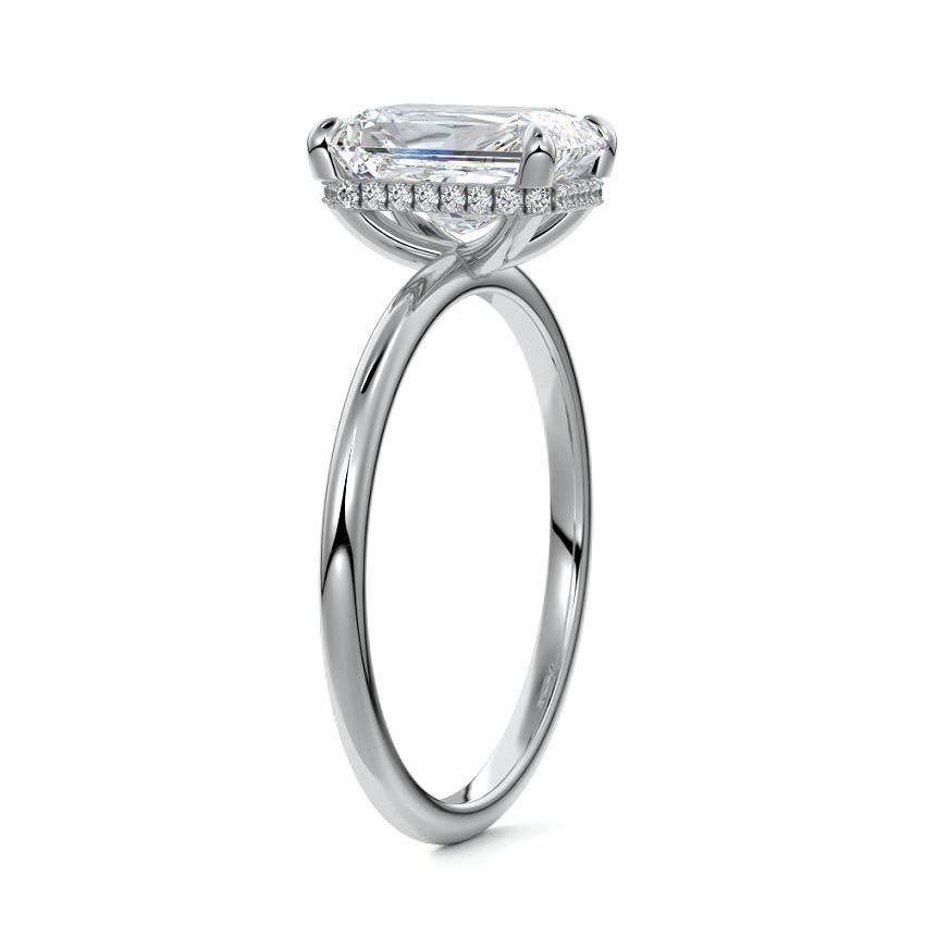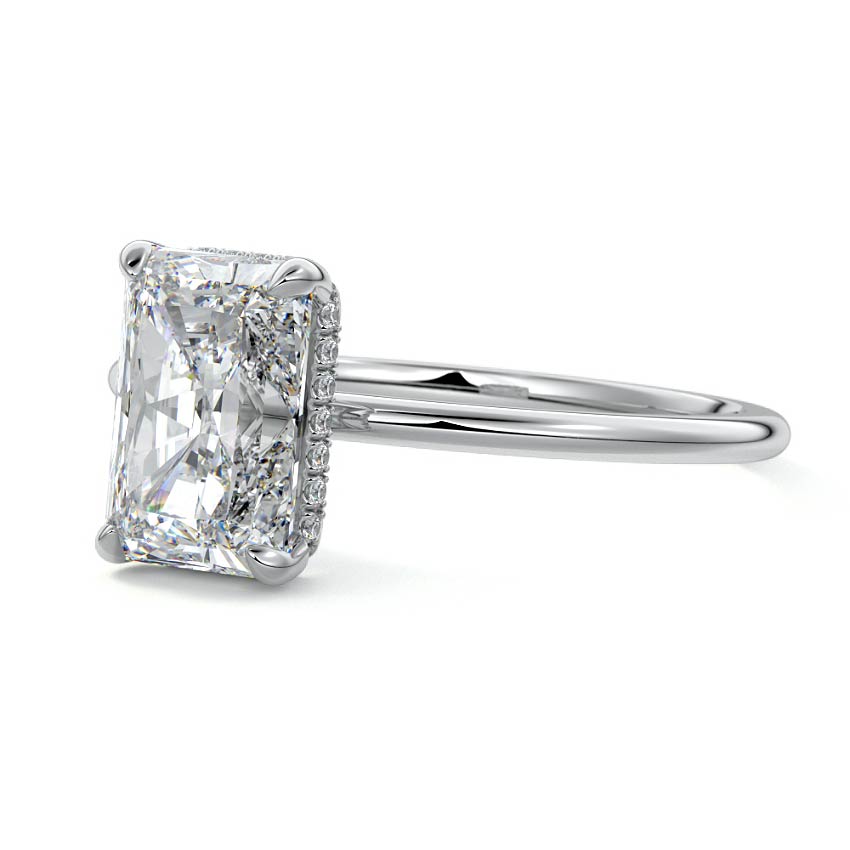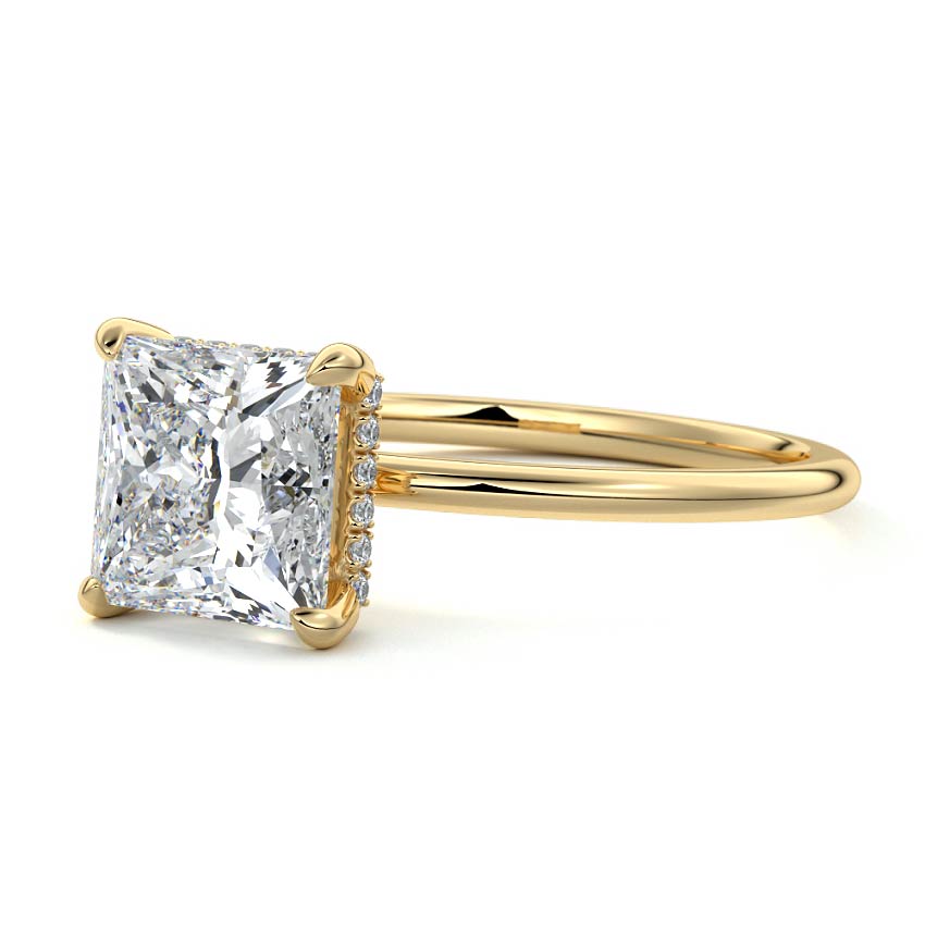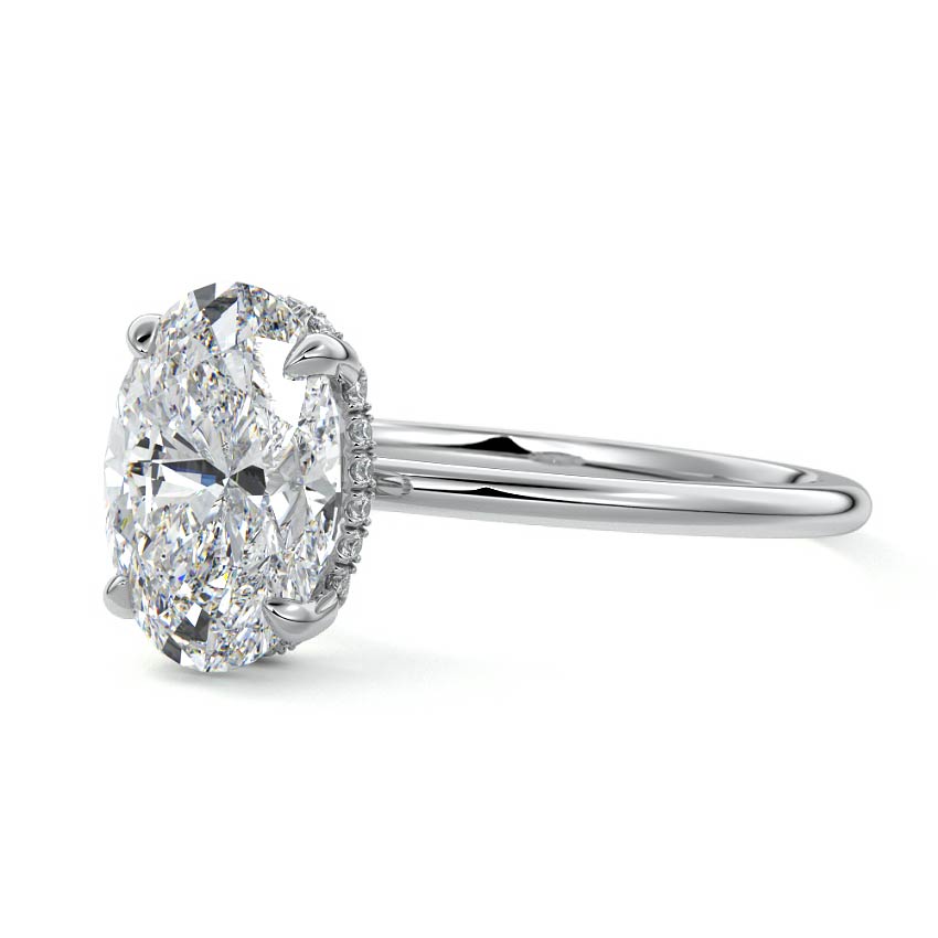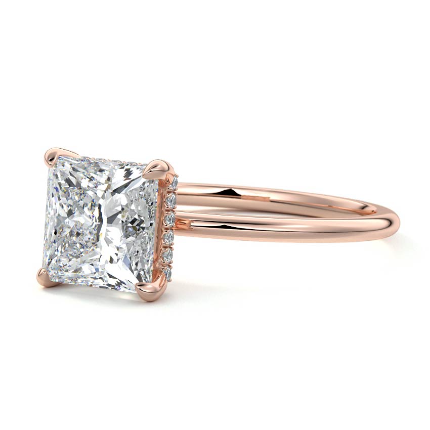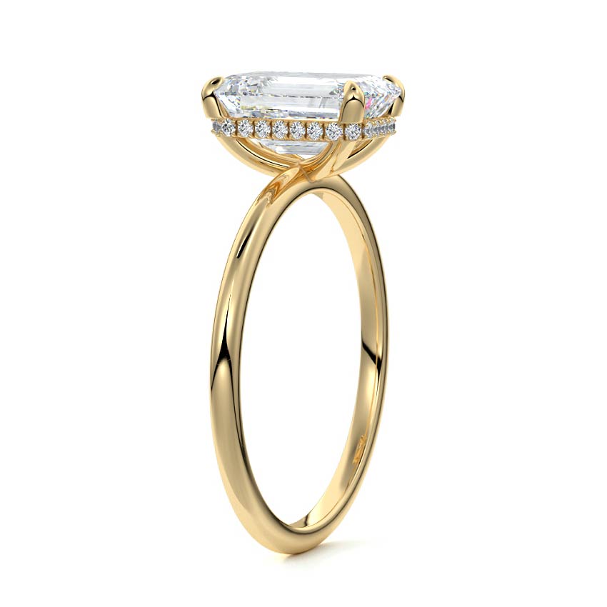 This setting offers a captivating and modern choice. It seamlessly blends the enduring elegance of a solitaire setting with the added allure of a hidden halo that gracefully encircles the prongs on the outside. The result is a truly mesmerizing and unforgettable piece of jewelry.