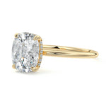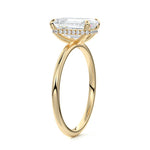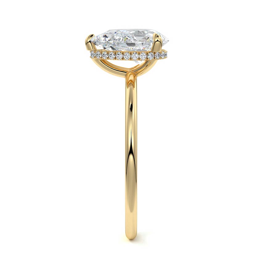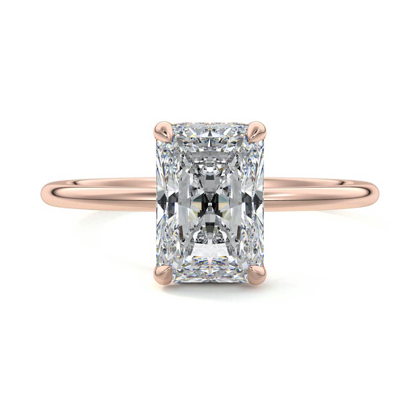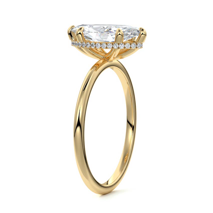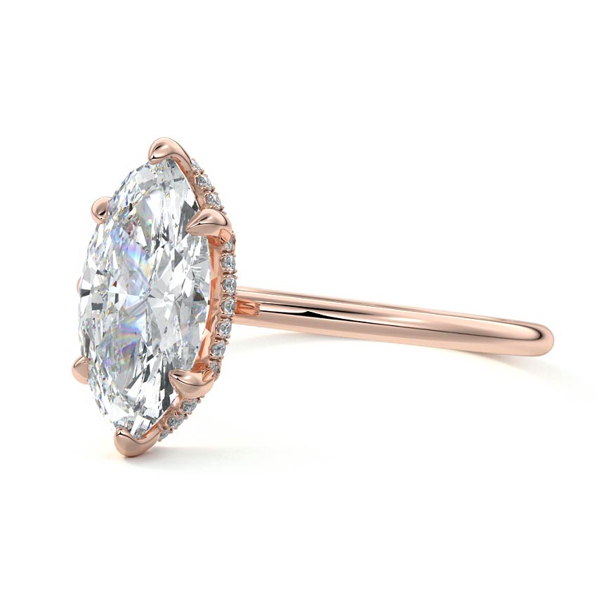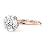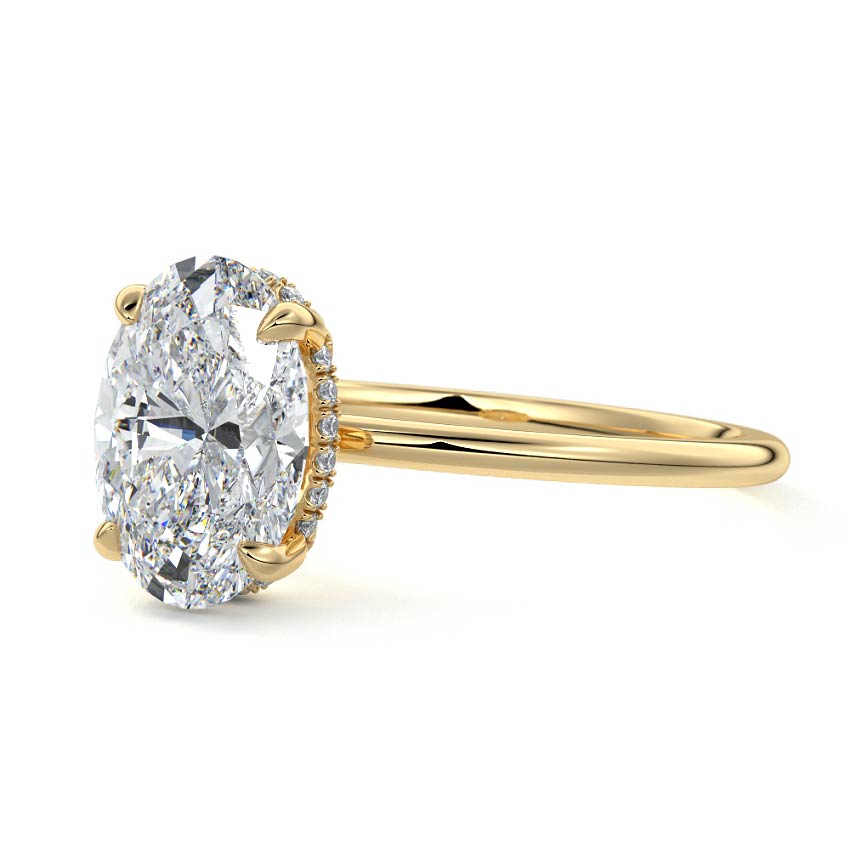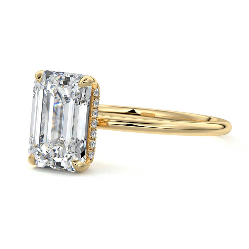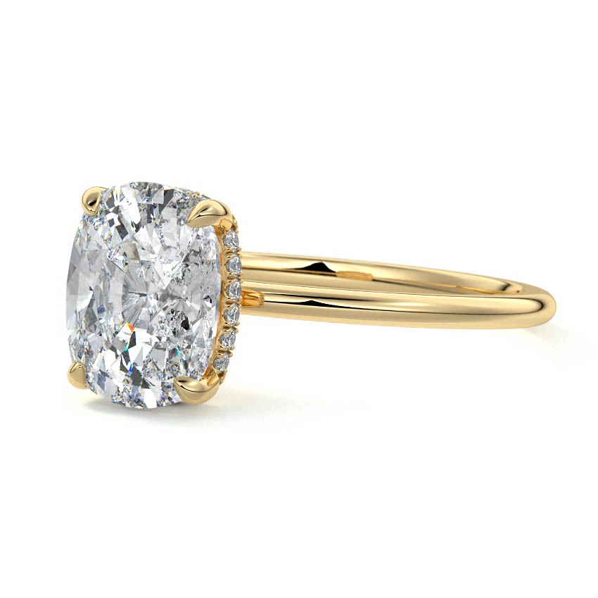 This setting offers a captivating and modern choice. It seamlessly blends the enduring elegance of a solitaire setting with the added allure of a hidden halo that gracefully encircles the prongs on the outside. The result is a truly mesmerizing and unforgettable piece of jewelry.