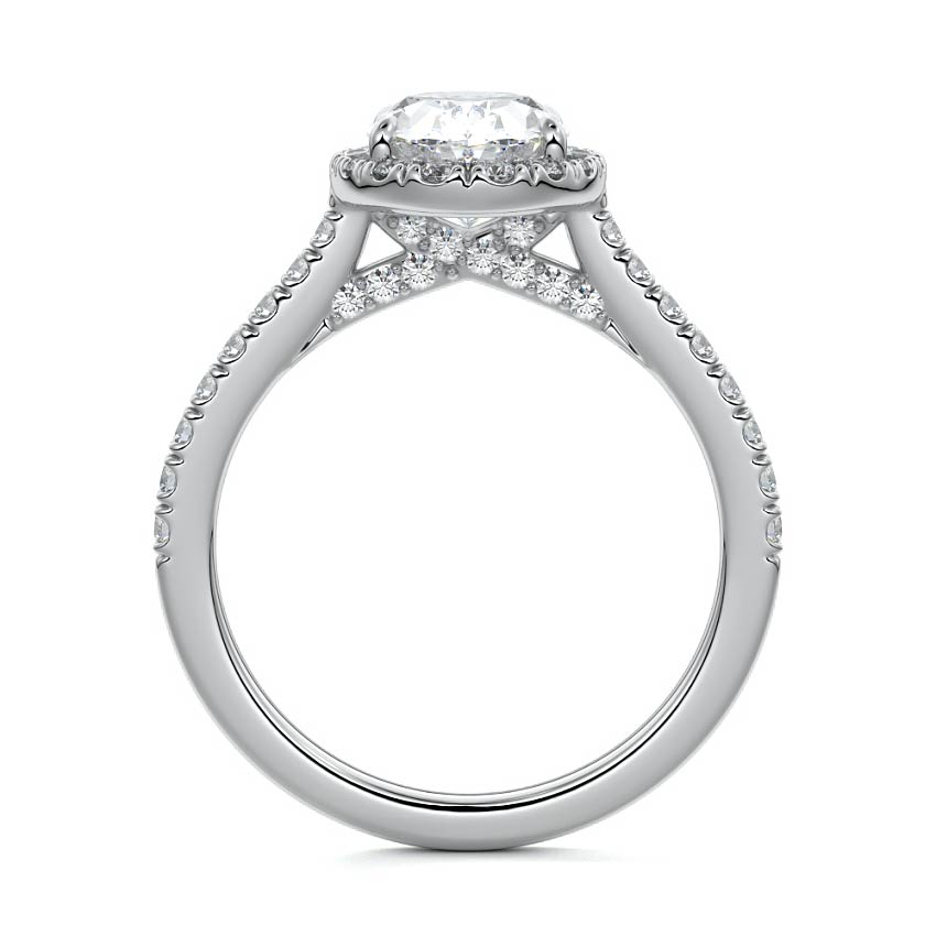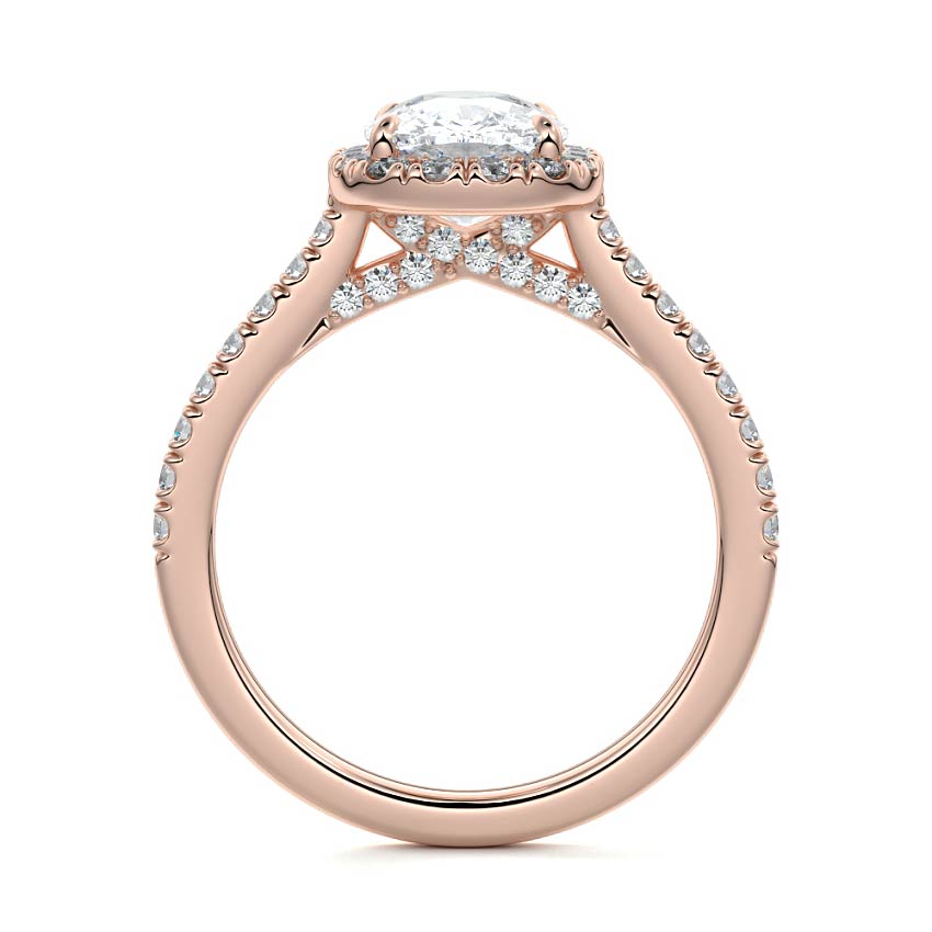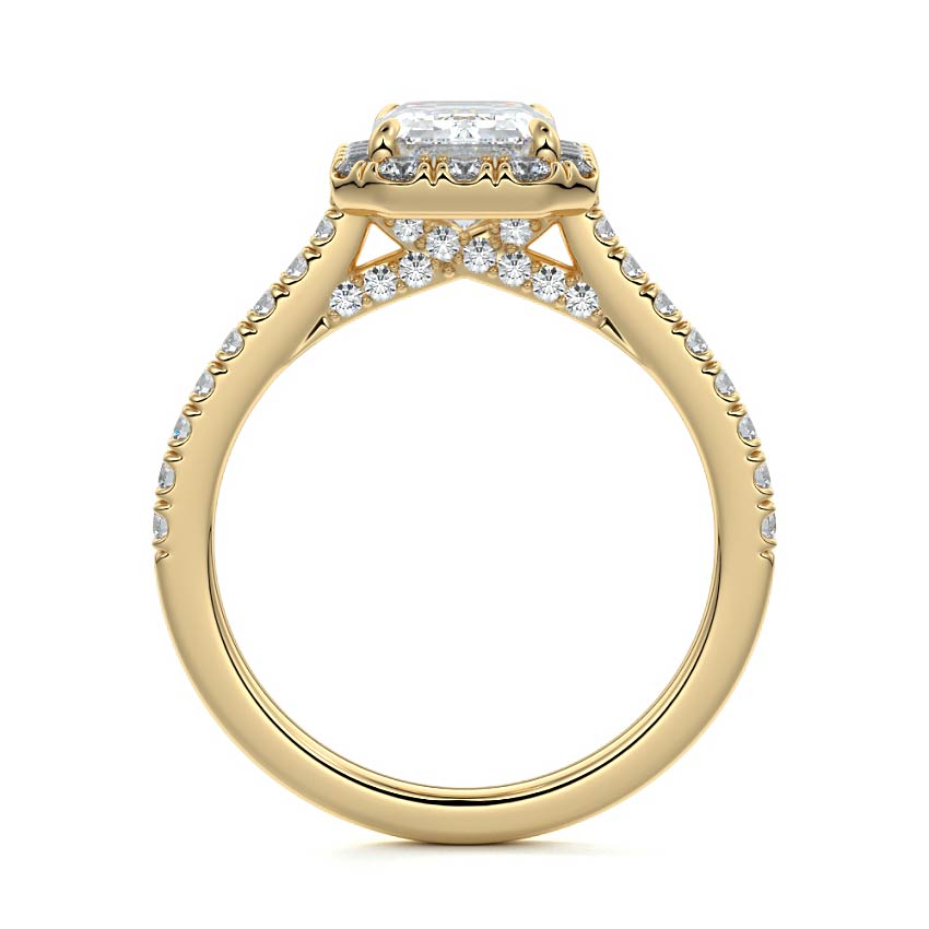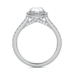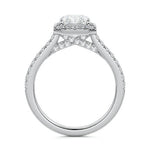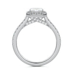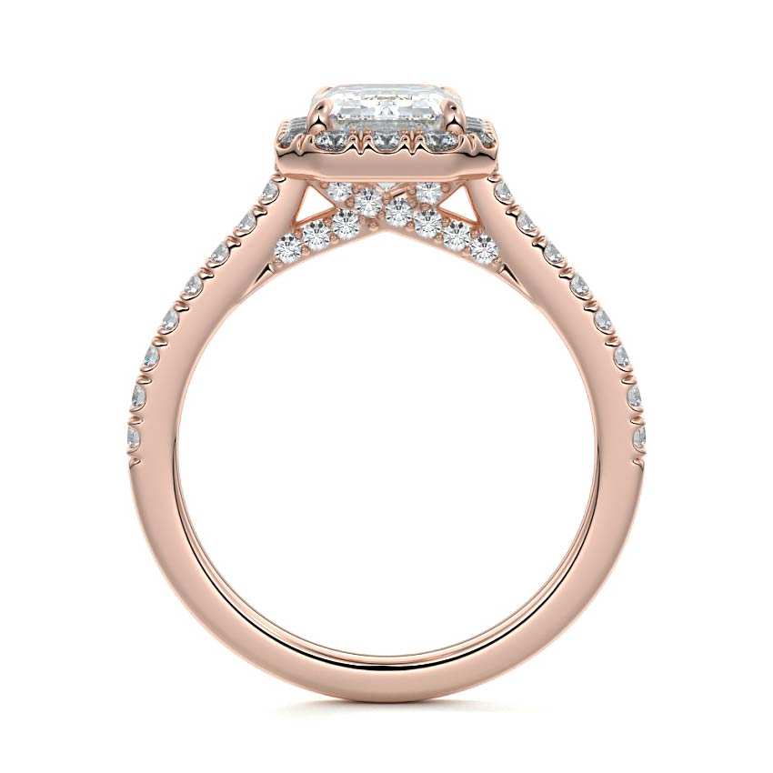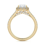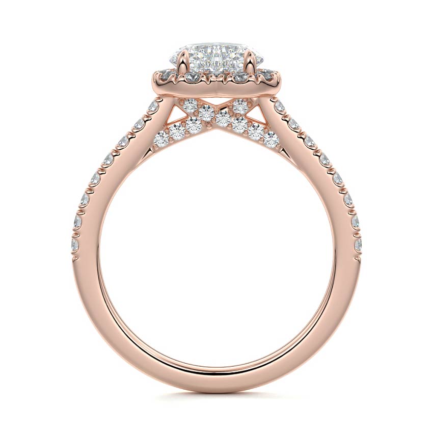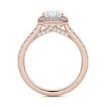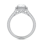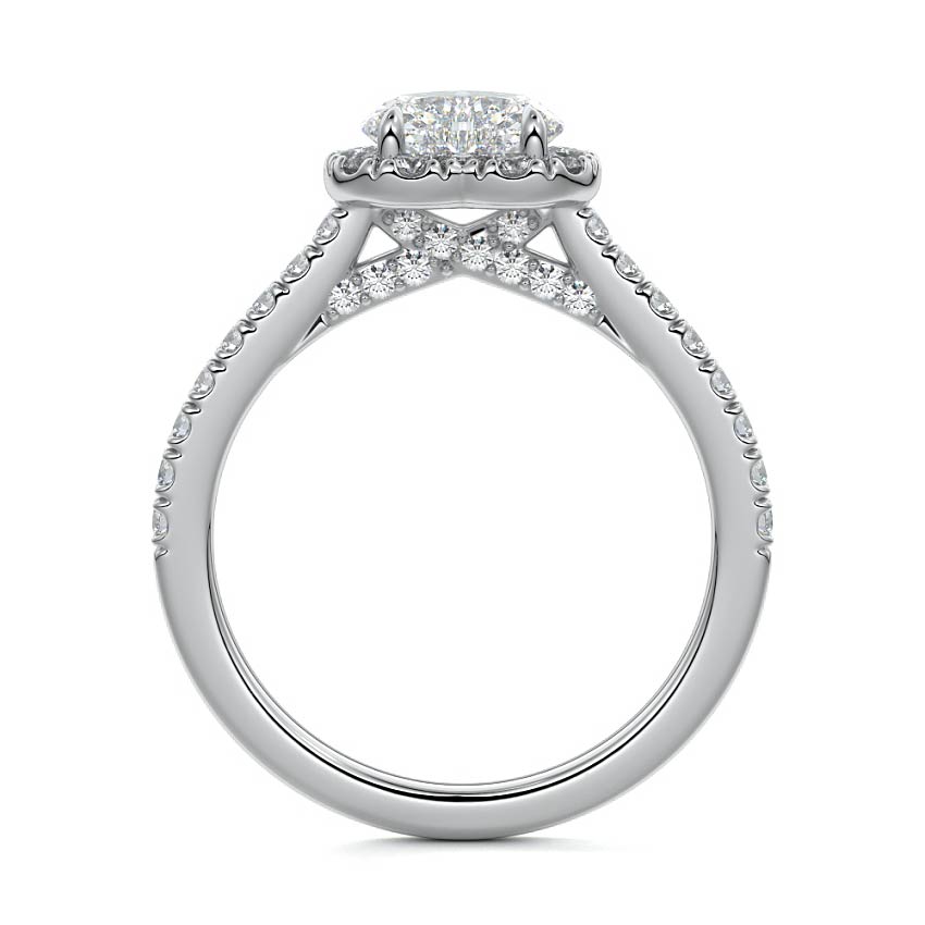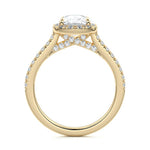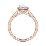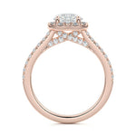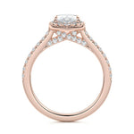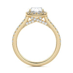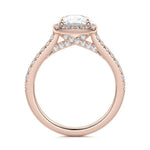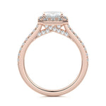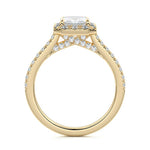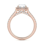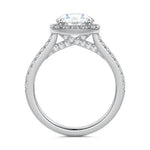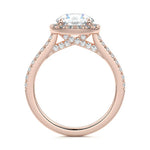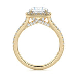 Elena is a breathtaking and intricately designed engagement ring that combines classic elegance with stunning details. The halo setting enhances the center stone's size and sparkle, making it appear even more impressive and eye-catching. What sets this ring apart is the diamond cross under gallery, symbolizing the unity and strength of a couple's bond.