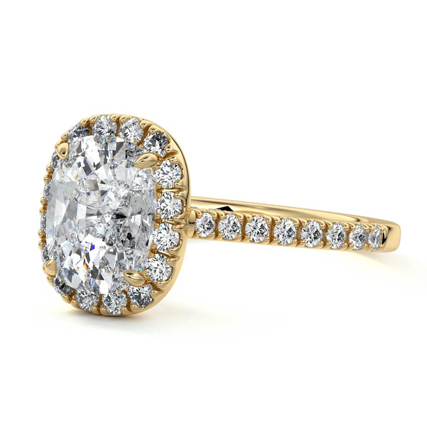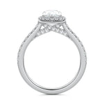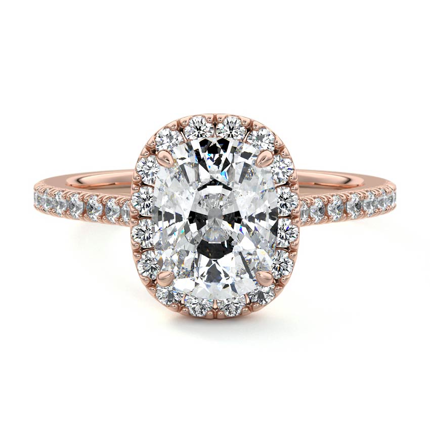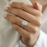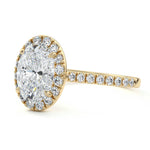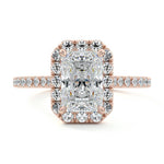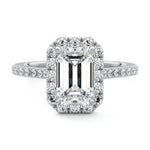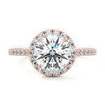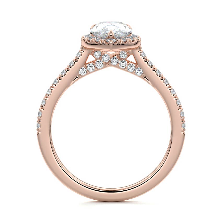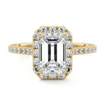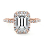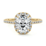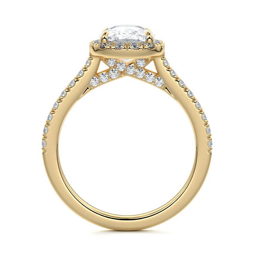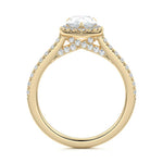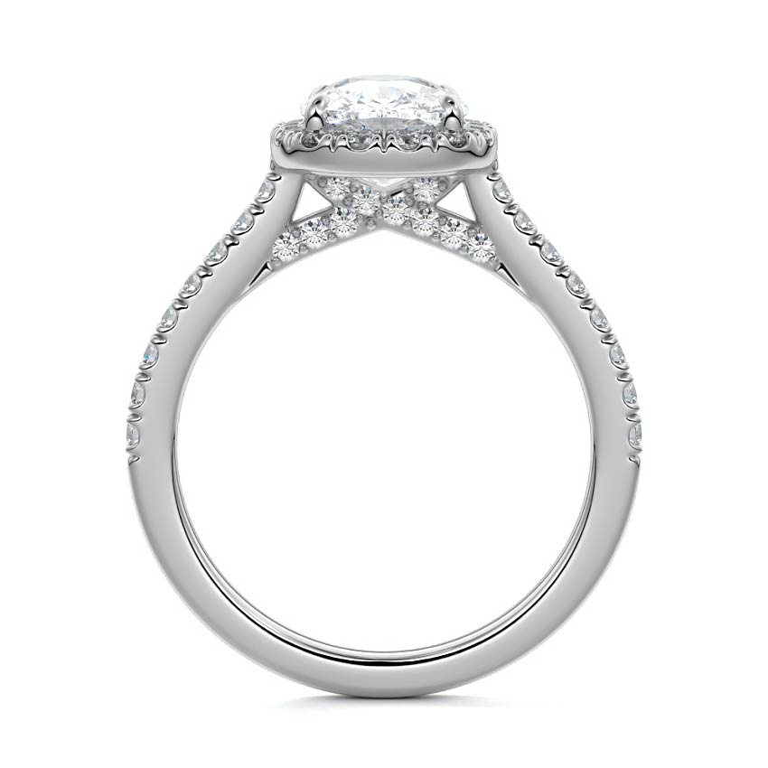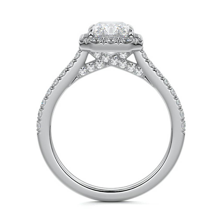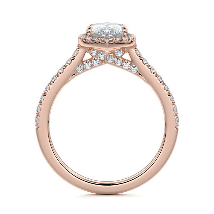 Elena is a breathtaking and intricately designed engagement ring that combines classic elegance with stunning details. The halo setting enhances the center stone's size and sparkle, making it appear even more impressive and eye-catching. What sets this ring apart is the diamond cross under gallery, symbolizing the unity and strength of a couple's bond.