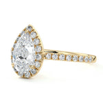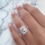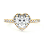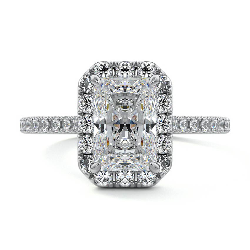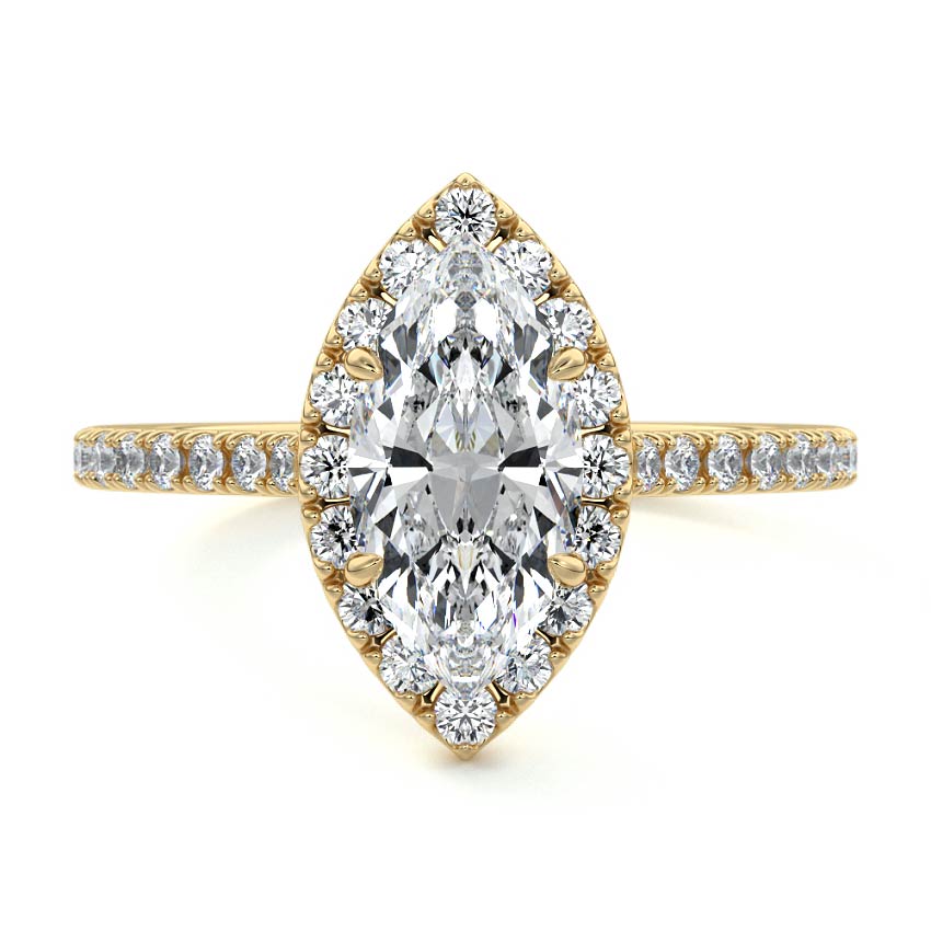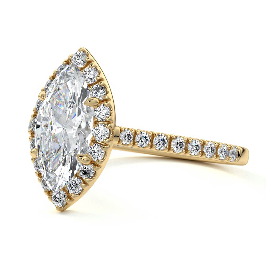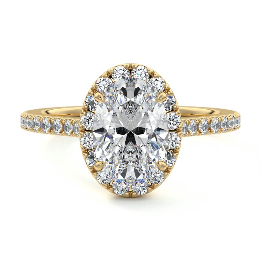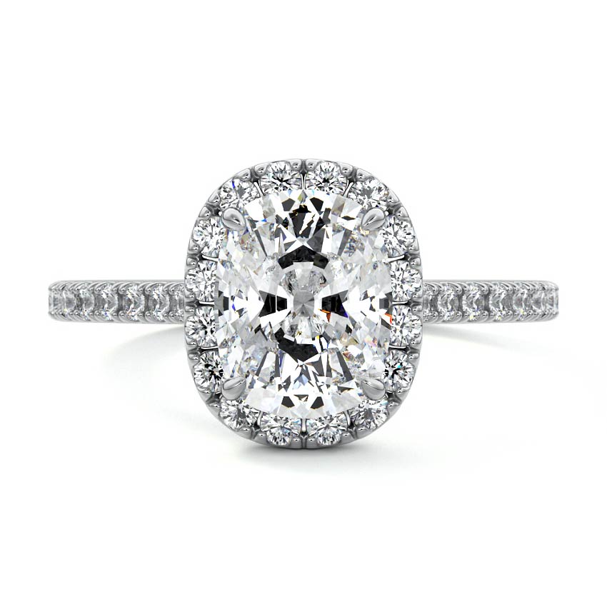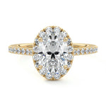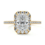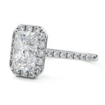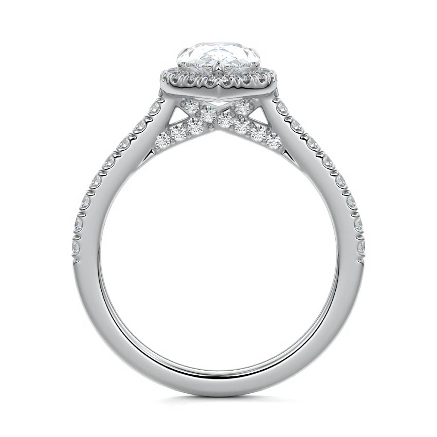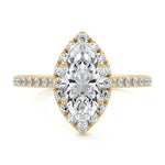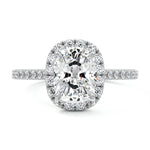 Elena is a breathtaking and intricately designed engagement ring that combines classic elegance with stunning details. The halo setting enhances the center stone's size and sparkle, making it appear even more impressive and eye-catching. What sets this ring apart is the diamond cross under gallery, symbolizing the unity and strength of a couple's bond.
