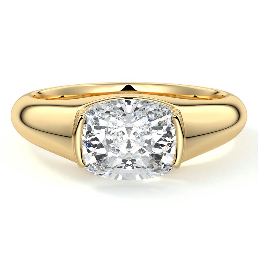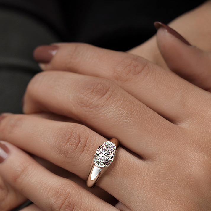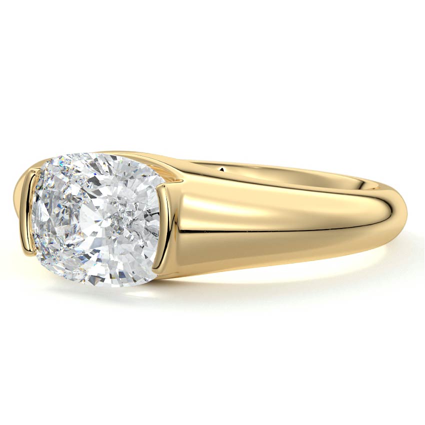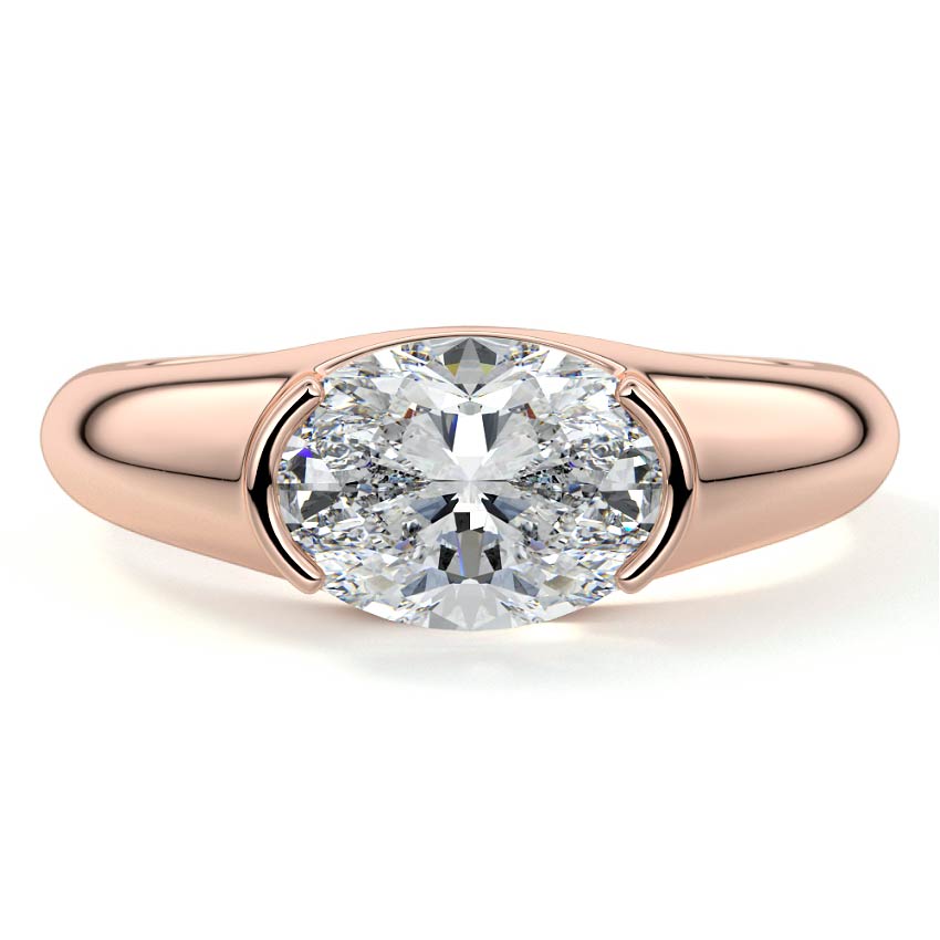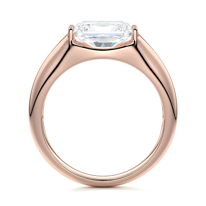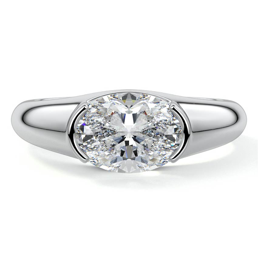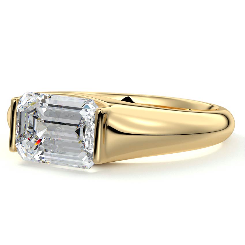 This setting with an East-to-West set center diamond is a contemporary and eye-catching choice that is perfect for those who appreciate modern design with a twist. Its half bezel setting and east-to-west orientation create a fresh and unconventional look, while the chunky band adds a touch of boldness and confidence.