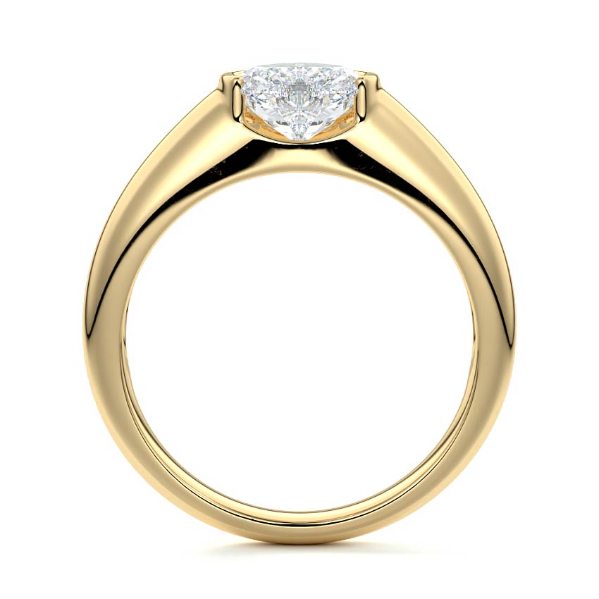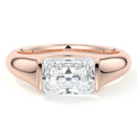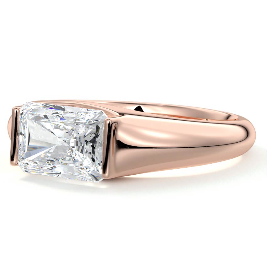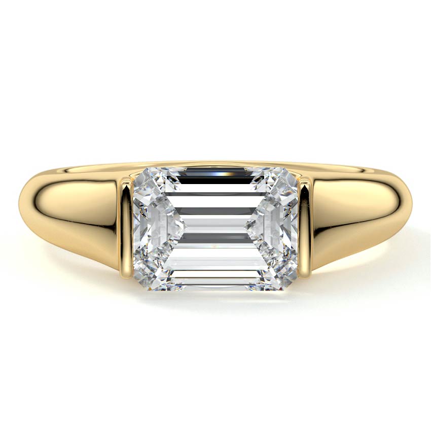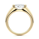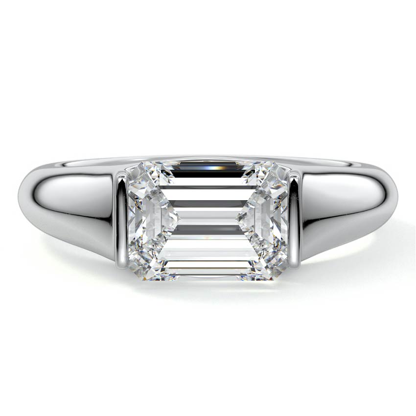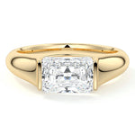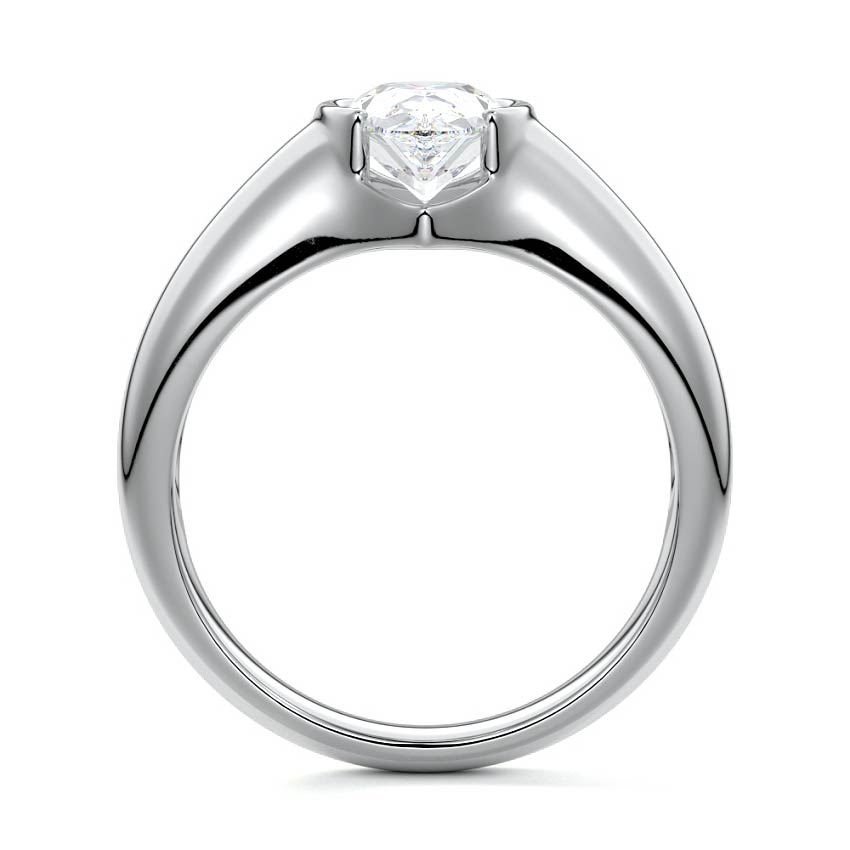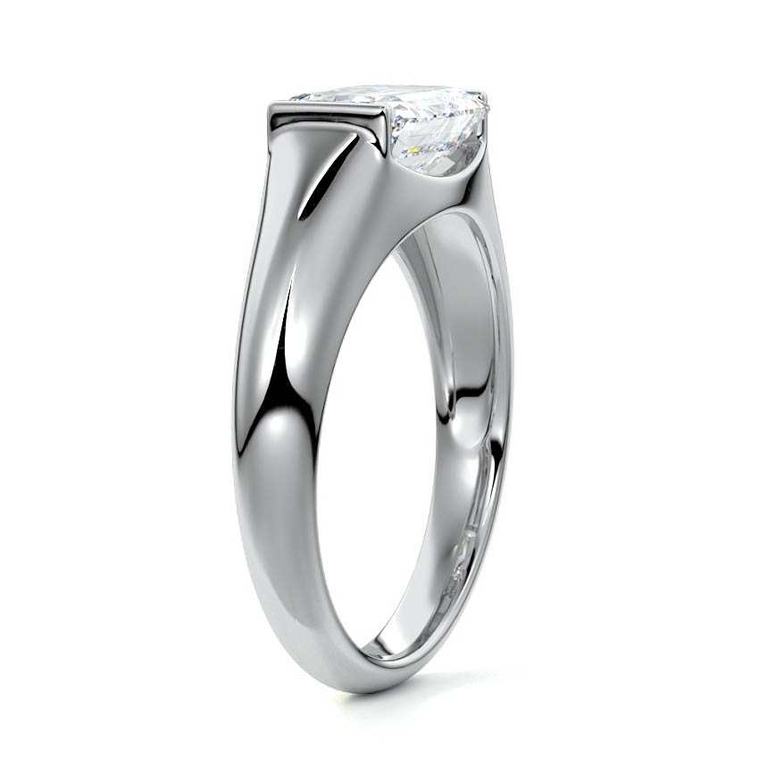 This setting with an East-to-West set center diamond is a contemporary and eye-catching choice that is perfect for those who appreciate modern design with a twist. Its half bezel setting and east-to-west orientation create a fresh and unconventional look, while the chunky band adds a touch of boldness and confidence.