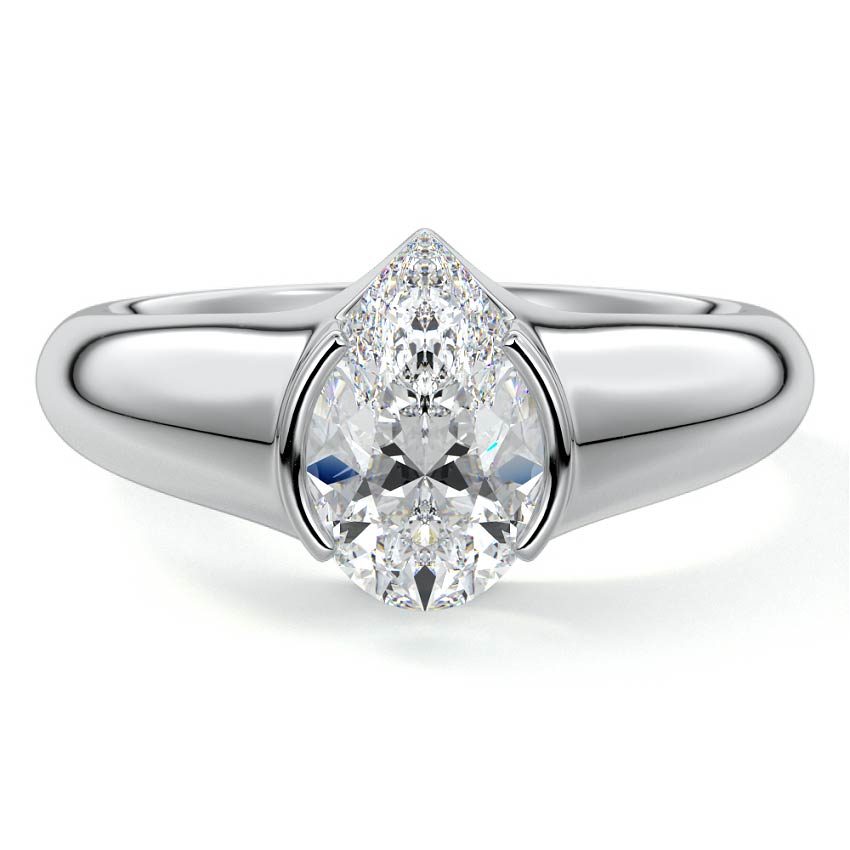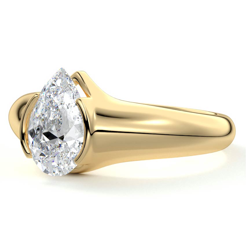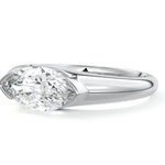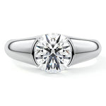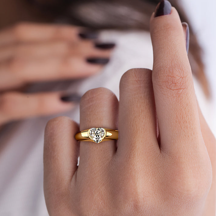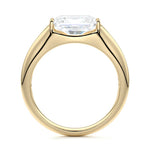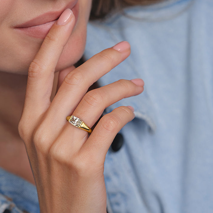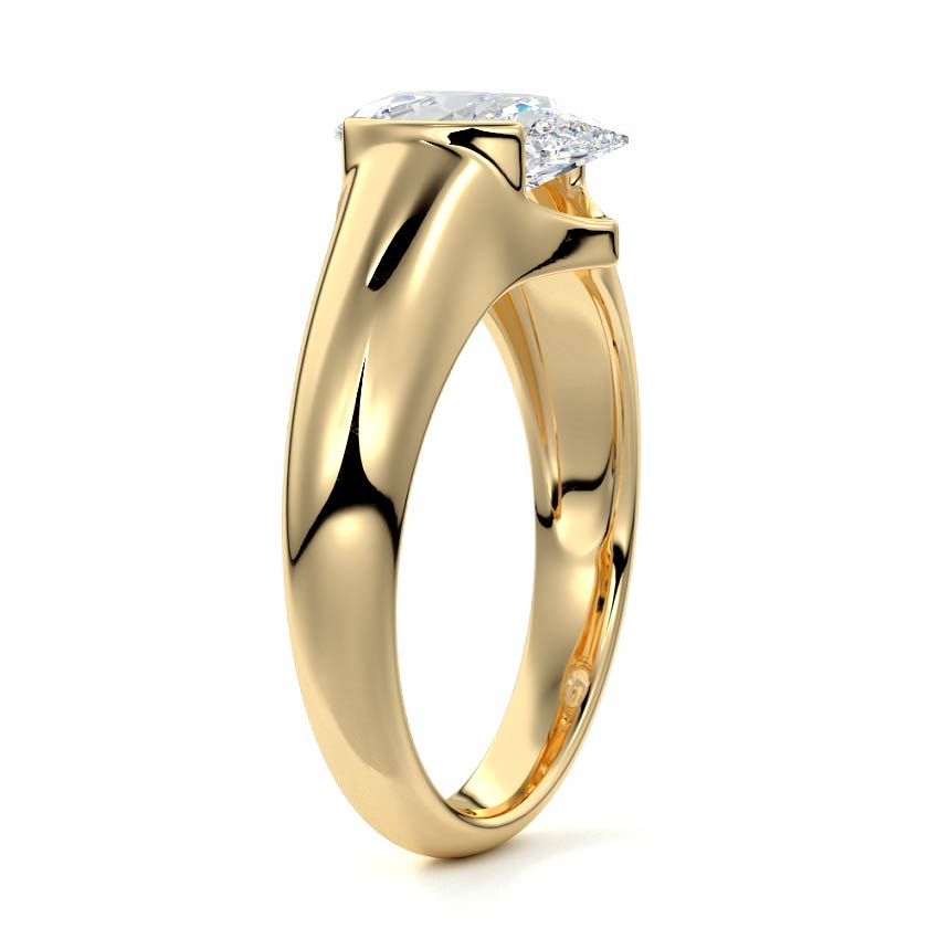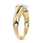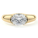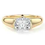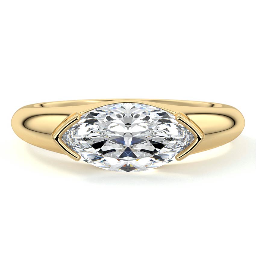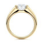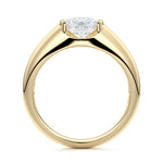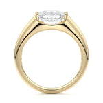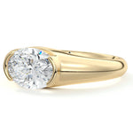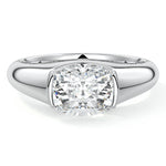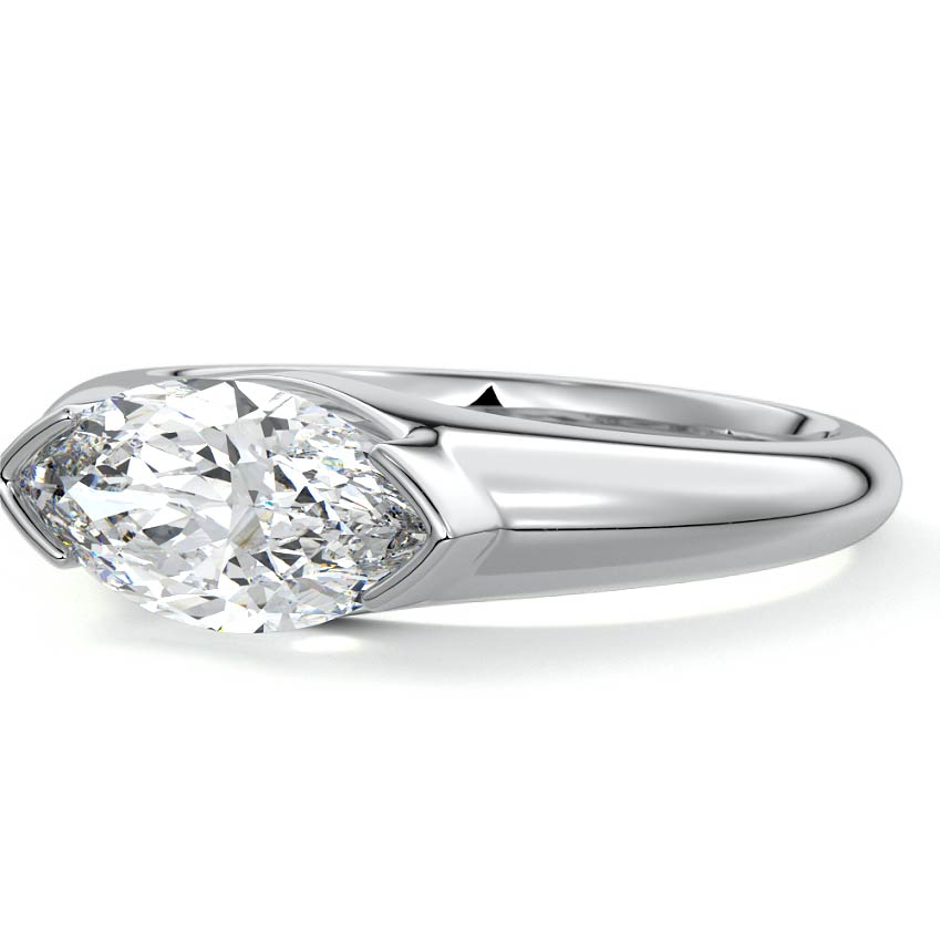 This setting with an East-to-West set center diamond is a contemporary and eye-catching choice that is perfect for those who appreciate modern design with a twist. Its half bezel setting and east-to-west orientation create a fresh and unconventional look, while the chunky band adds a touch of boldness and confidence.