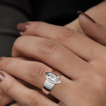 This setting offers a charming twist on the timeless solitaire design. In this setting, the main gemstone takes center stage, while a subtle hidden halo of smaller accent diamonds adds a touch of discreet sparkle and elegance to the ring.