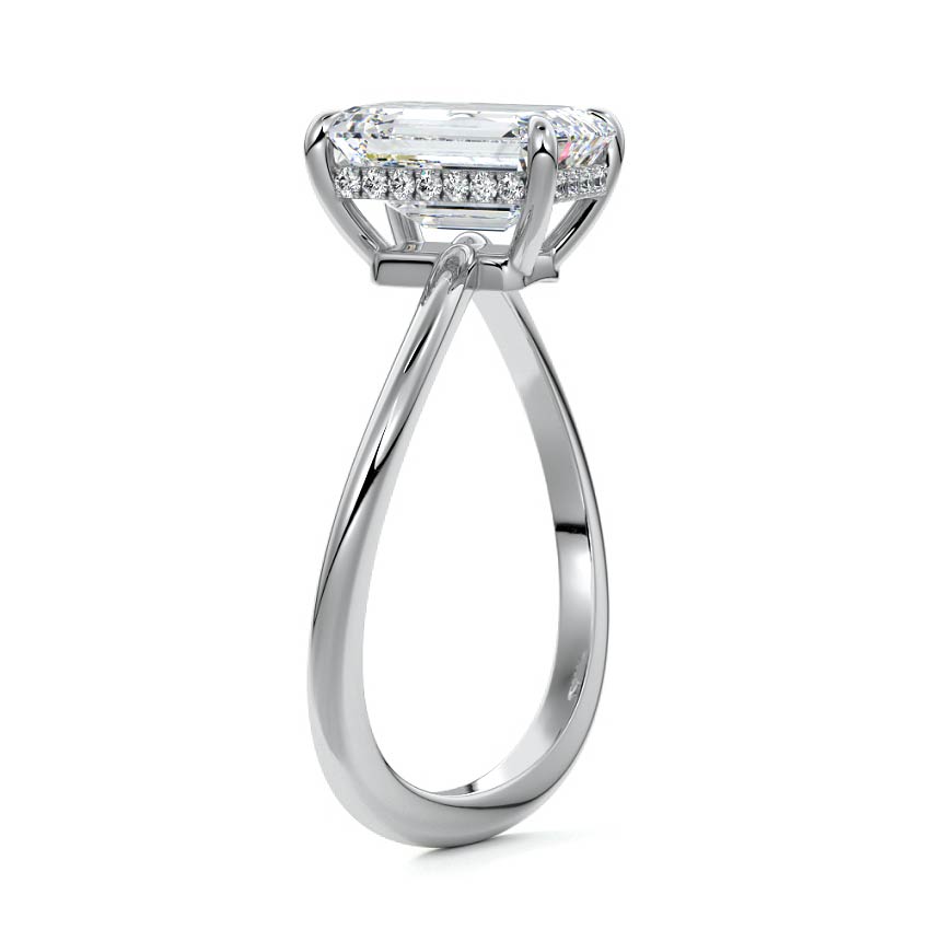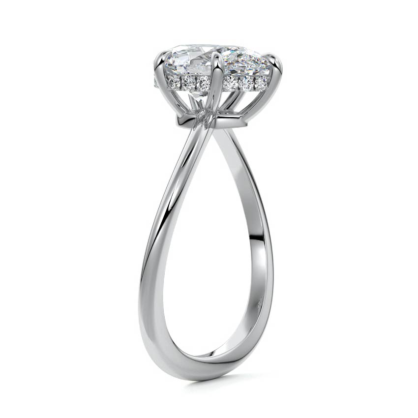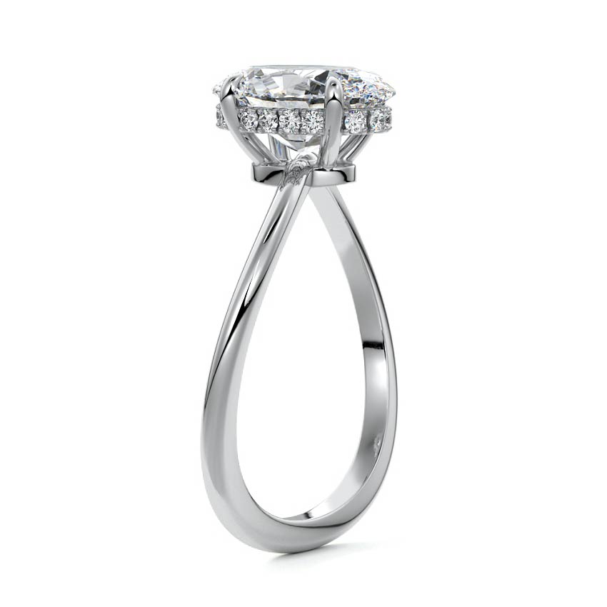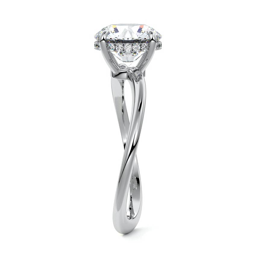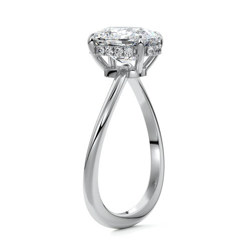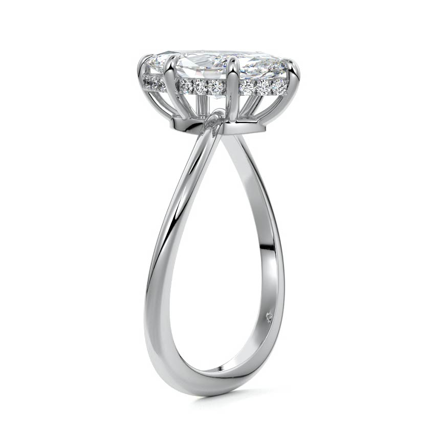 This setting is a meticulously crafted piece of jewelry, featuring a wave-shaped band and a discreet hidden halo. The band of the ring is skillfully designed with a graceful undulating shape, resembling the gentle curves of a wave. This unique design element adds a sense of fluidity and movement to the ring's overall aesthetic.