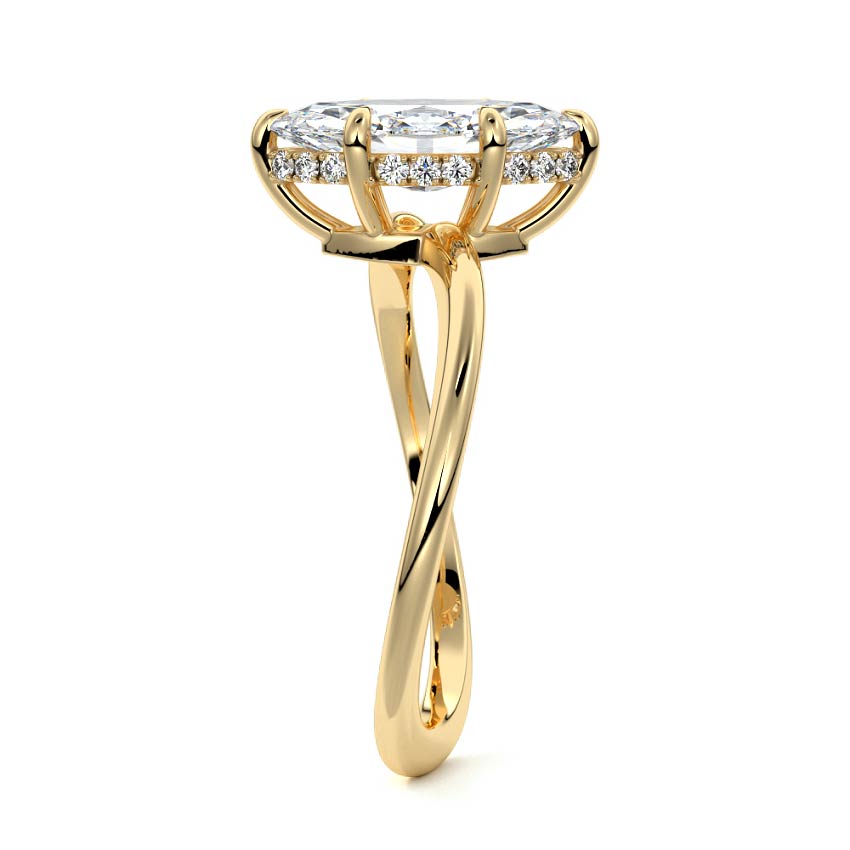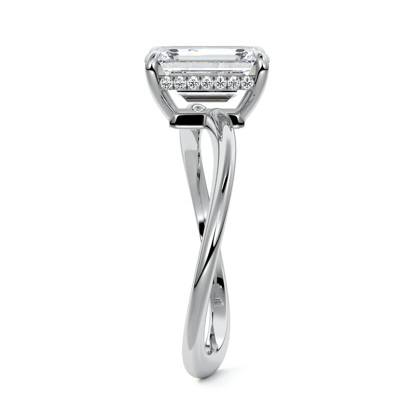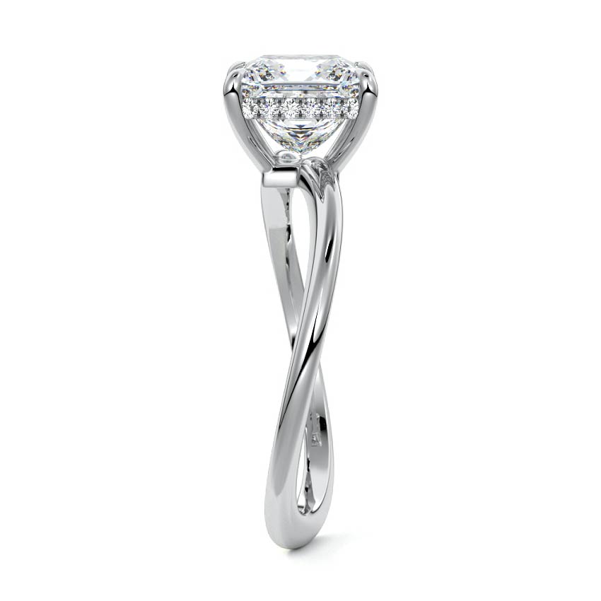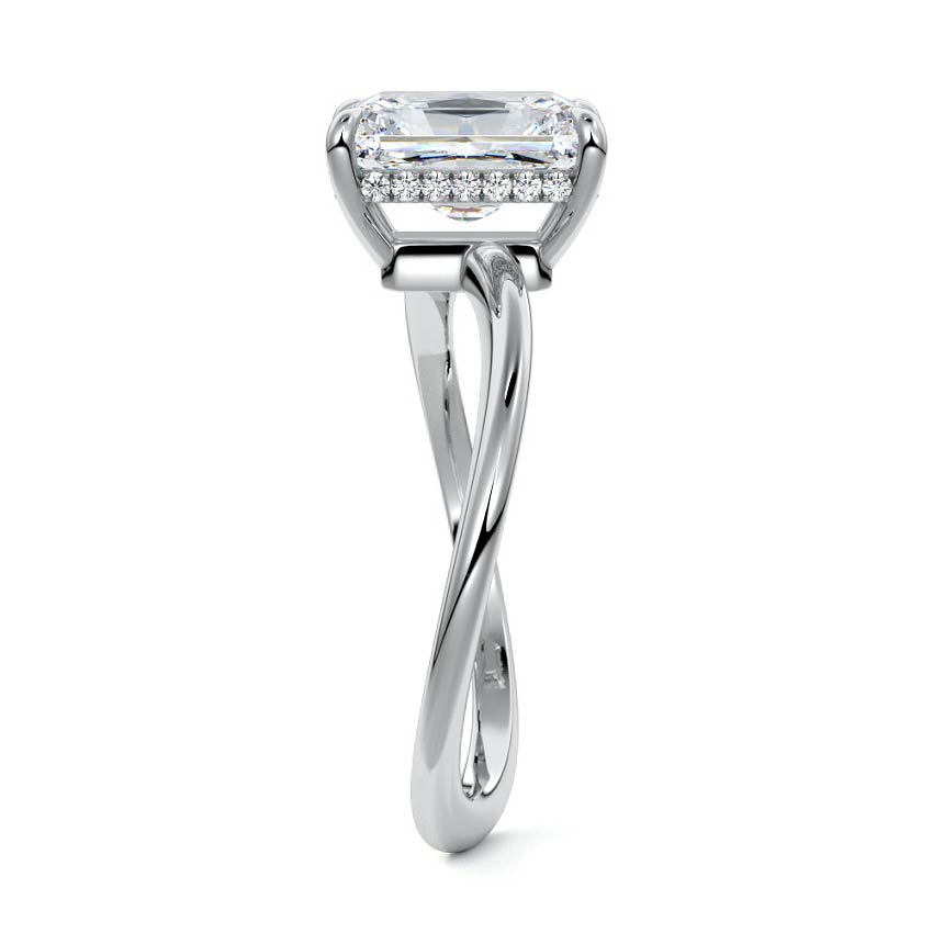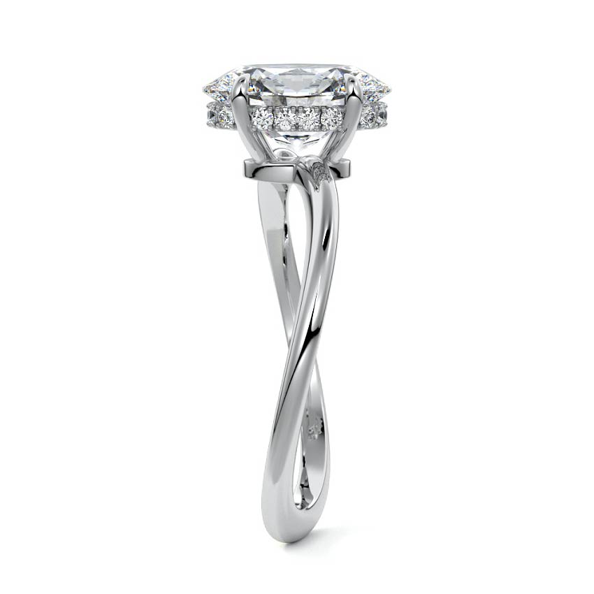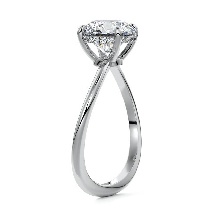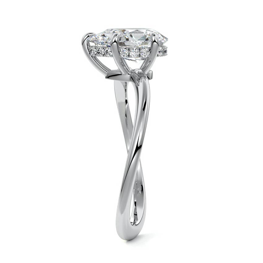 This setting is a meticulously crafted piece of jewelry, featuring a wave-shaped band and a discreet hidden halo. The band of the ring is skillfully designed with a graceful undulating shape, resembling the gentle curves of a wave. This unique design element adds a sense of fluidity and movement to the ring's overall aesthetic.