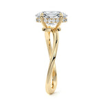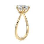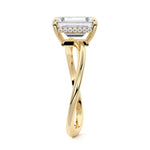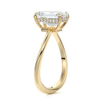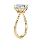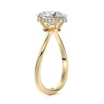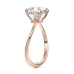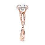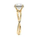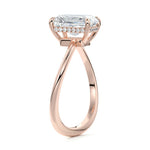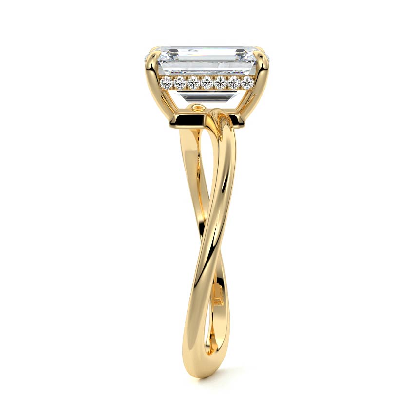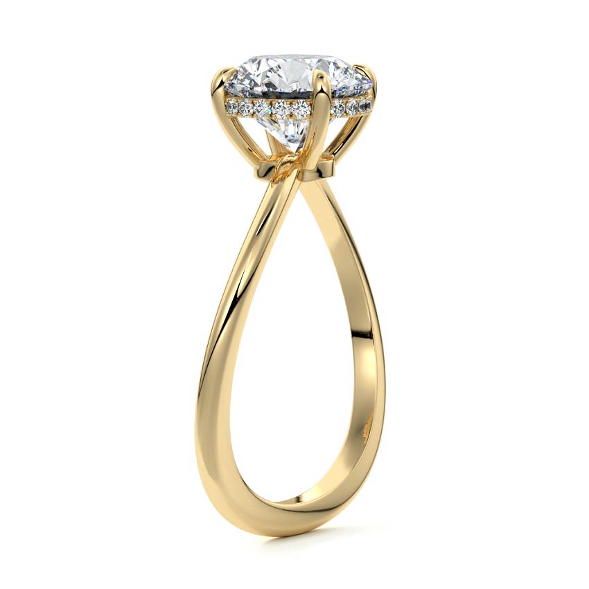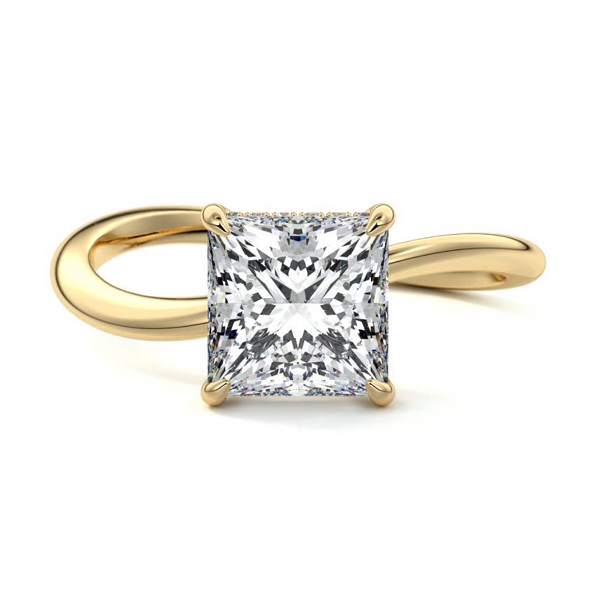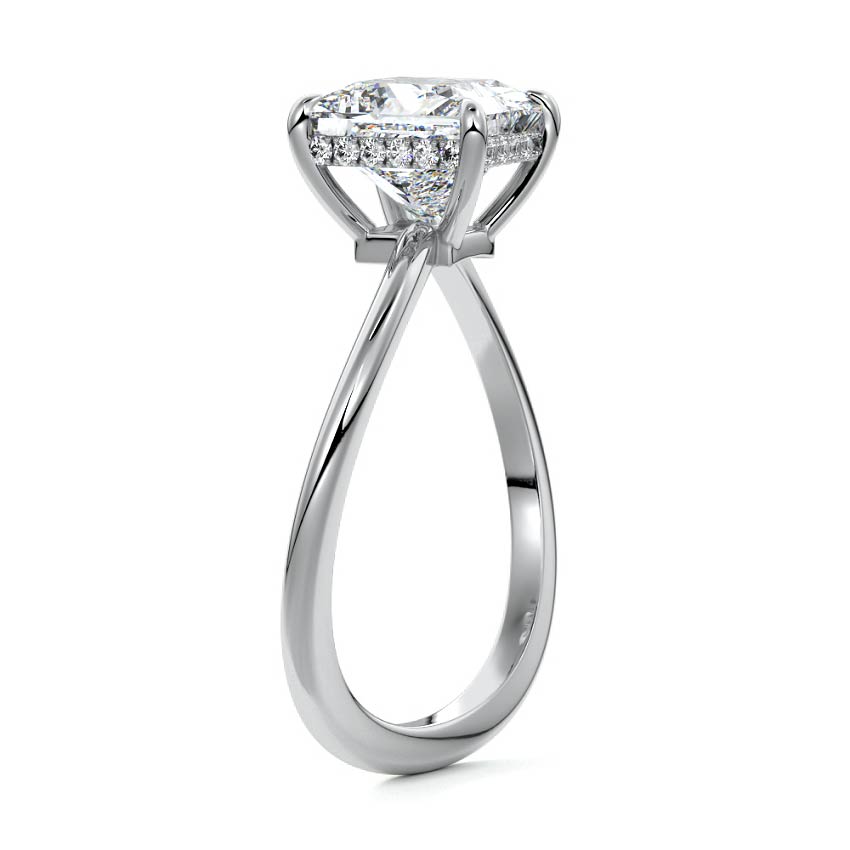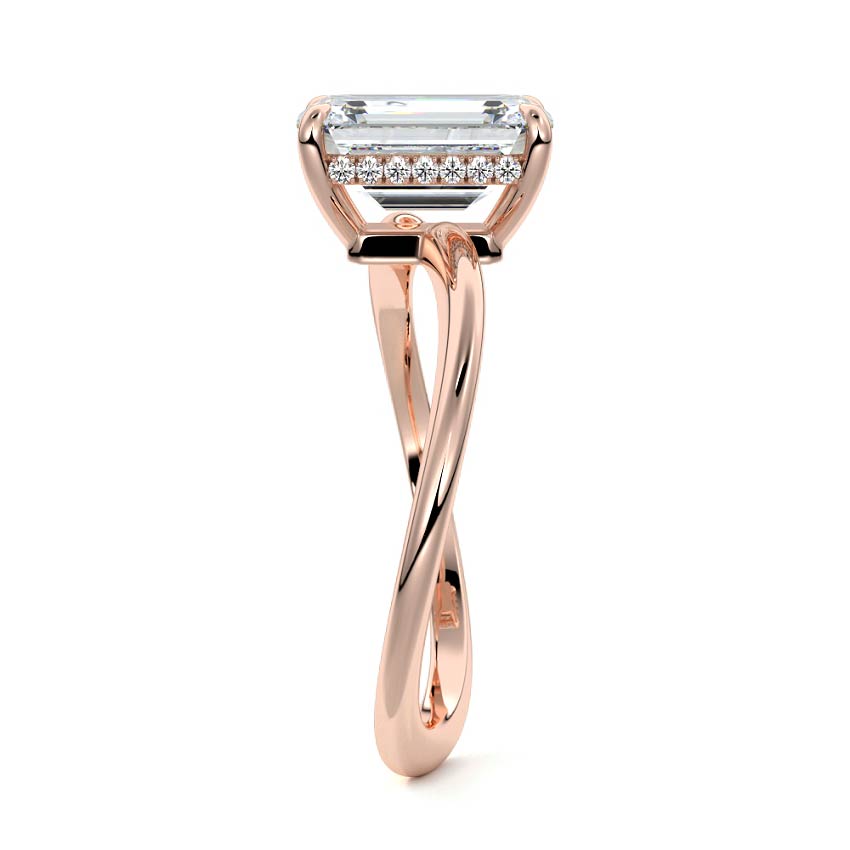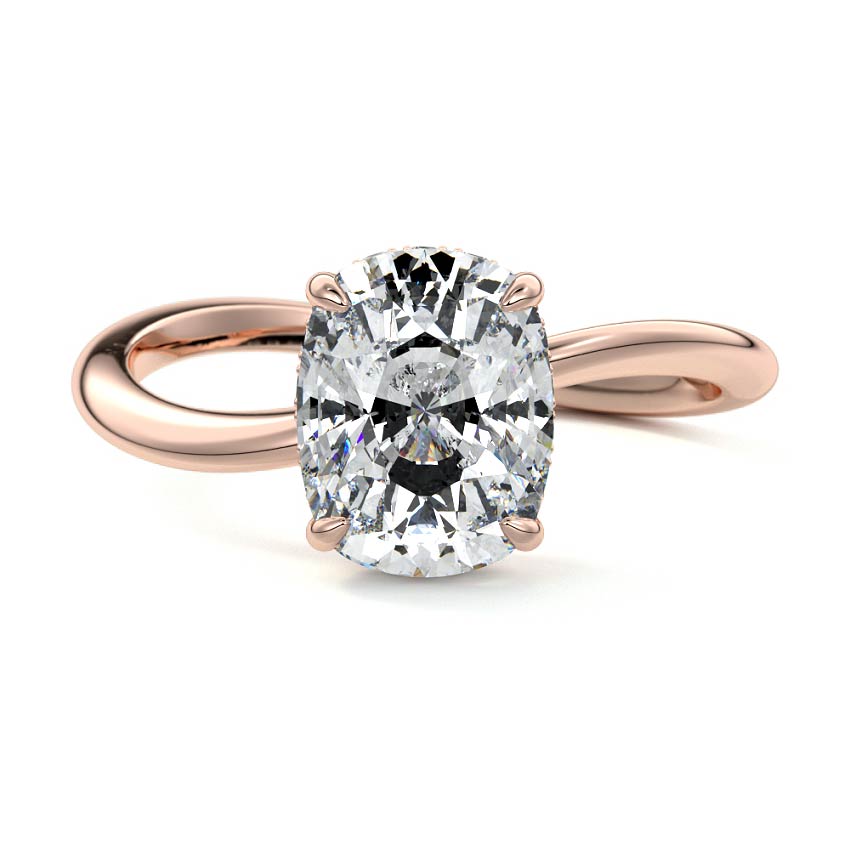 This setting is a meticulously crafted piece of jewelry, featuring a wave-shaped band and a discreet hidden halo. The band of the ring is skillfully designed with a graceful undulating shape, resembling the gentle curves of a wave. This unique design element adds a sense of fluidity and movement to the ring's overall aesthetic.