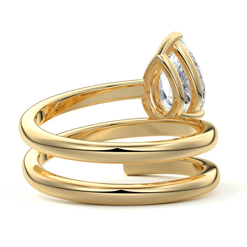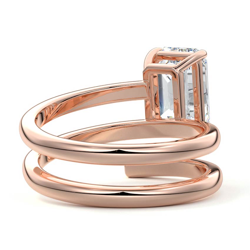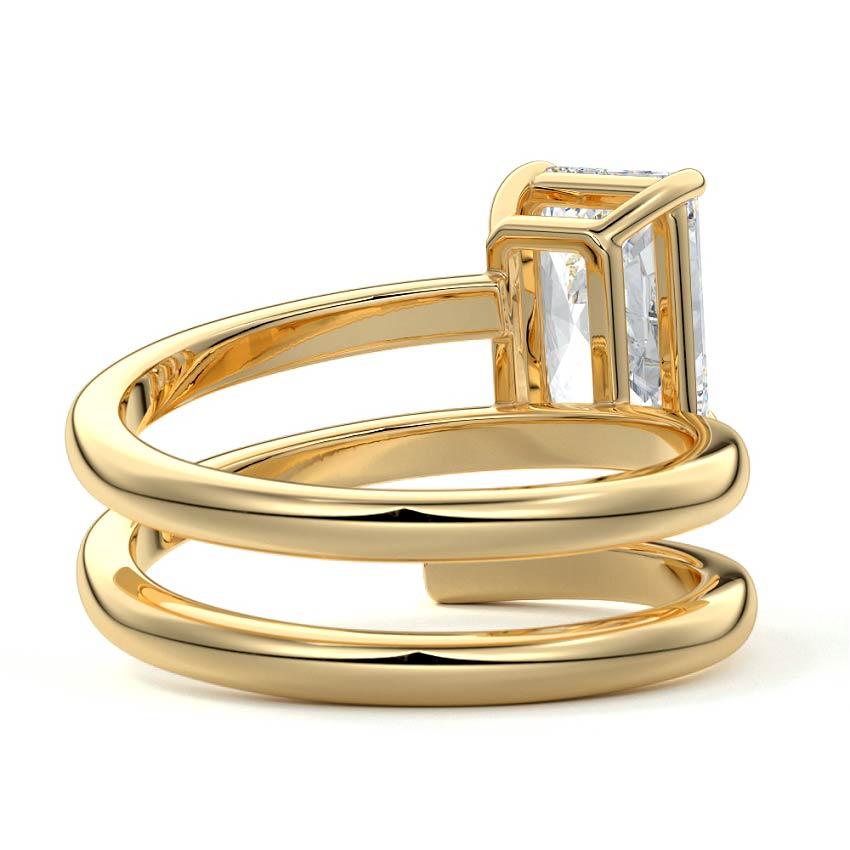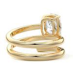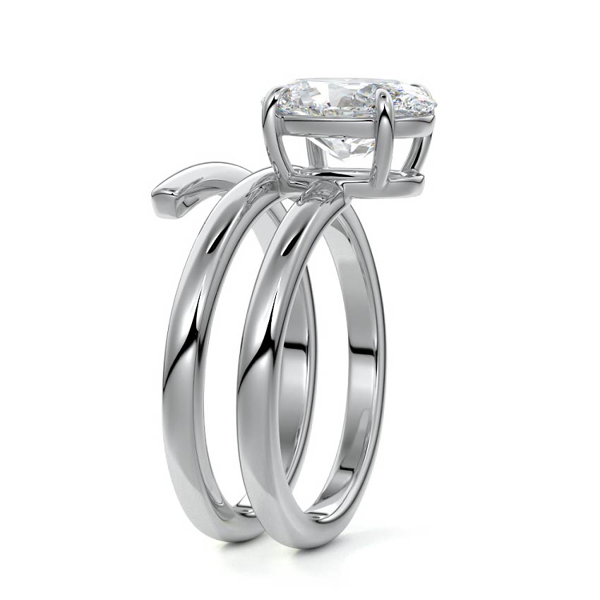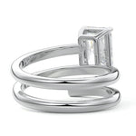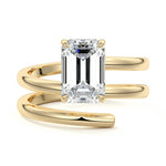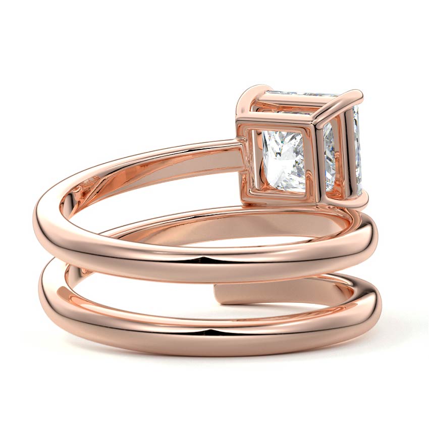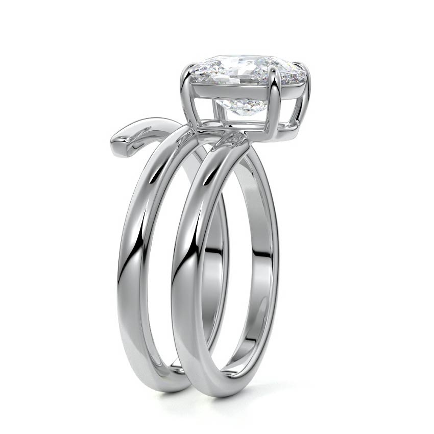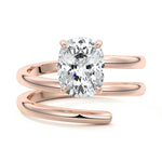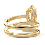 At its heart, it showcases a single, radiant gemstone cradled in a classic solitaire setting, brilliantly showcasing the gem's luminosity. Enveloping this centerpiece, a gracefully coiled band intricately winds around, imparting a distinct and captivating element to the ring's overall design.