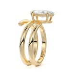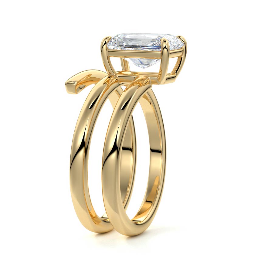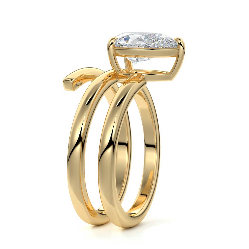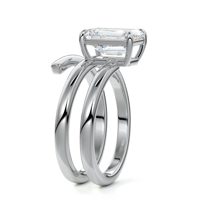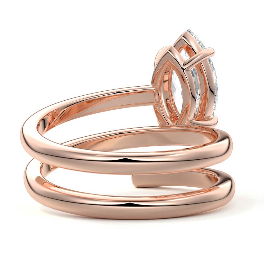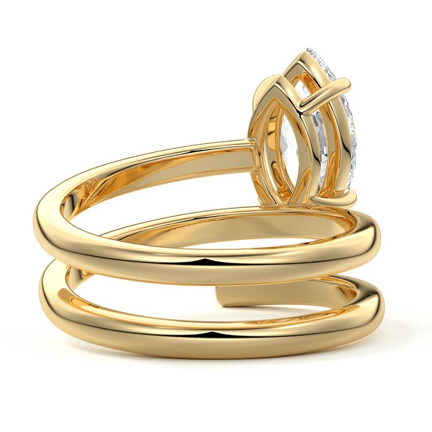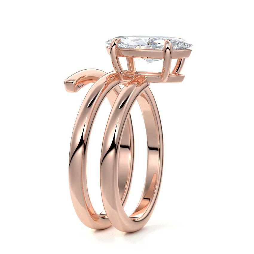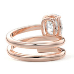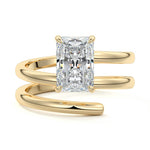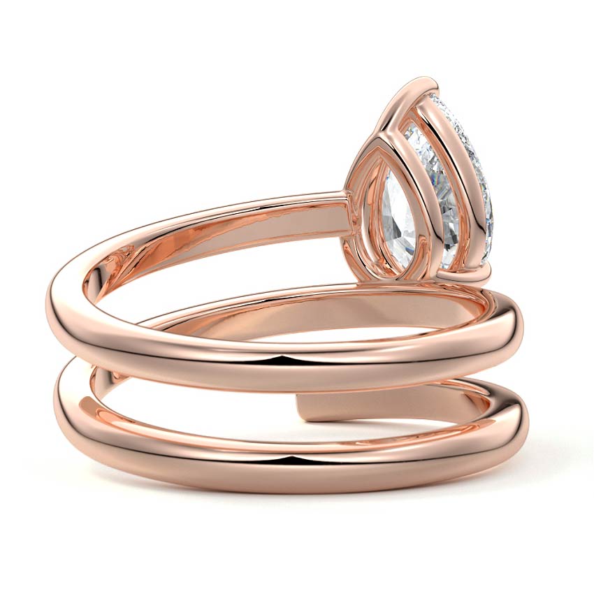 At its heart, it showcases a single, radiant gemstone cradled in a classic solitaire setting, brilliantly showcasing the gem's luminosity. Enveloping this centerpiece, a gracefully coiled band intricately winds around, imparting a distinct and captivating element to the ring's overall design.