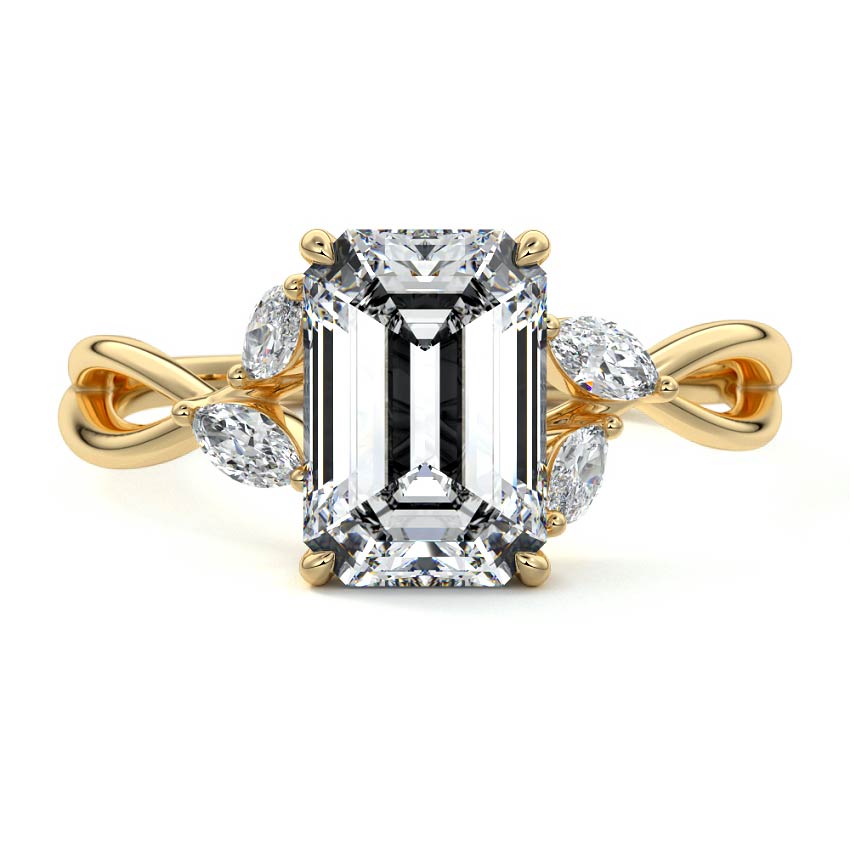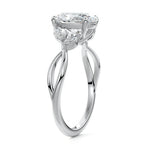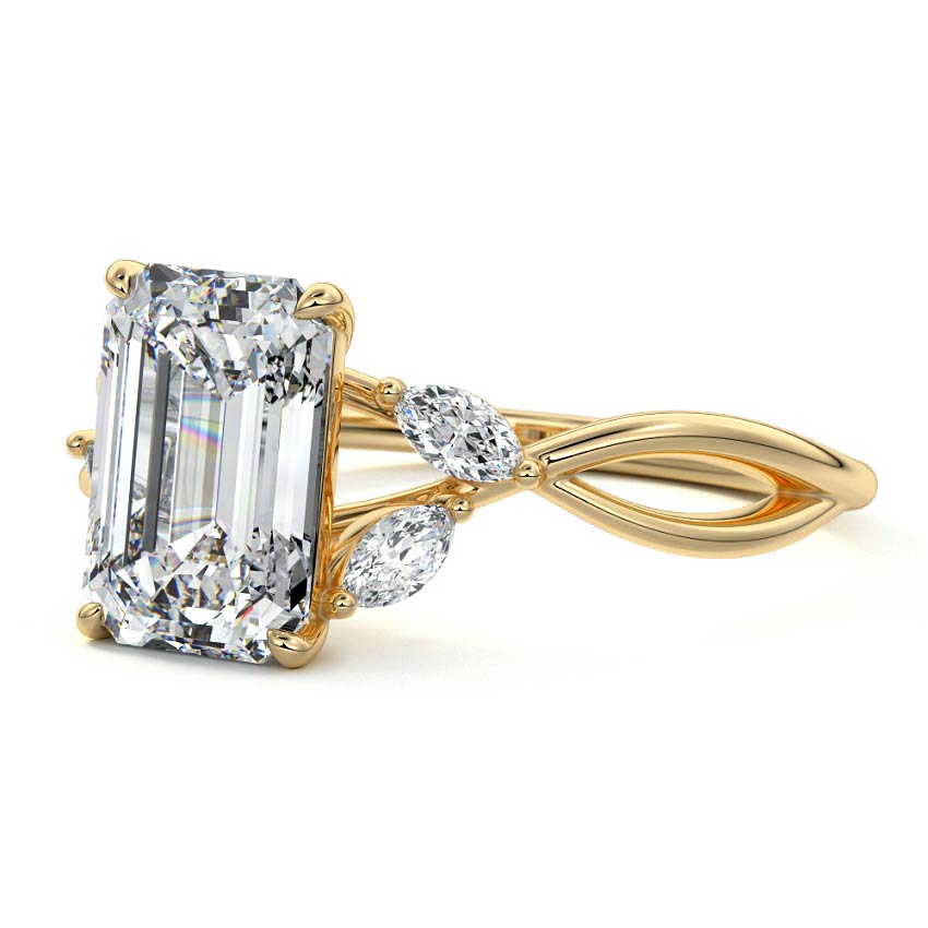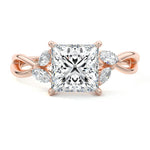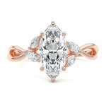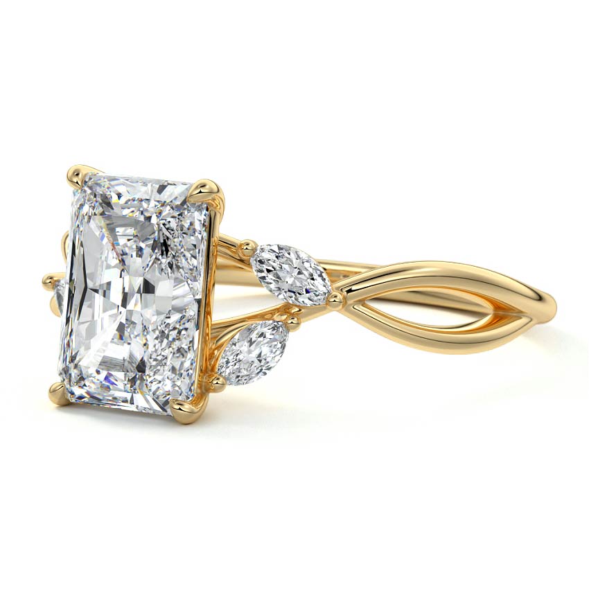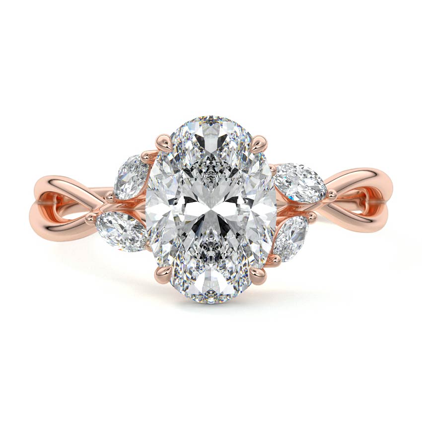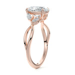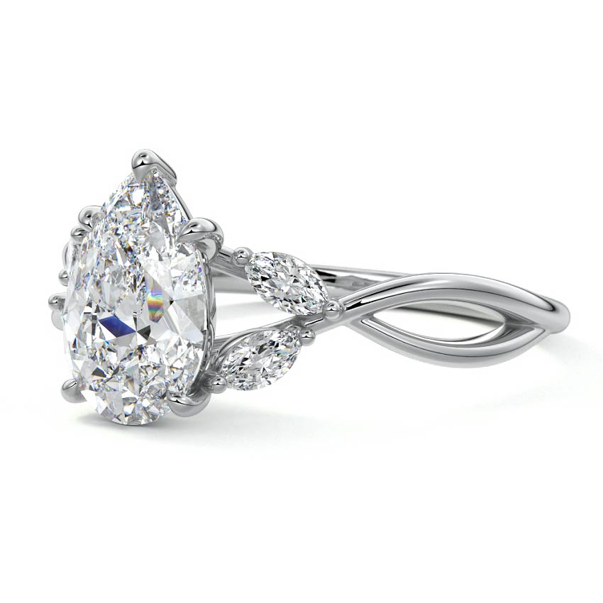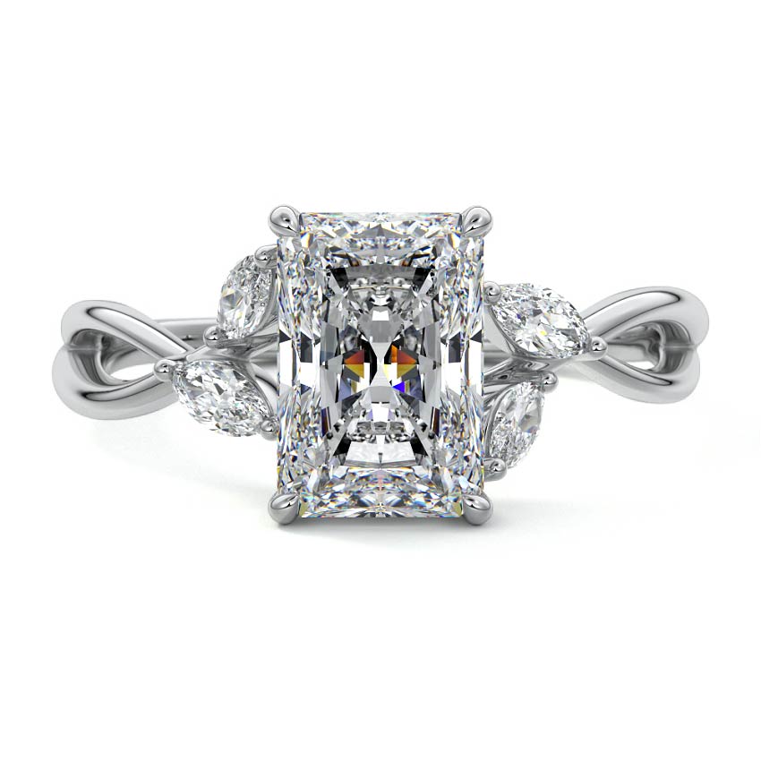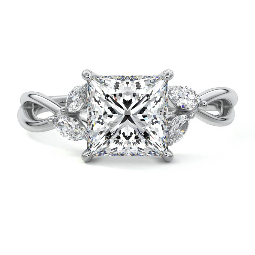This ring setting draws inspiration from the natural world, with a design reminiscent of vines and flowers. On each side of the central feature, two marquise-cut diamonds gracefully integrate into the design, resembling delicate vine leaves or petals, creating an enchanting and organic aesthetic.