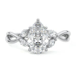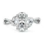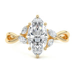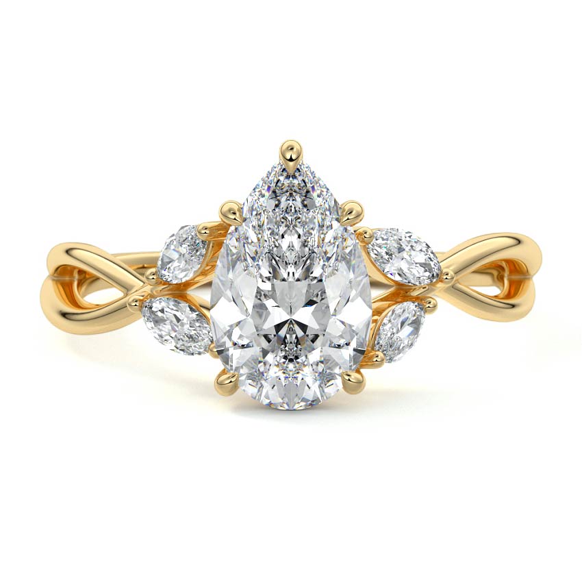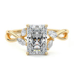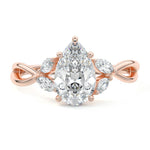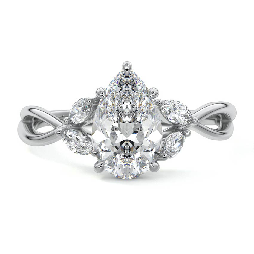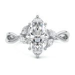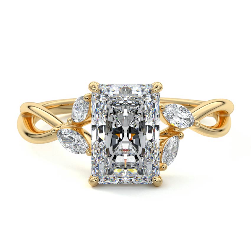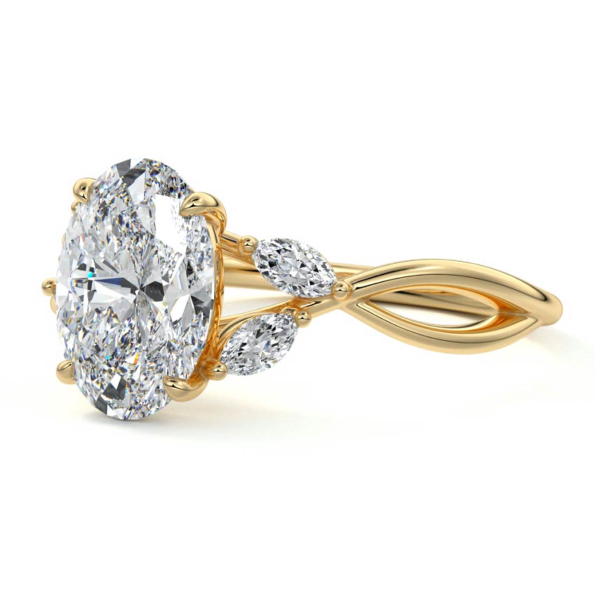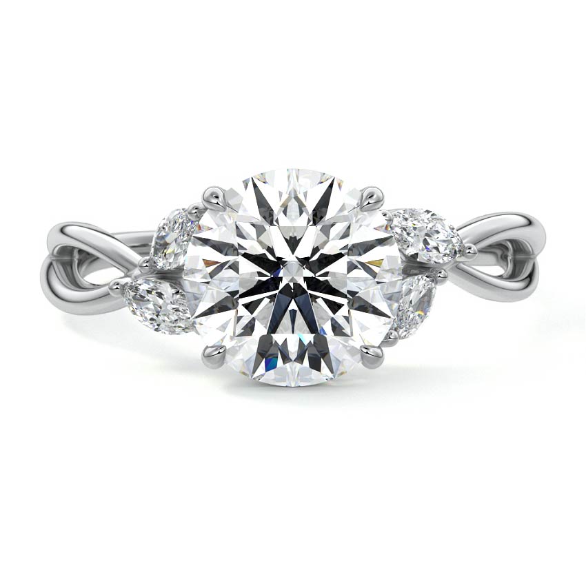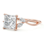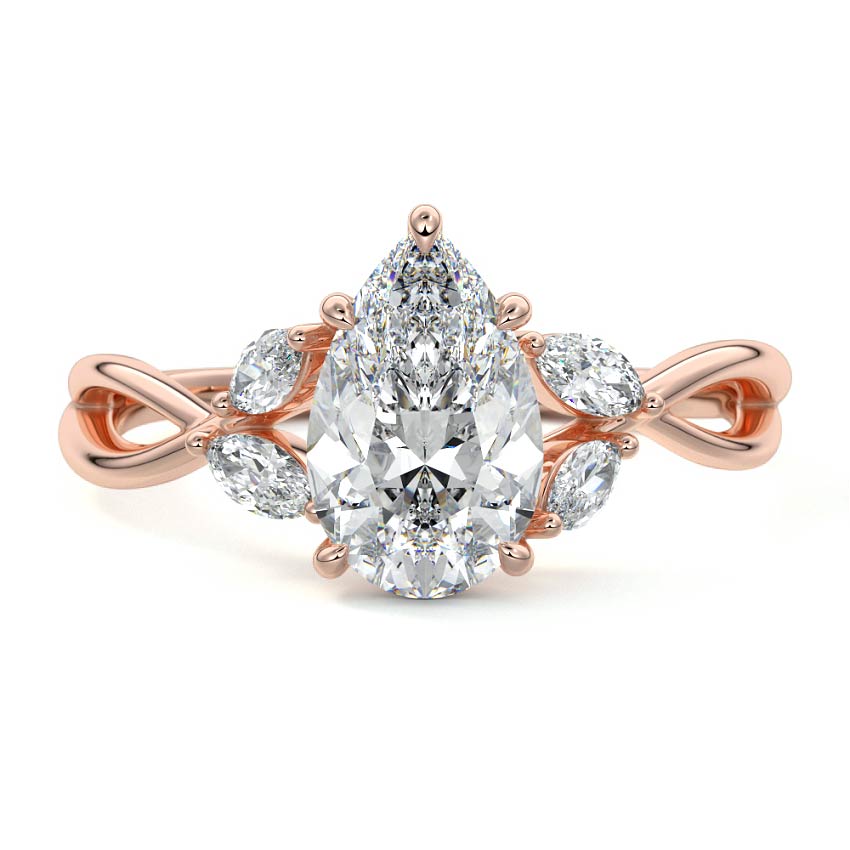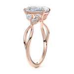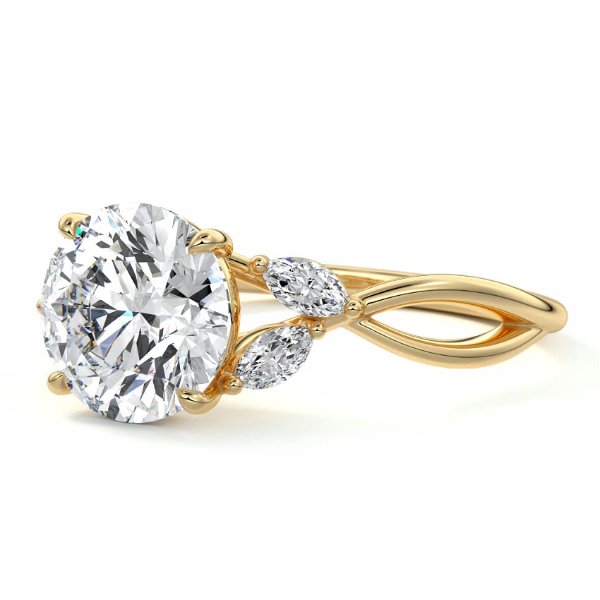 This ring setting draws inspiration from the natural world, with a design reminiscent of vines and flowers. On each side of the central feature, two marquise-cut diamonds gracefully integrate into the design, resembling delicate vine leaves or petals, creating an enchanting and organic aesthetic.