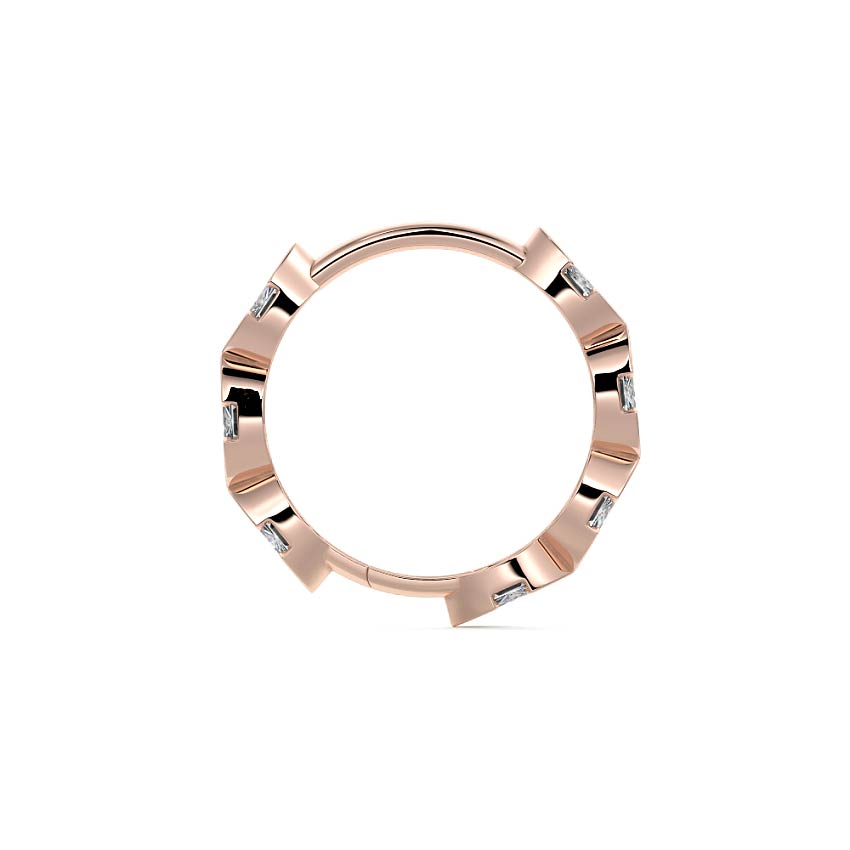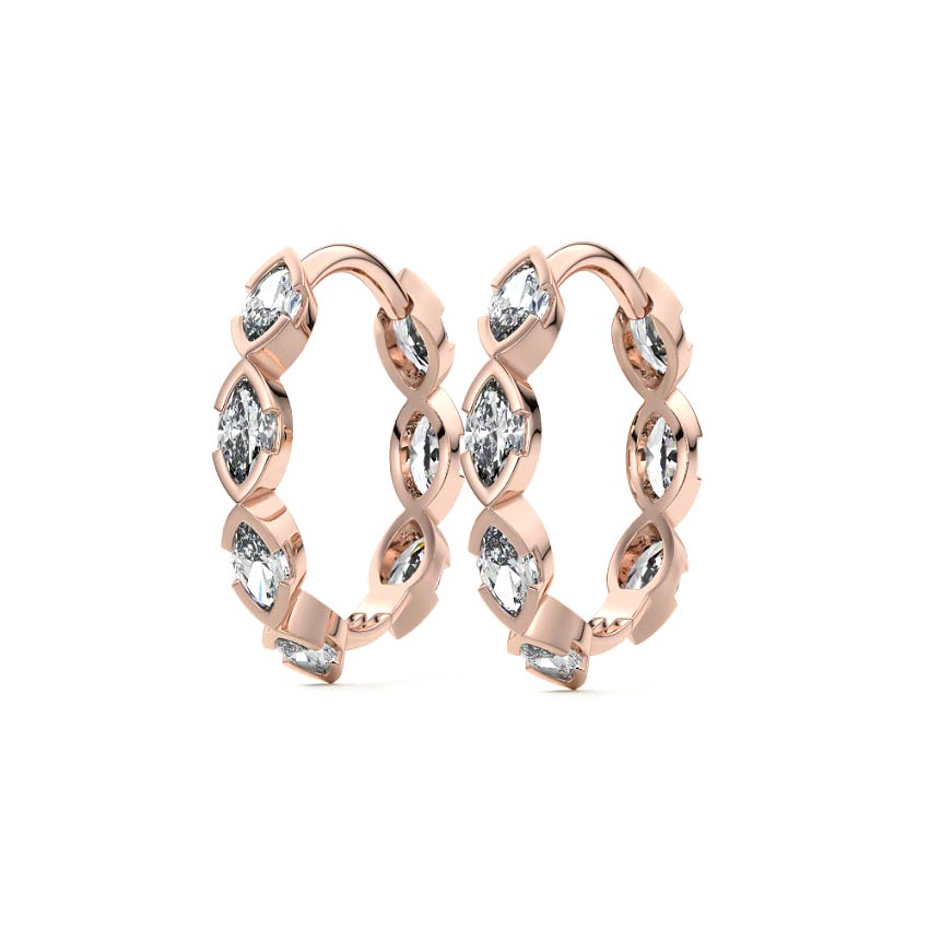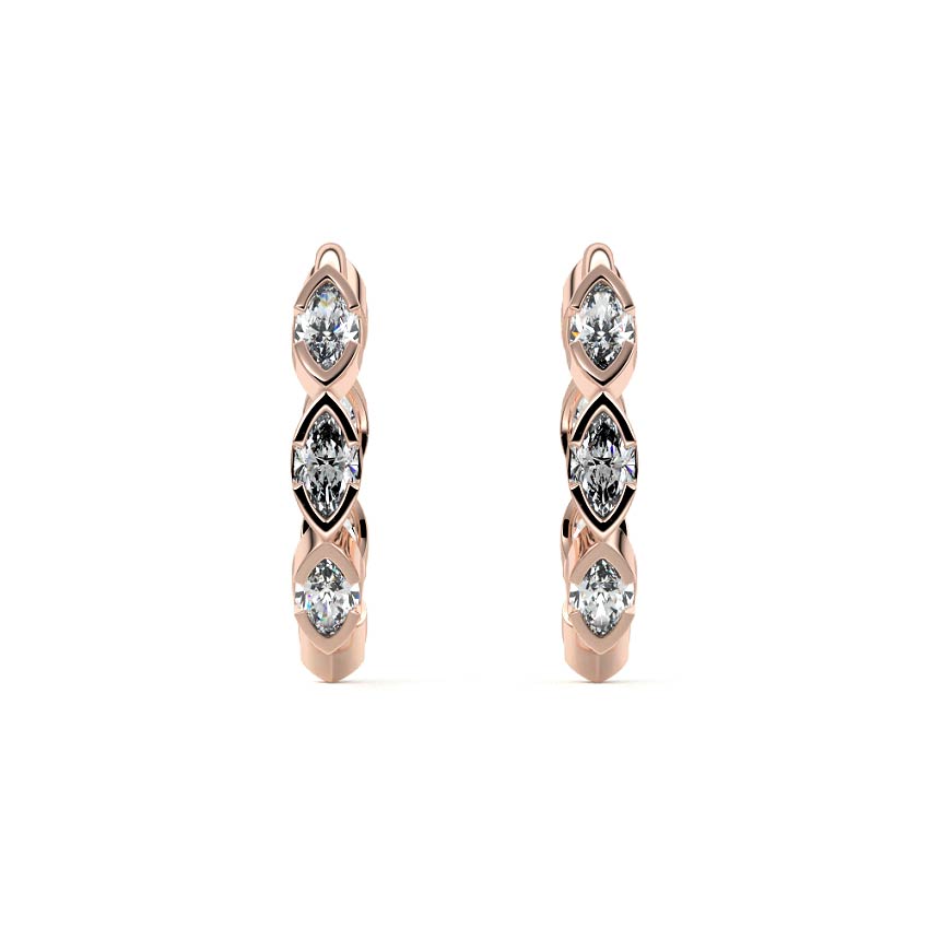 Marquise Bezel Hoops: Timeless elegance with a modern twist. Featuring sparkling marquise-cut diamonds set in sleek bezel settings, each stone adds a touch of refined luxury. The diamonds are carefully arranged around the hoop, creating a continuous and captivating shimmer that highlights the unique shape of the marquise stones. Perfect for elevating any collection, these earrings offer a versatile and chic accessory.