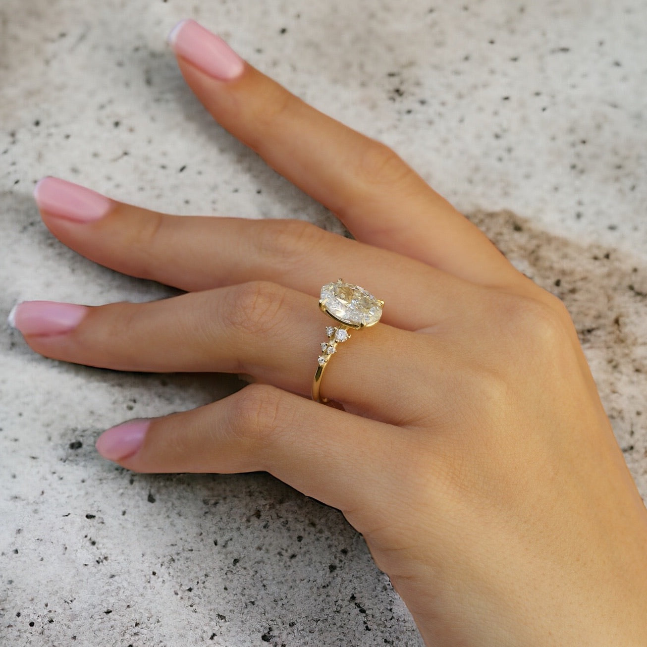 The Astra setting is a showstopper that features an elevated, sophisticated design that places the center stone in the spotlight. With its bold, raised silhouette, the ring exudes elegance, making it a focal point. The setting may include intricate details such as halos or side stones, enhancing the central gem’s brilliance and adding a touch of luxury. This ring is perfect for those who want a statement piece that radiates both grandeur and timeless style.