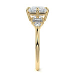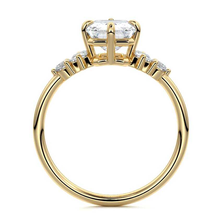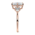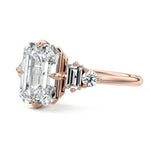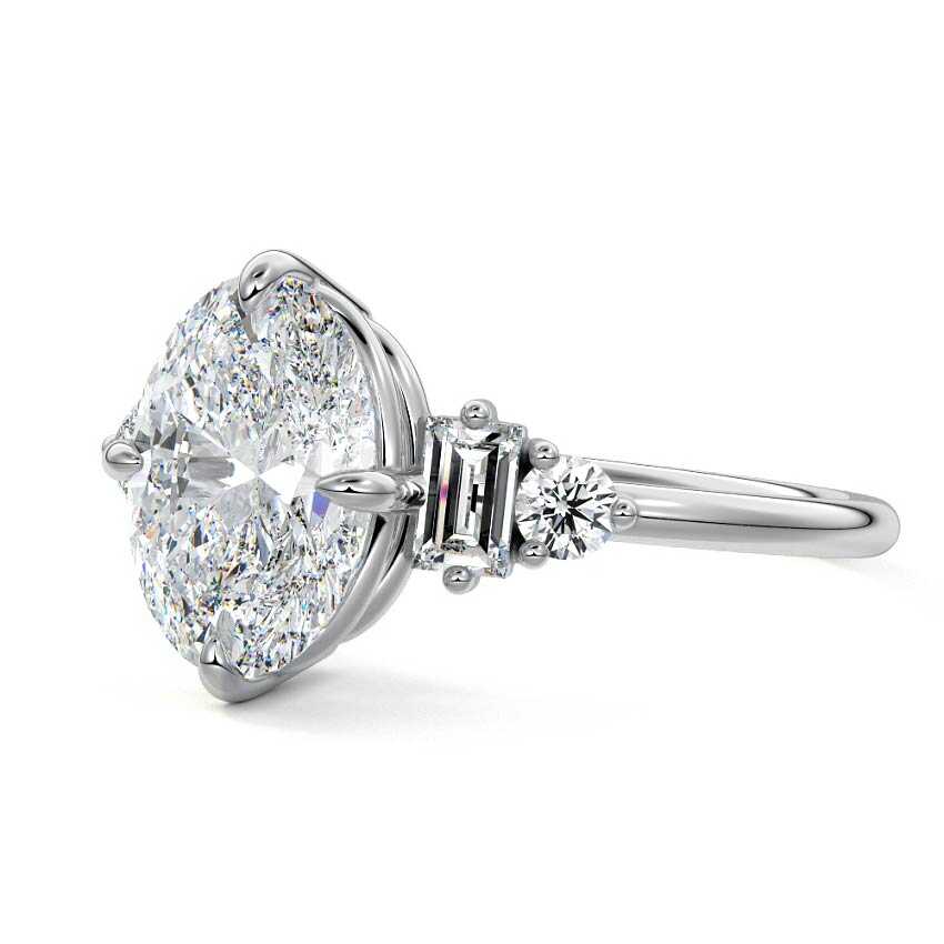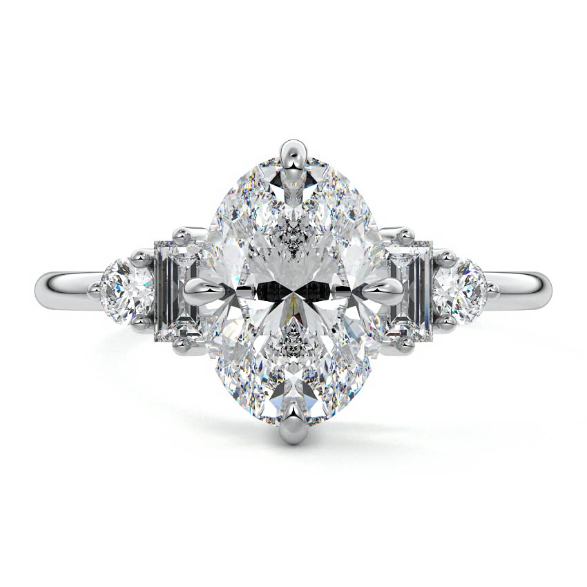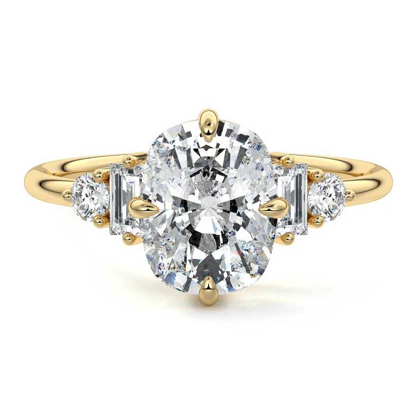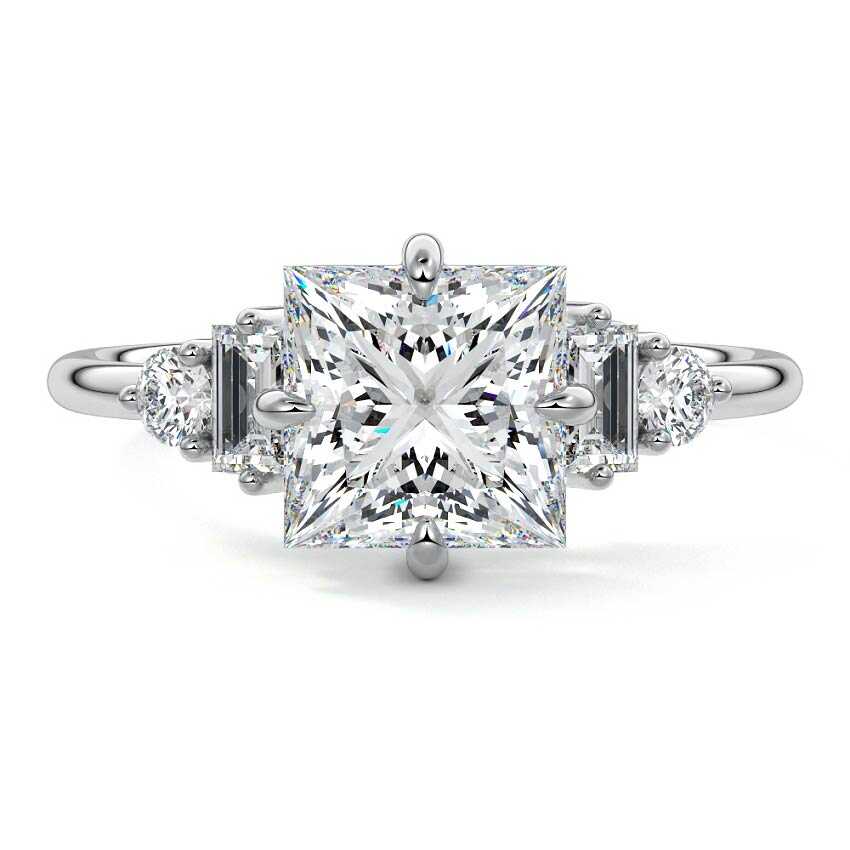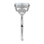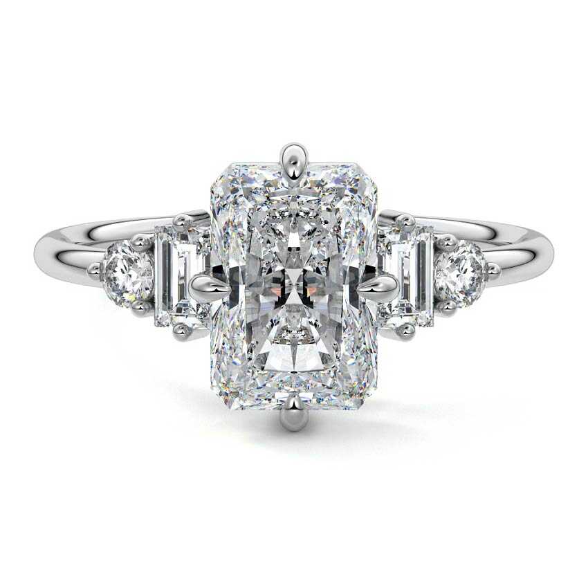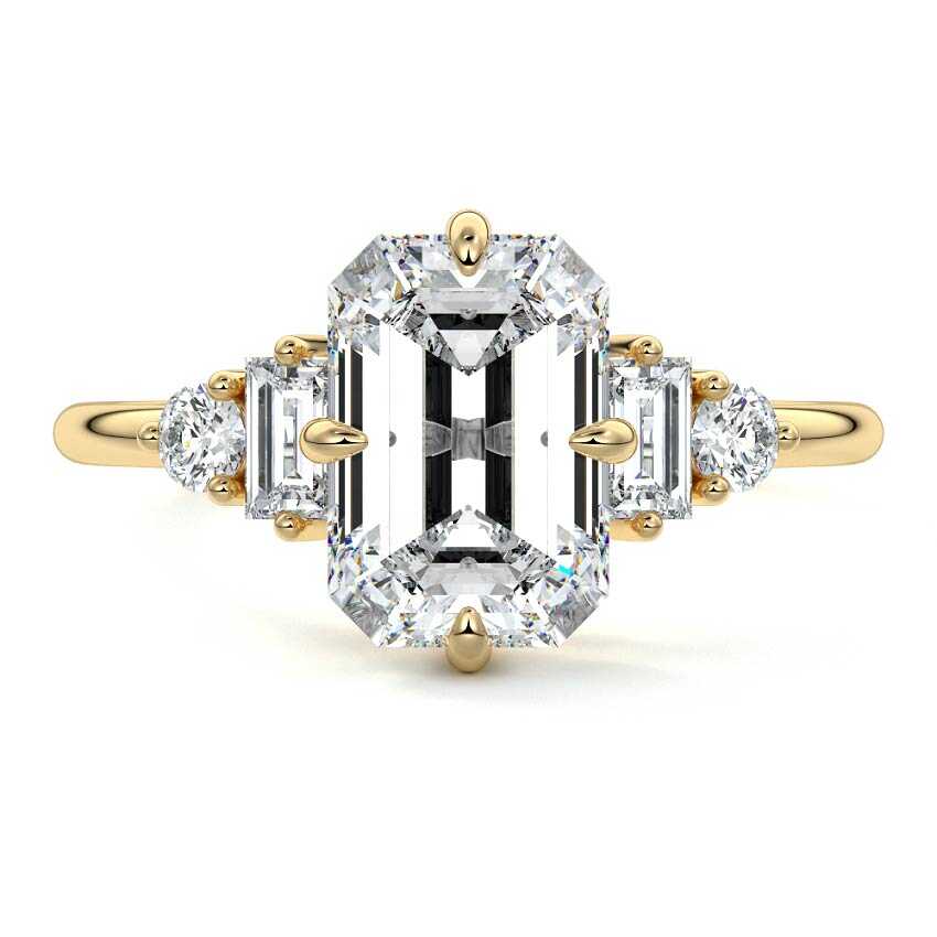 This unique engagement ring showcases a stunning design with baguette and round diamonds beautifully placed on each side of the center stone. The combination of sleek baguettes and sparkling rounds creates a captivating contrast, enhancing the overall brilliance and elegance of the ring. This exquisite arrangement not only adds visual interest but also symbolizes the perfect balance of strength and romance, making it a truly one-of-a-kind choice for your special moment.