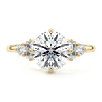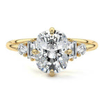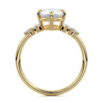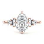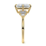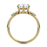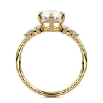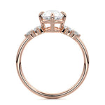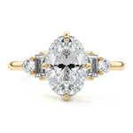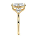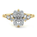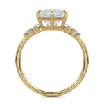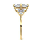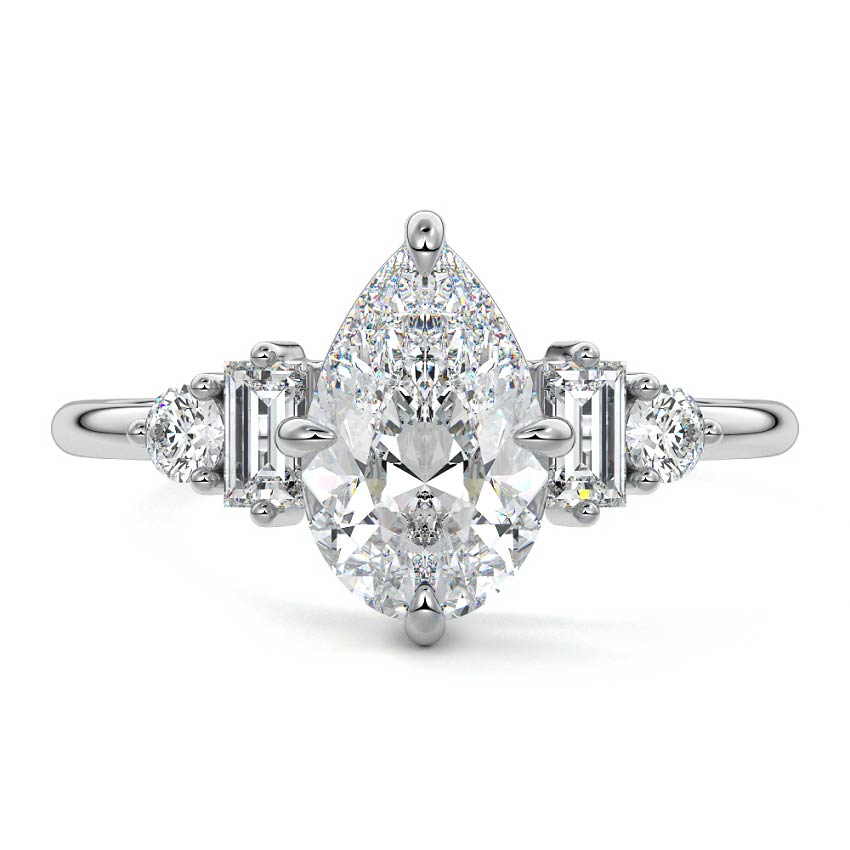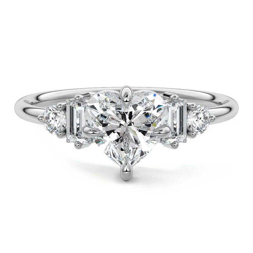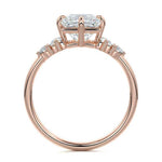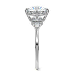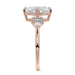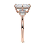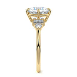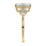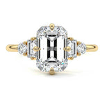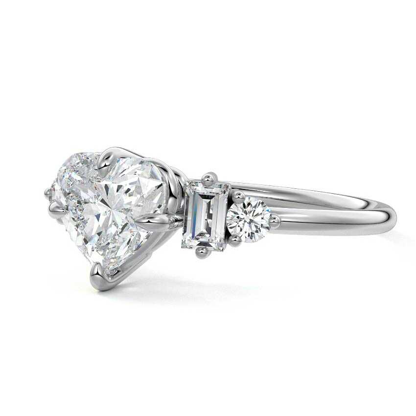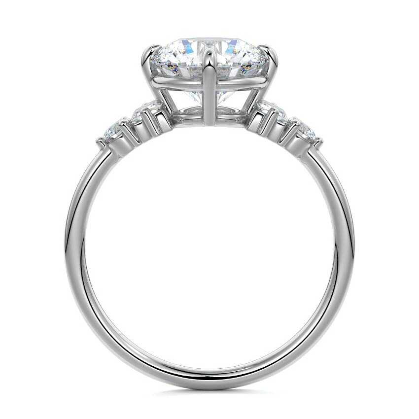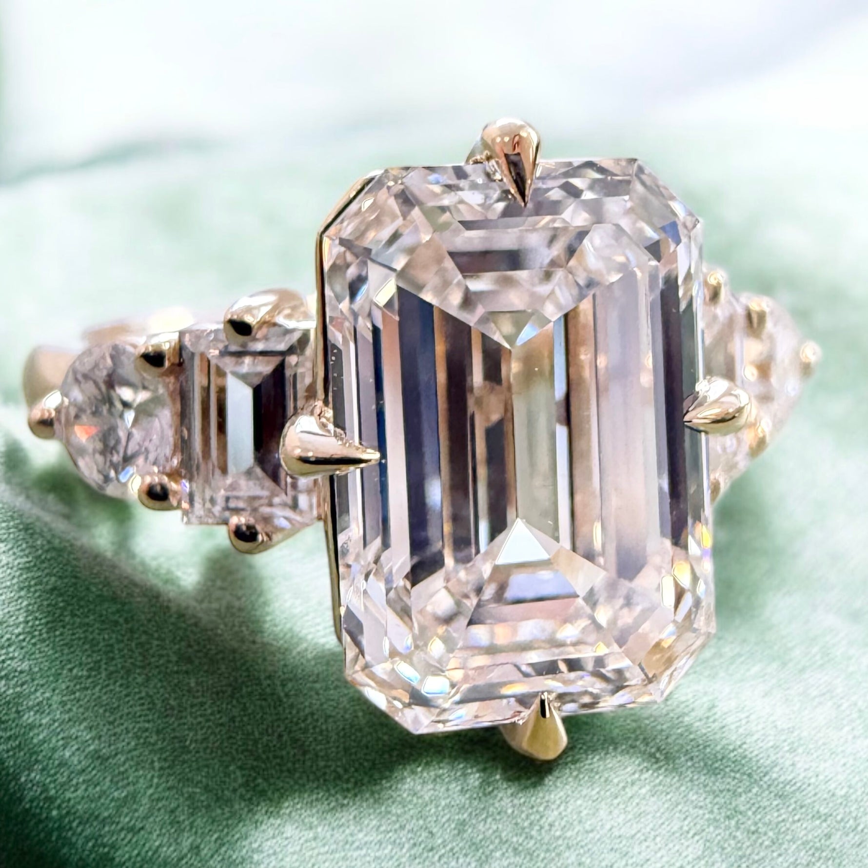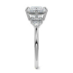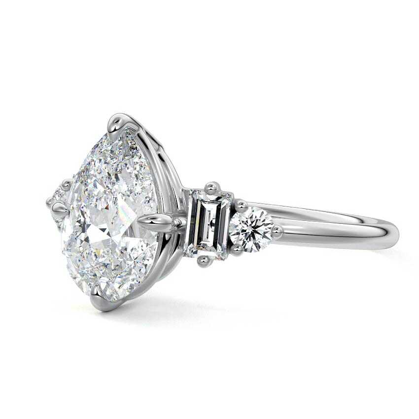 This unique engagement ring showcases a stunning design with baguette and round diamonds beautifully placed on each side of the center stone. The combination of sleek baguettes and sparkling rounds creates a captivating contrast, enhancing the overall brilliance and elegance of the ring. This exquisite arrangement not only adds visual interest but also symbolizes the perfect balance of strength and romance, making it a truly one-of-a-kind choice for your special moment.