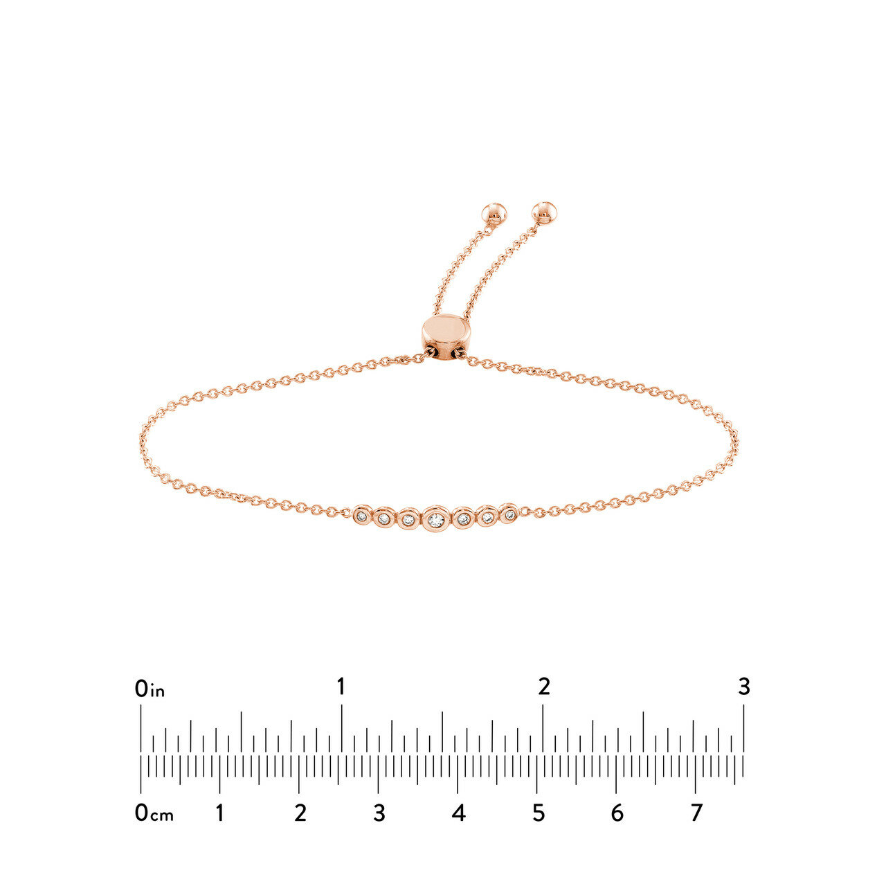 Add a timeless touch to your outfit with a bolo bracelet. This dainty graduated center 1/10ct diamond bezel bolo will become a favorite. Adjustable from 9.5".