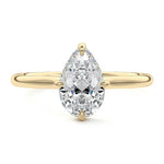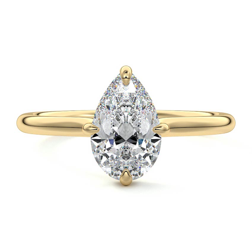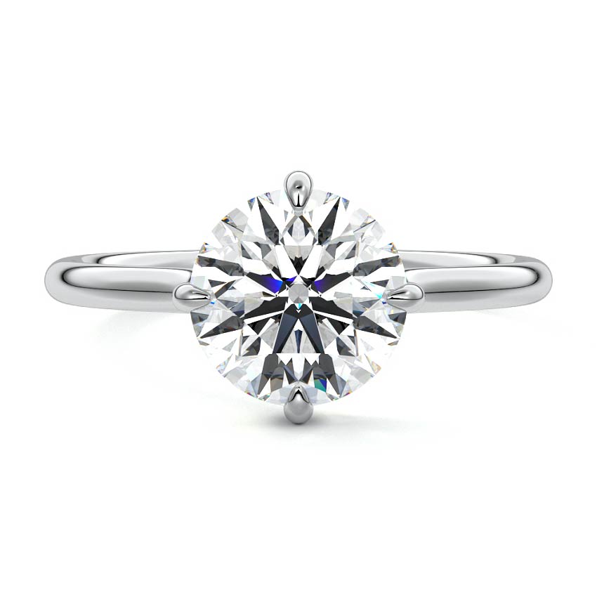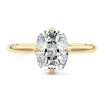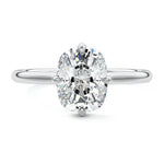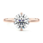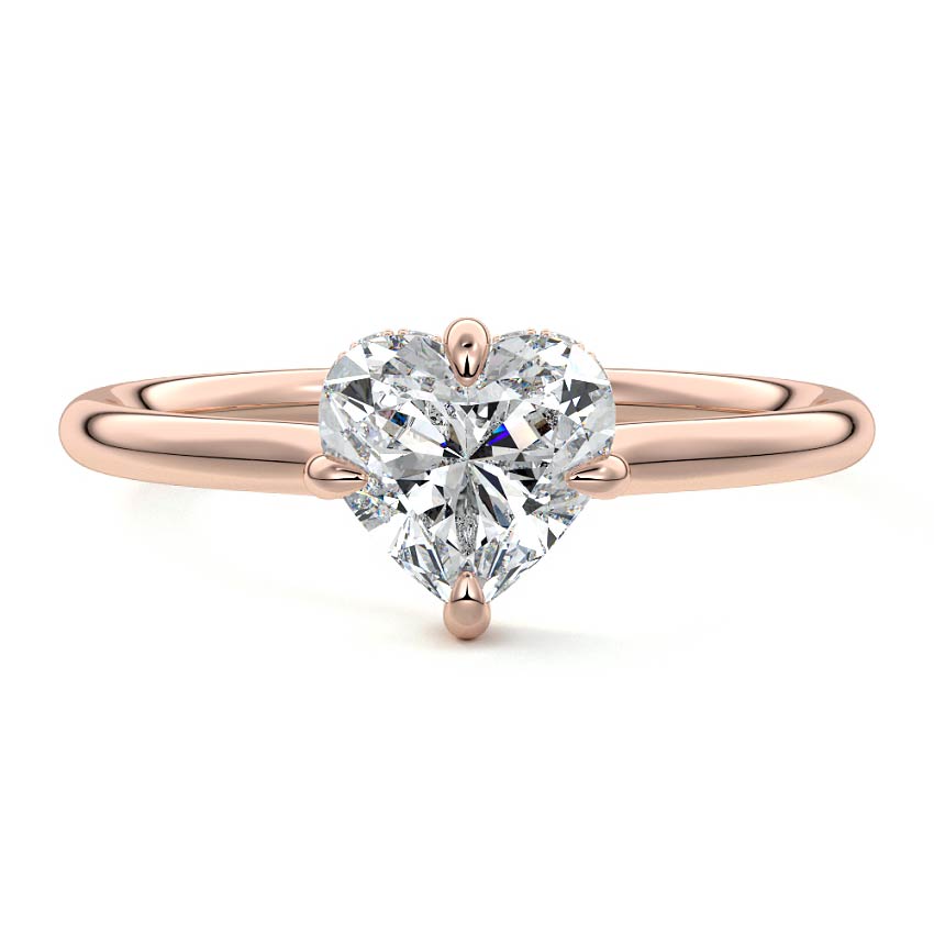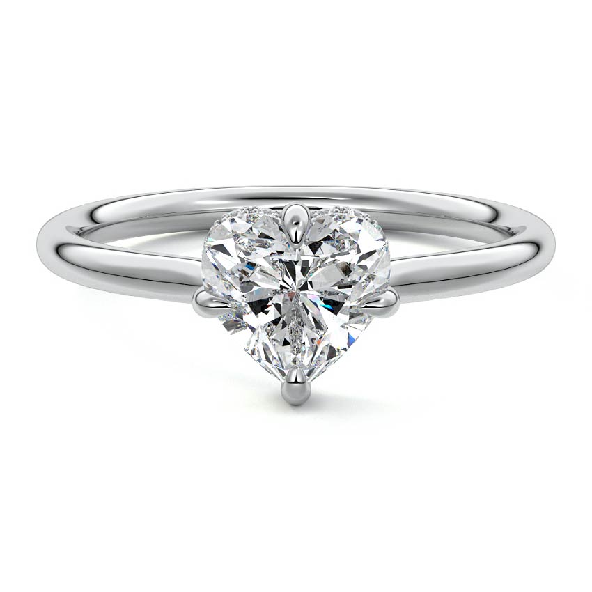This elegant solitaire engagement ring features a hidden halo that adds subtle sparkle, while the east-west prongs securely hold the center stone. The open basket design allows the ring to sit close to the finger, making it ideal for an active lifestyle. This combination of modern features and practicality ensures a comfortable fit without compromising on style, making it a perfect choice for those seeking a beautiful and functional engagement ring.