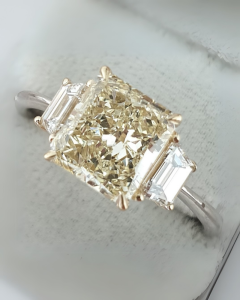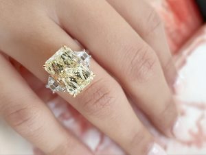 - For lovers of subtlety, a small Fancy Yellow Radiant on a solitaire white gold band lends delicate elegance.